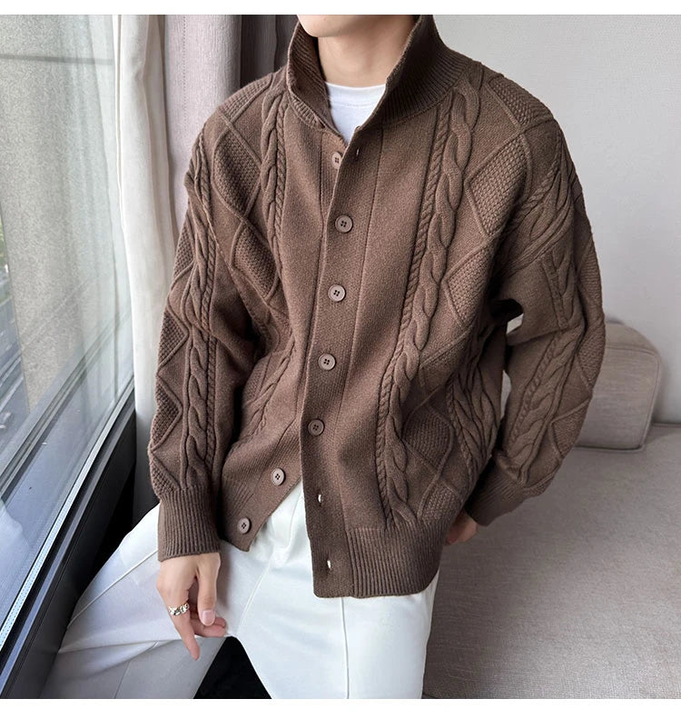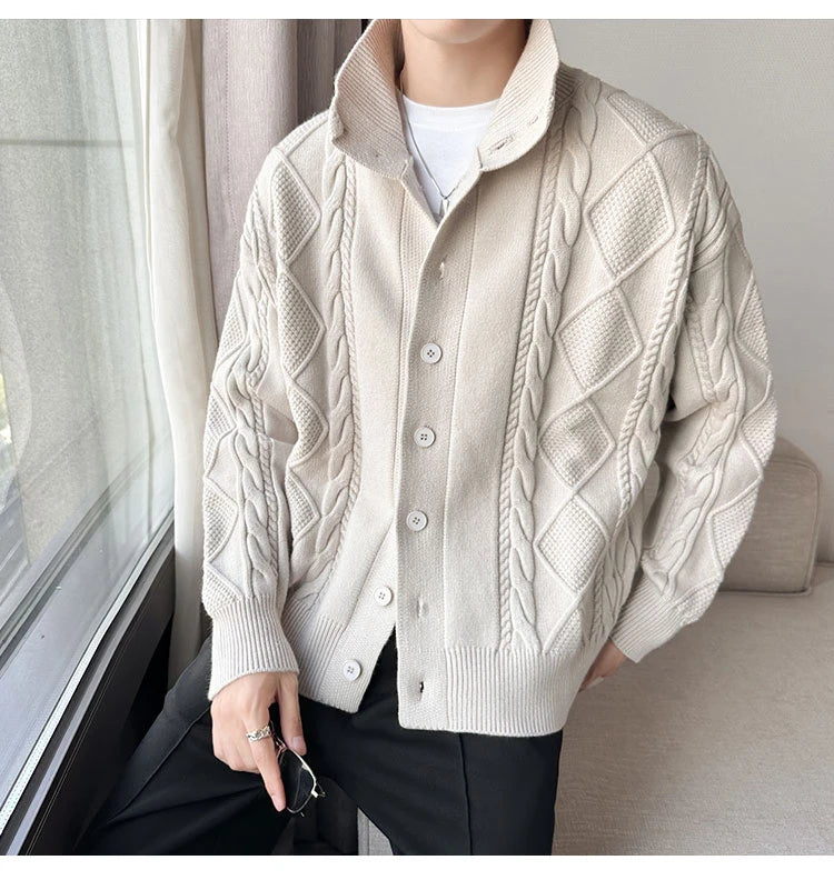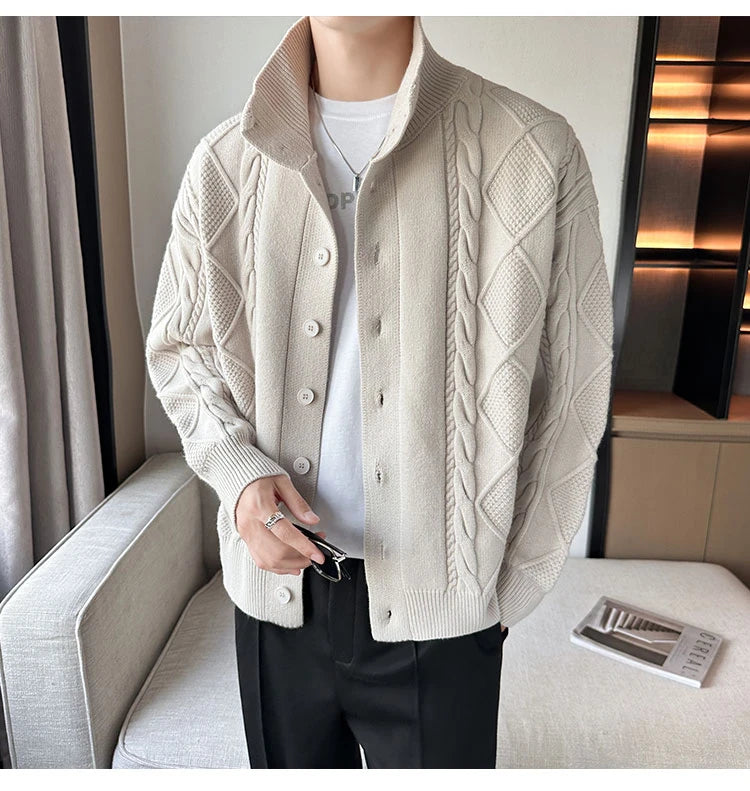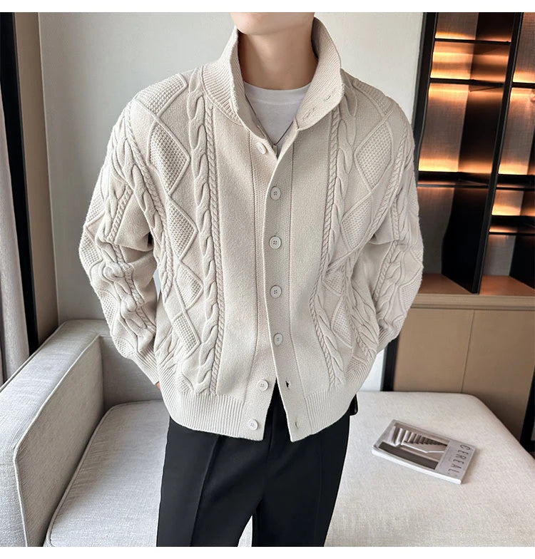 New Korean Style Jacquard Men Cardigan Jackets Fashion Luxury Knitted Button-down Long Sleeve Sweater Coat Winter Warm Knitwear