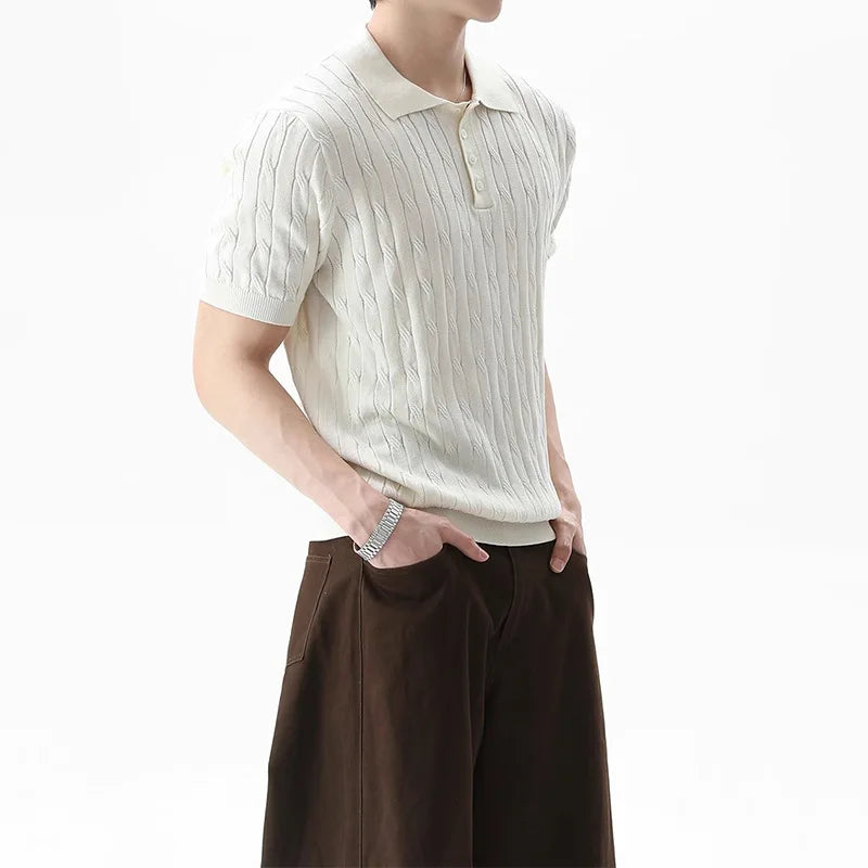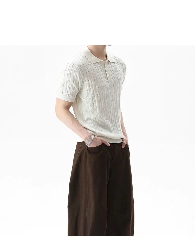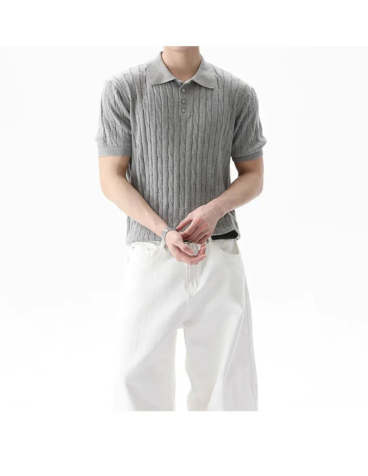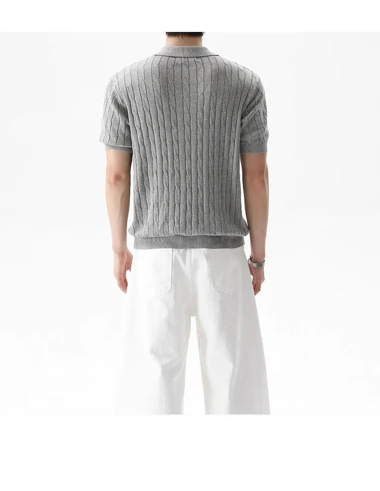 New Trendy Jacquarded Men Polo Shirt Light Luxury Casual Business Solid Color Knitted Short Sleeve T-shirt Fashion Stretchy Tops