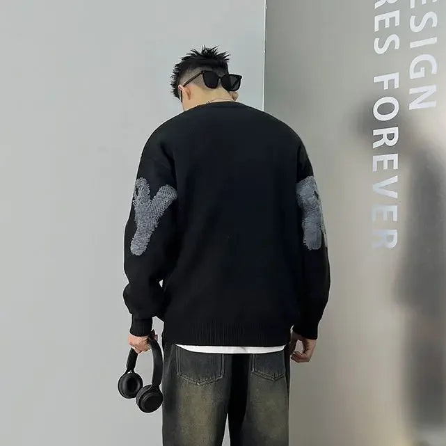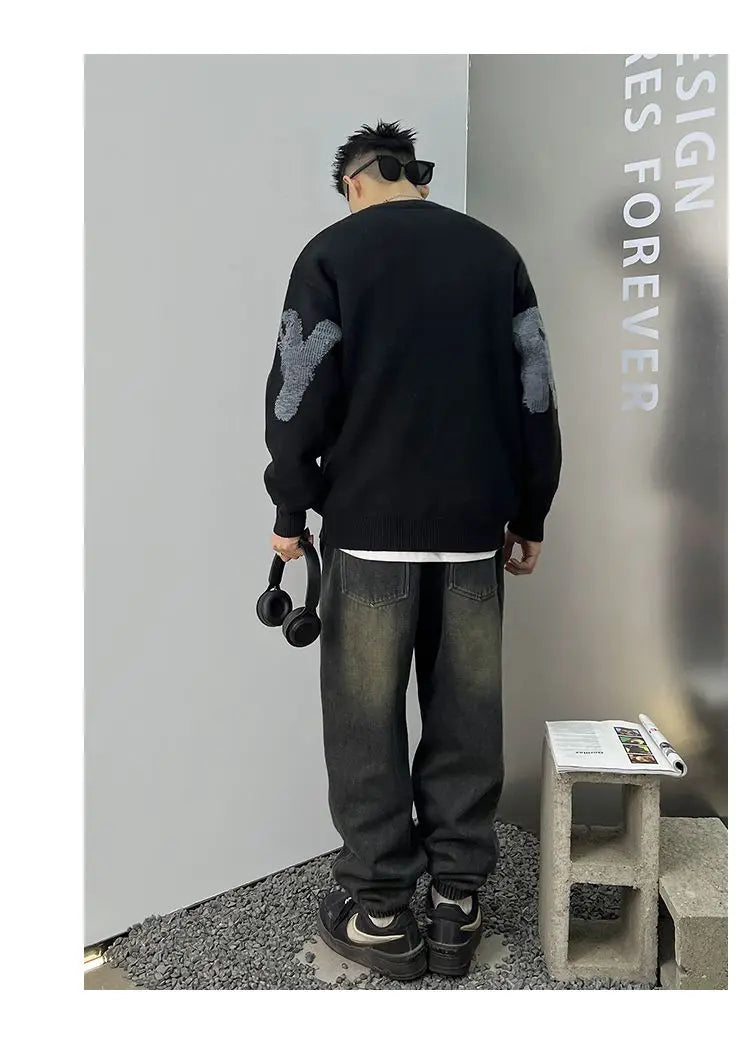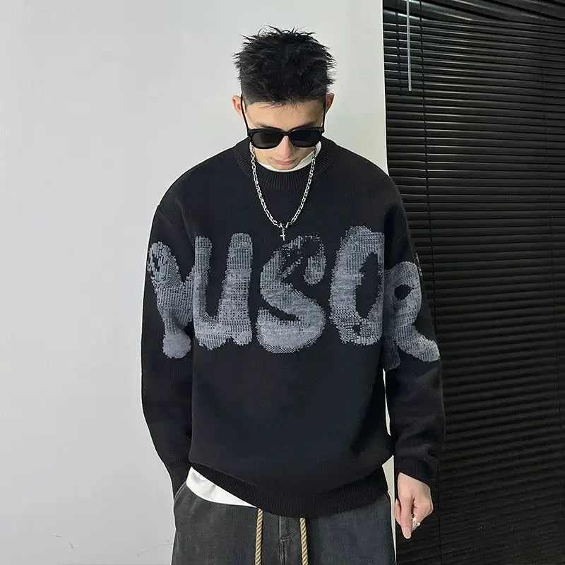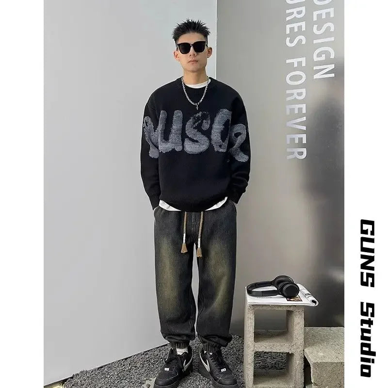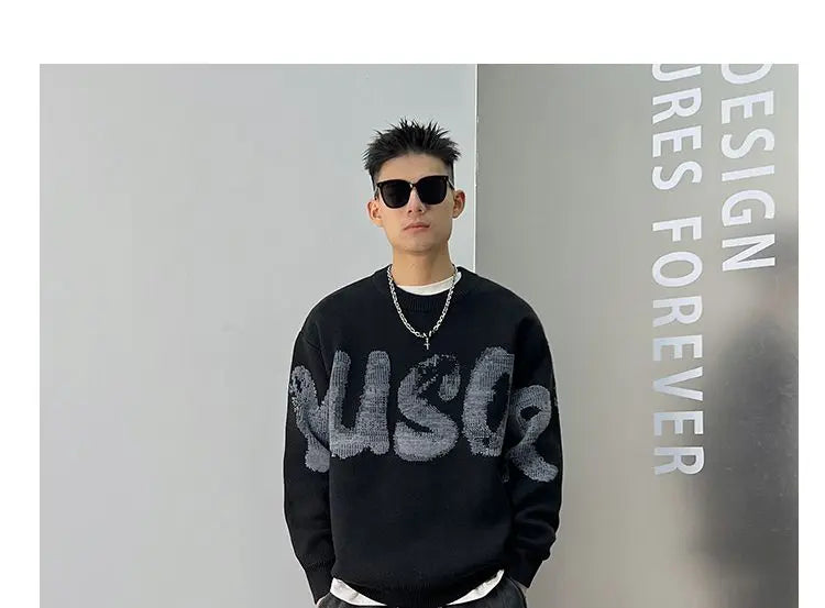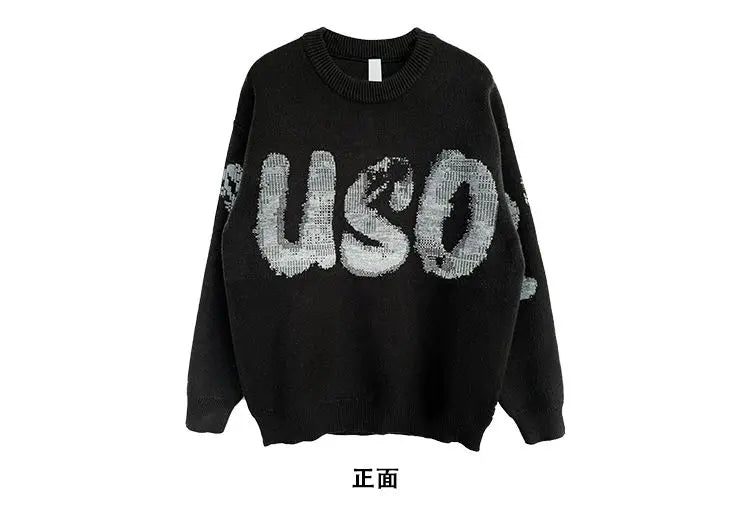 Round neck sweater men and women new autumn and winter styles letter printed American style trendy loose casual knit sweater top