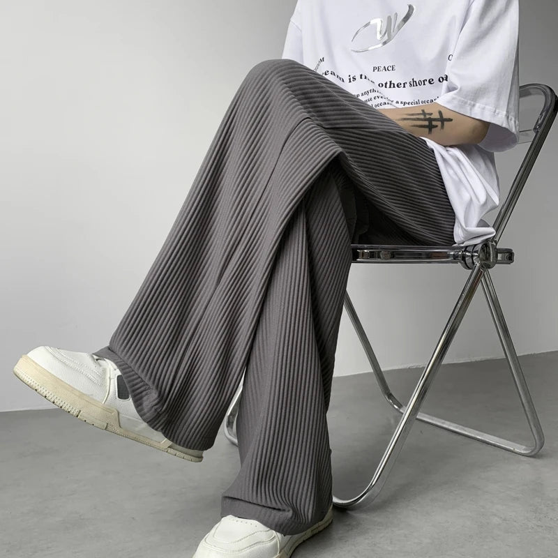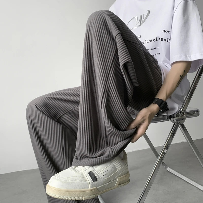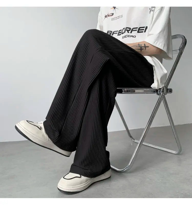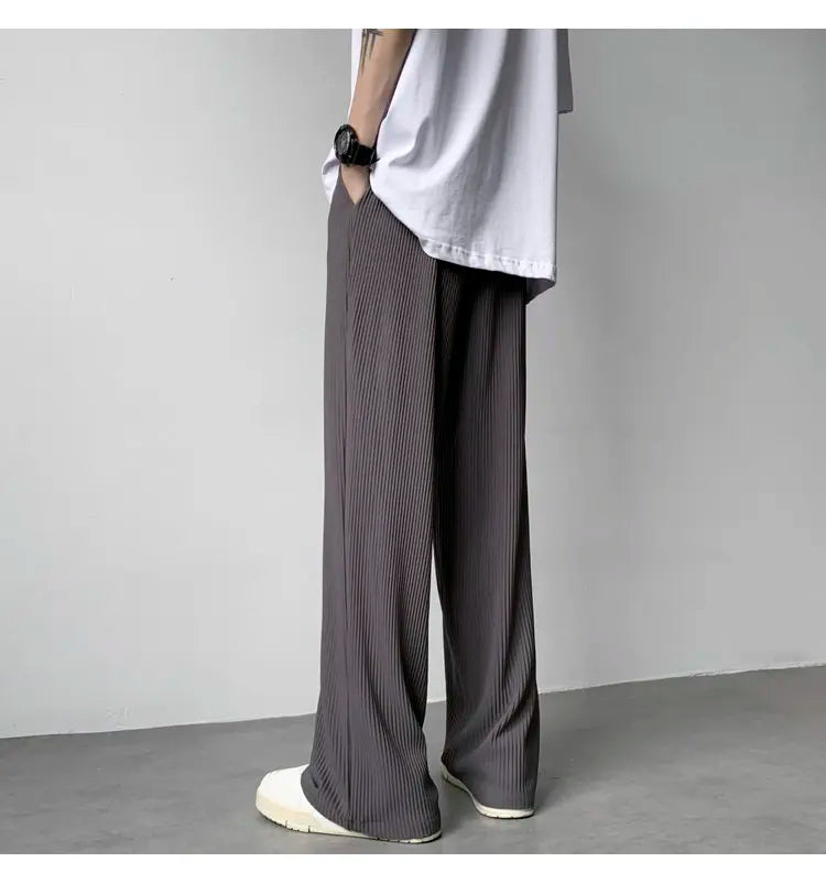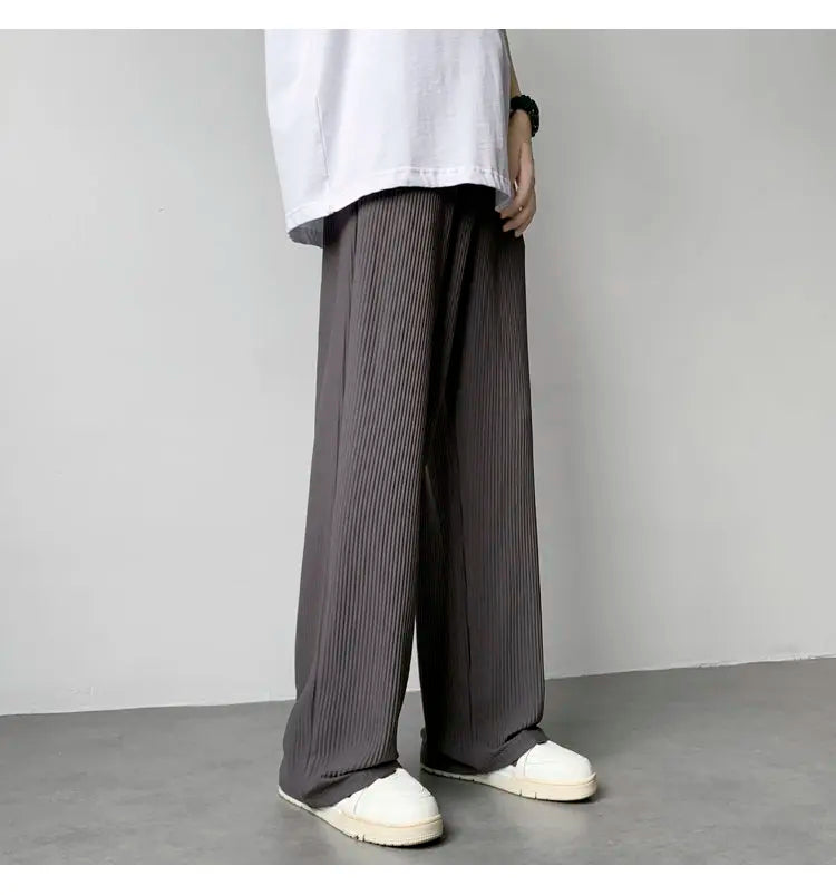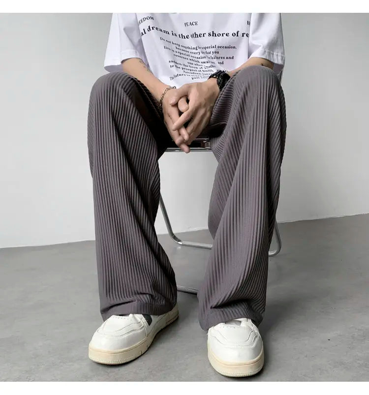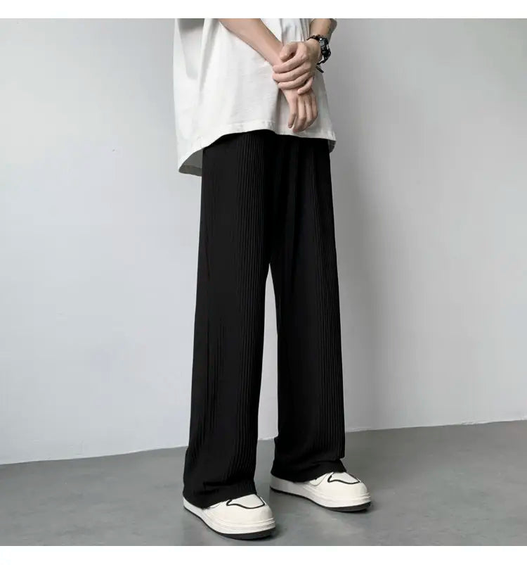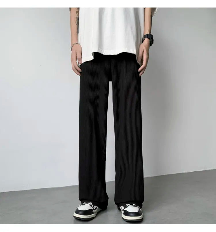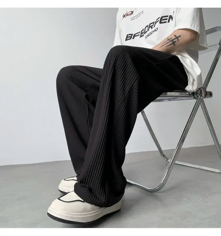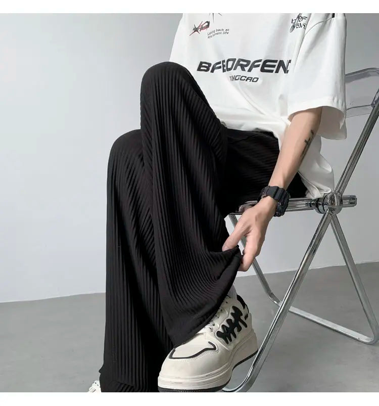 Summer Casual Pants Men Fashion Pleated Pants Men Japanese Streetwear Loose Wide Leg Pants Mens Baggy Ice Silk Trousers M-3XL