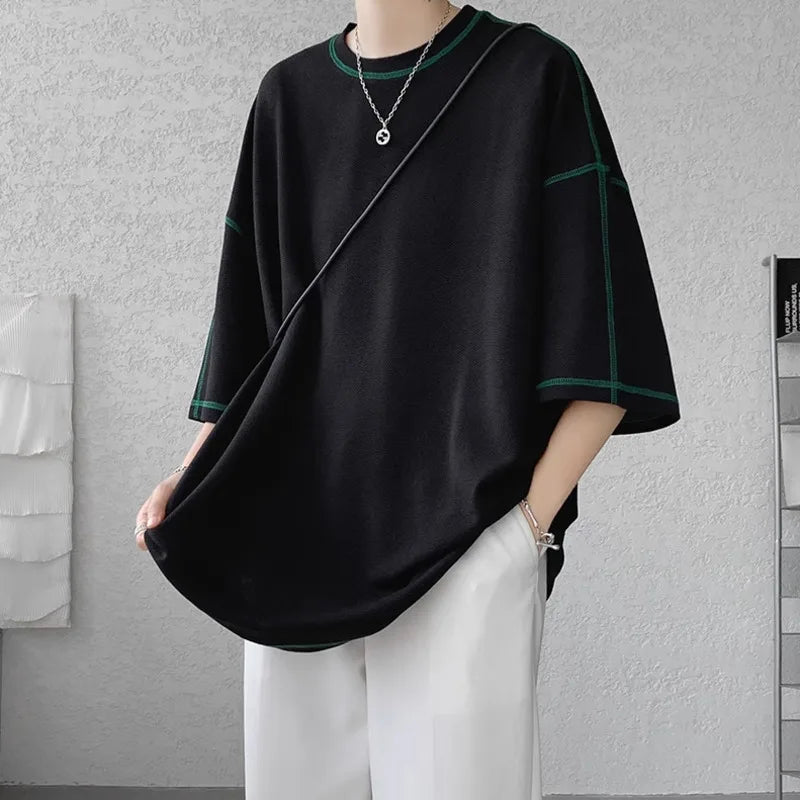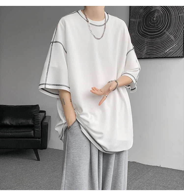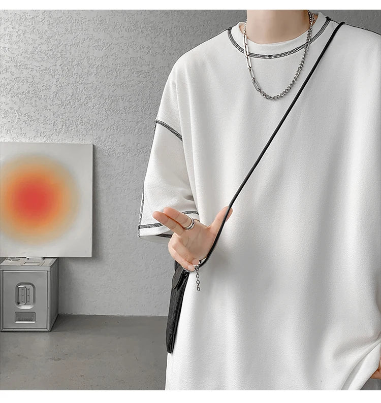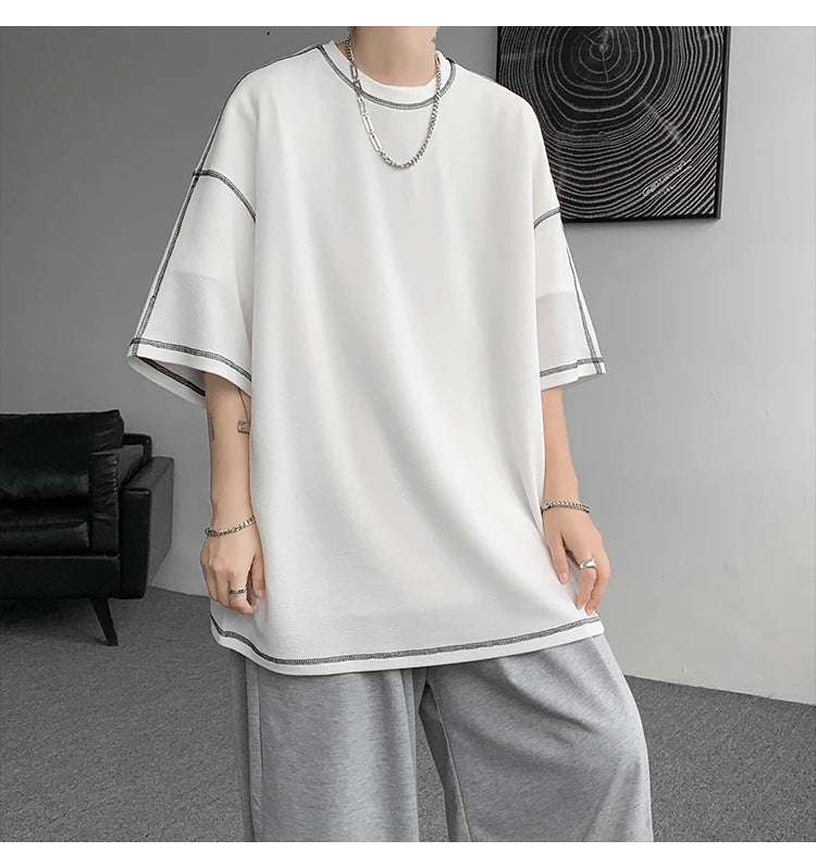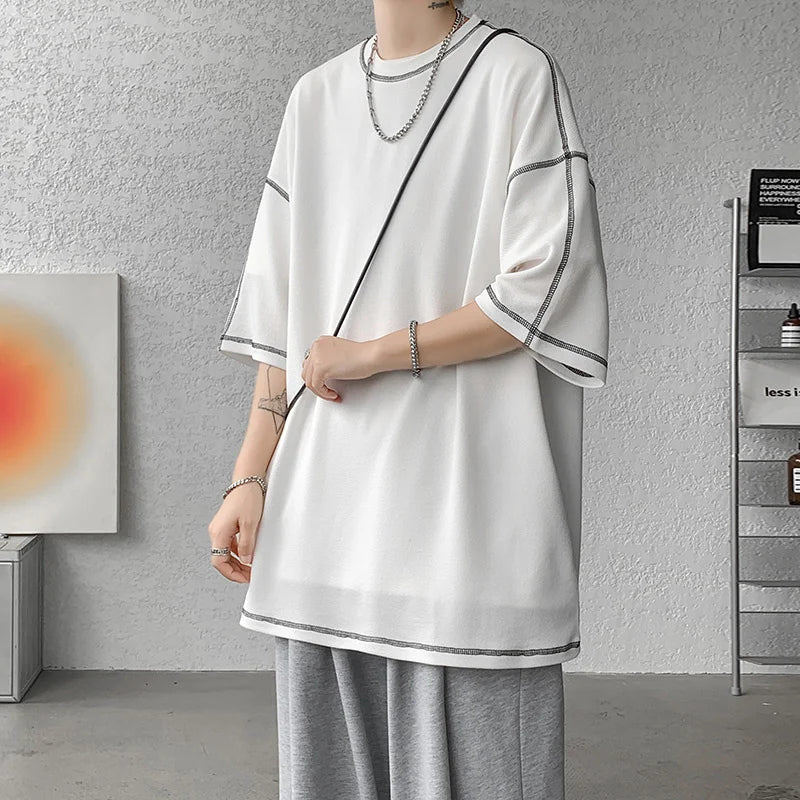 Summer Short Sleeve T-shirt Men Fashion Oversized Black T Shirt Men Streetwear Hip Hop Loose O-Neck White Tshirt Mens Top S-2XL