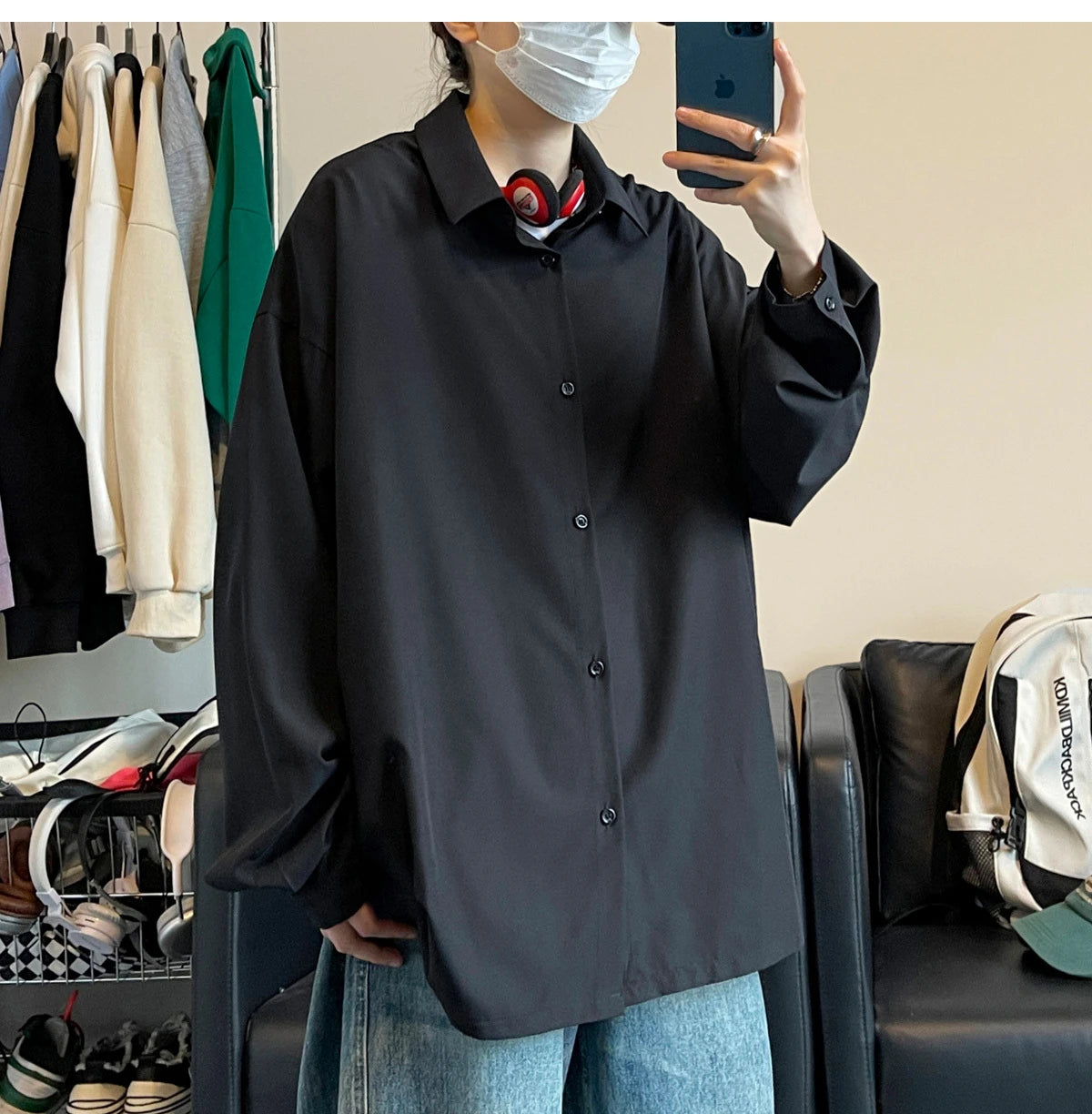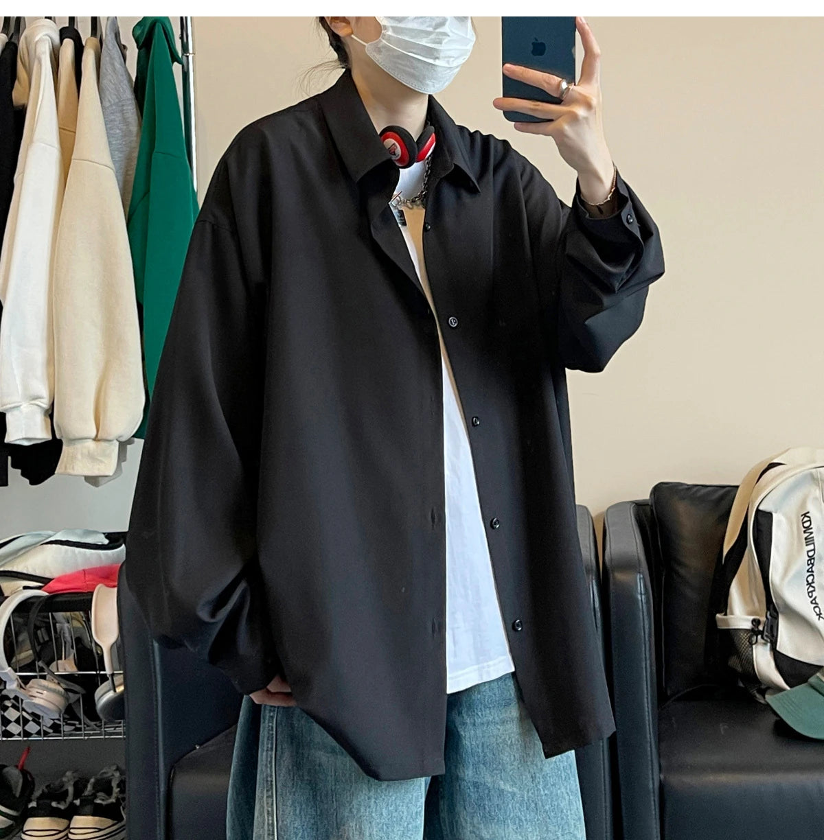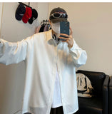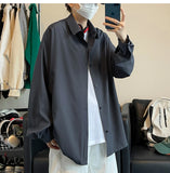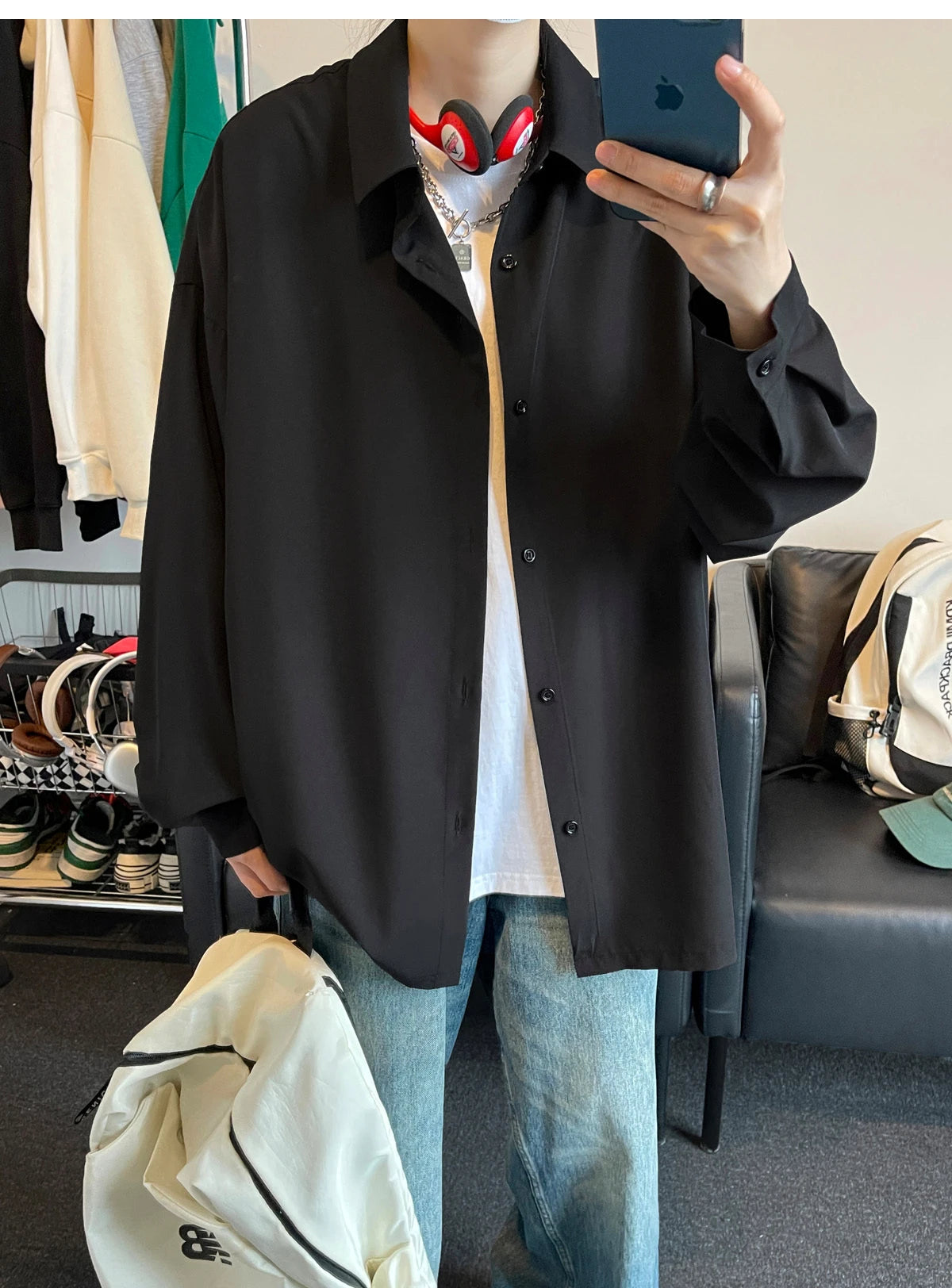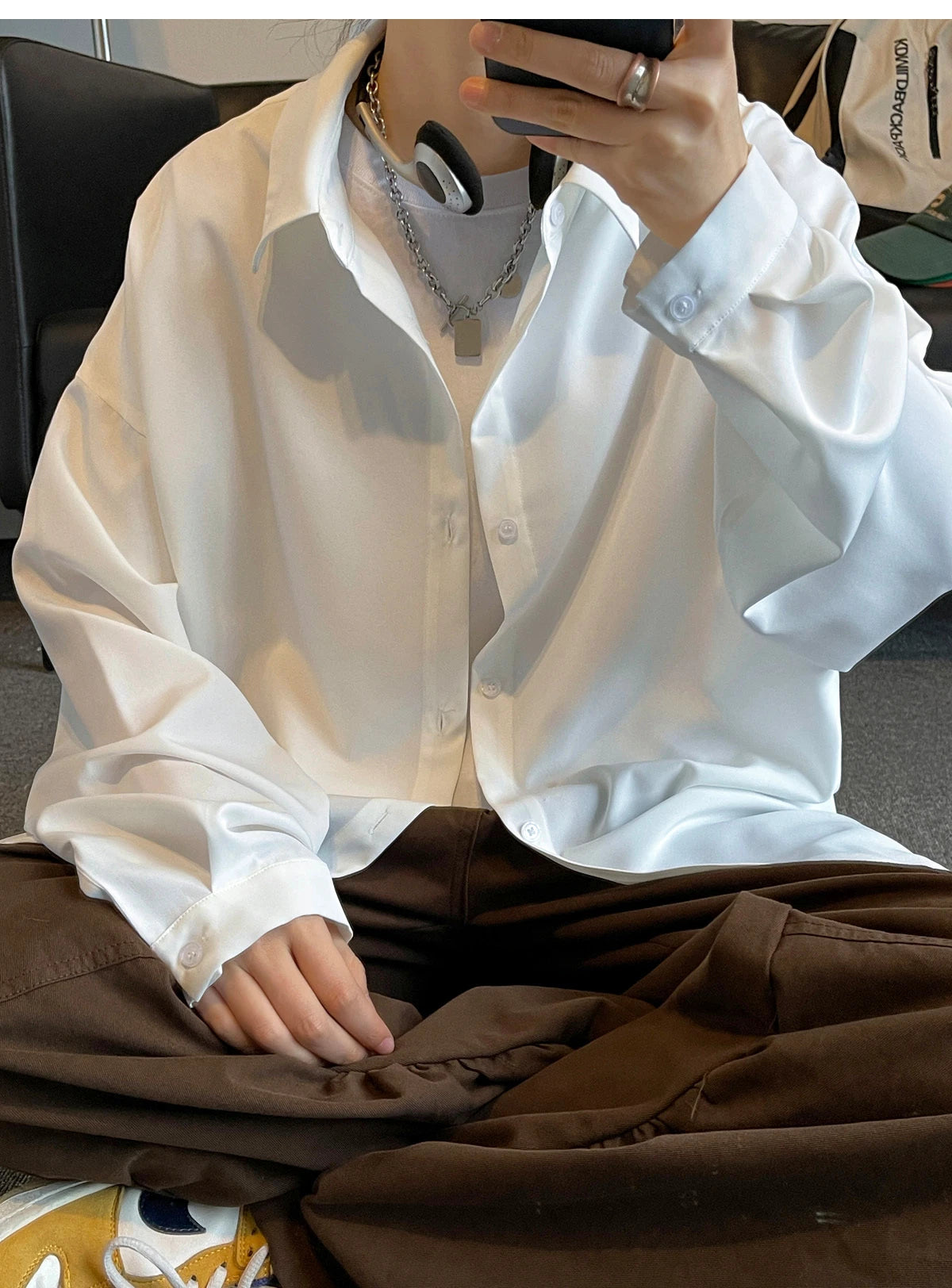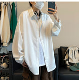White Long Sleeved Shirt Men Fashion Society Mens Black Dress Shirt Korean Loose Ice Silk Shirt Mens Oversized Casual Shirts