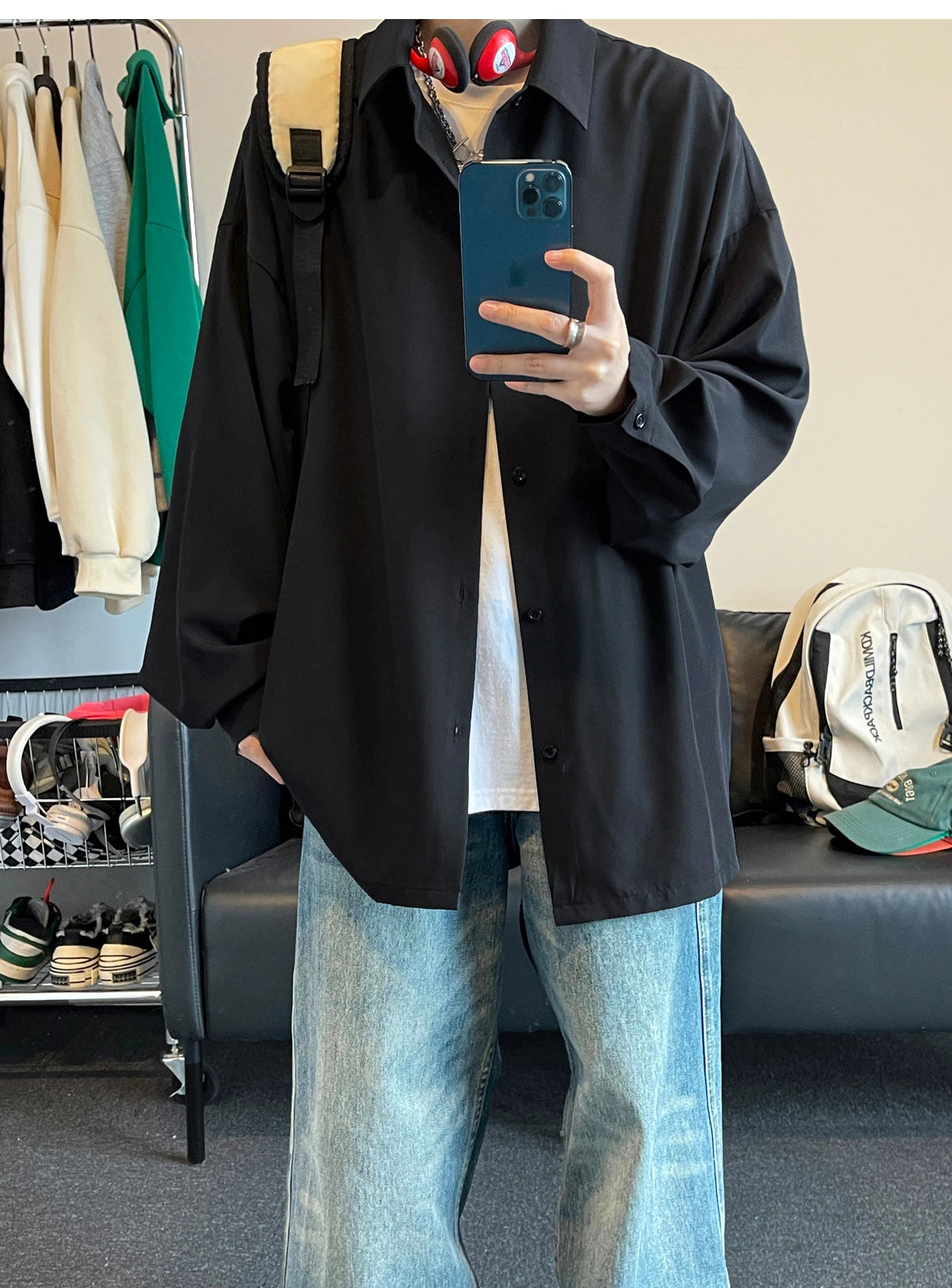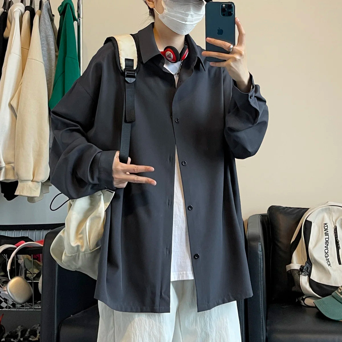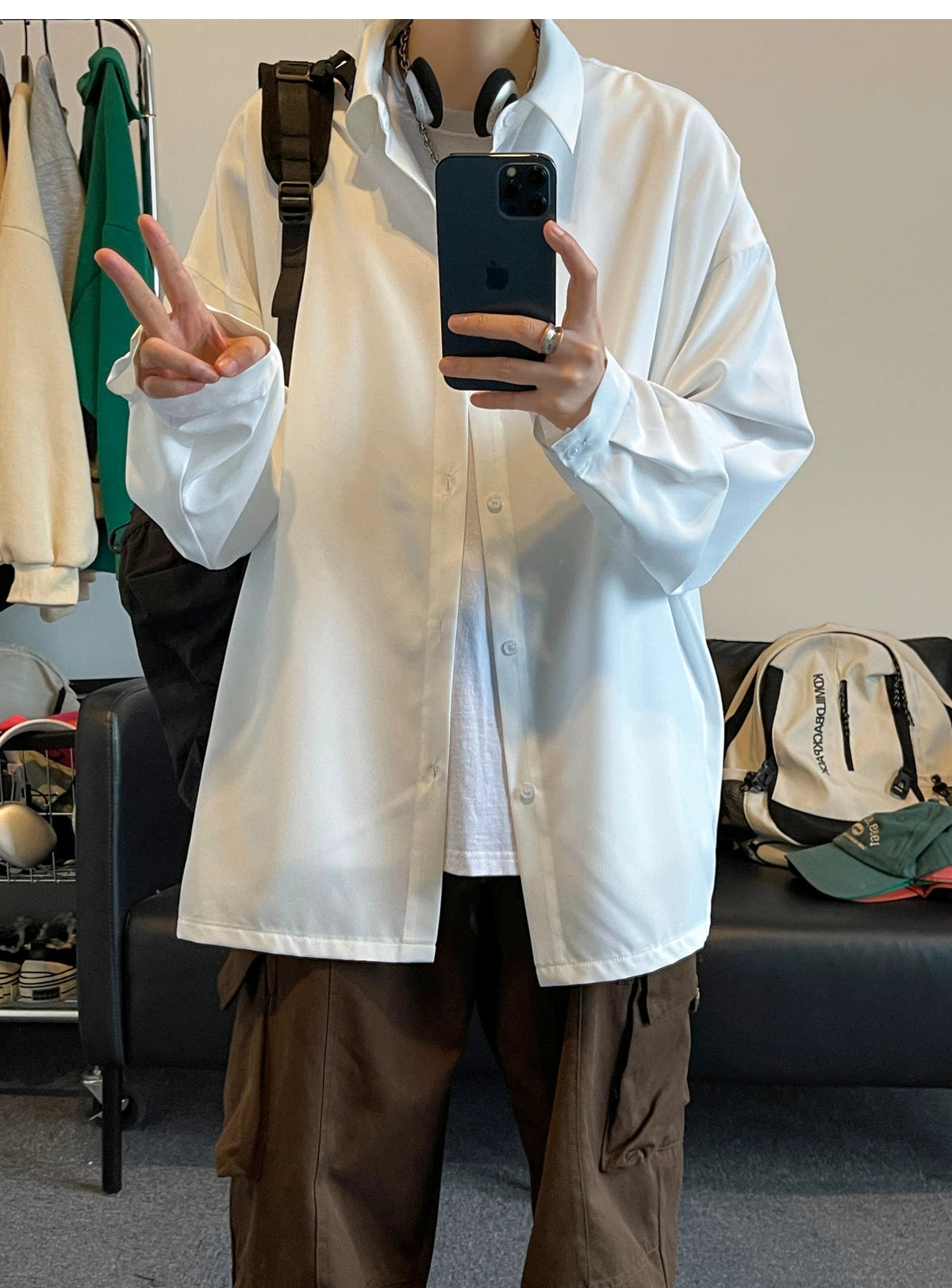 White Long Sleeved Shirt Men Fashion Society Mens Black Dress Shirt Korean Loose Ice Silk Shirt Mens Oversized Casual Shirts