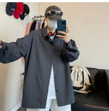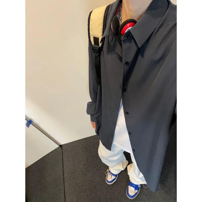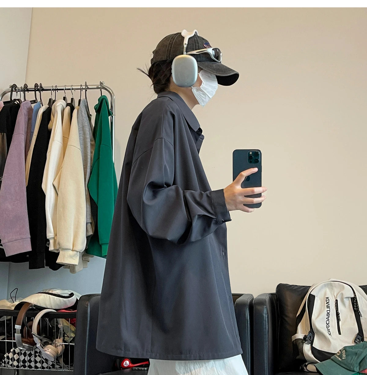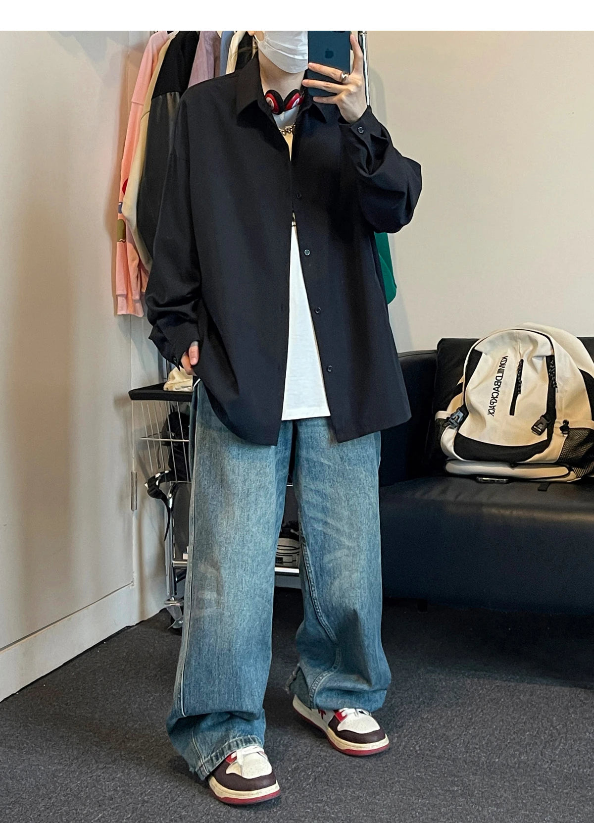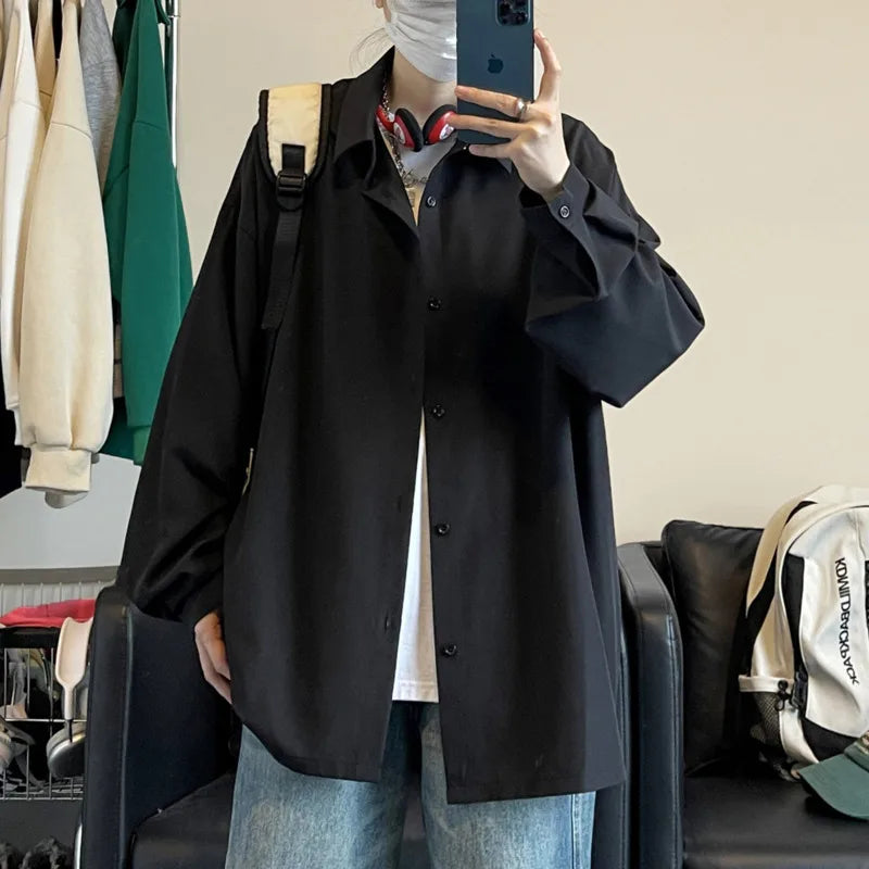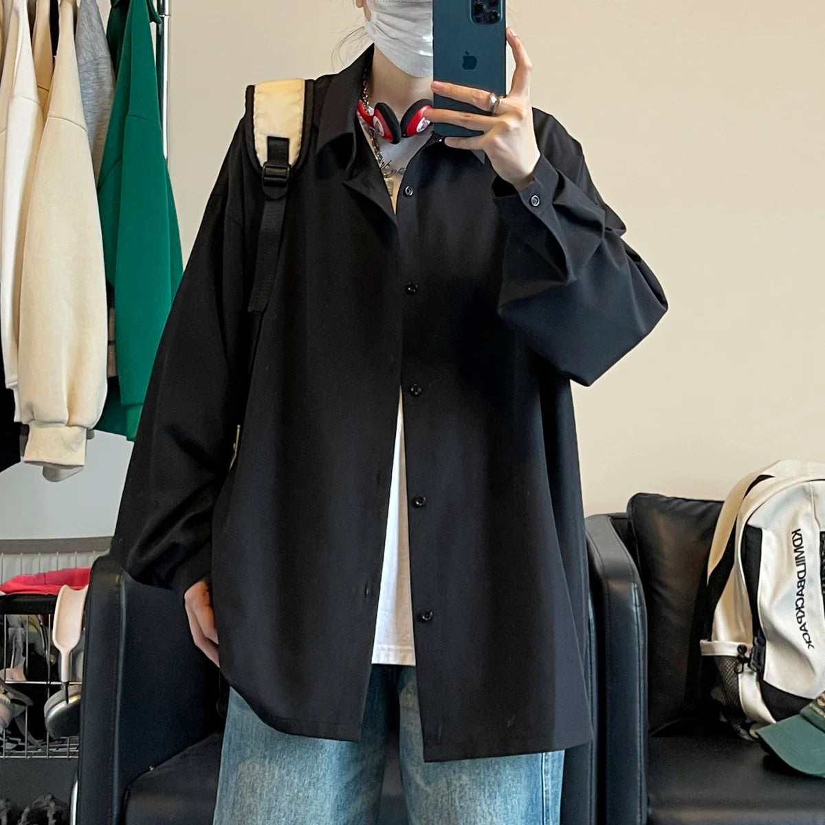 White Long Sleeved Shirt Men Fashion Society Mens Black Dress Shirt Korean Loose Ice Silk Shirt Mens Oversized Casual Shirts