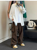 Men's Sets Corduroy Cargo Pants for Men Loose Men's Hoodies Sweatshirt Black Japanese Streetwear Hip Hop Harajuku Autumn