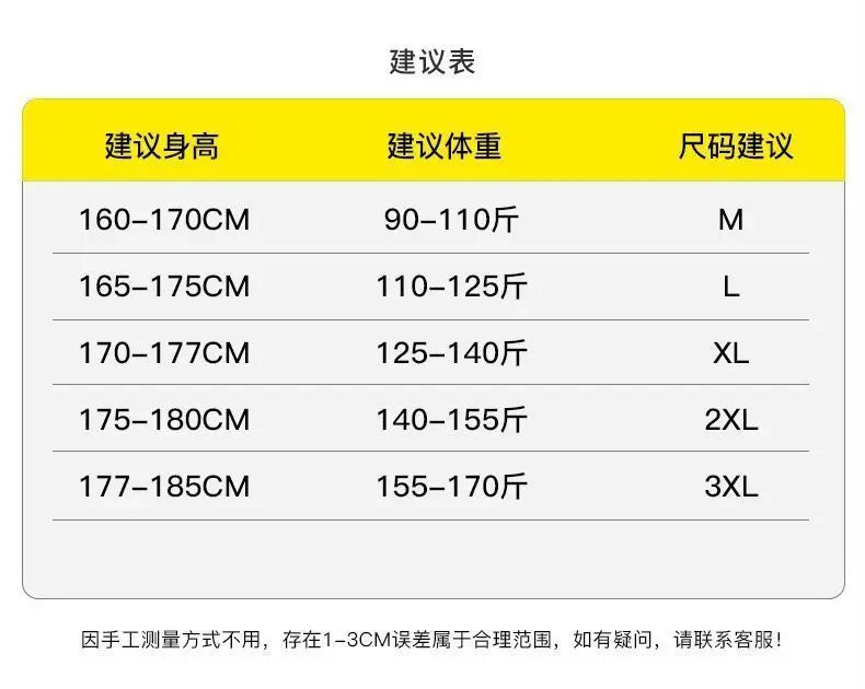 Size 2XL: weight 65kg-70kg, height 175-180cm