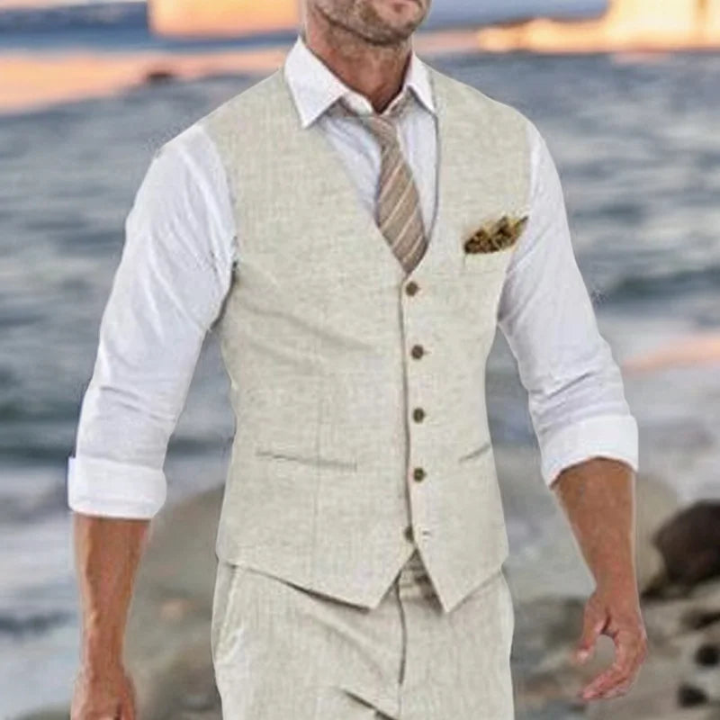 Beige Linen Suit Vest for Men Wedding Summer Beach One Piece Waistcoat V Neck Male Fashion Cost