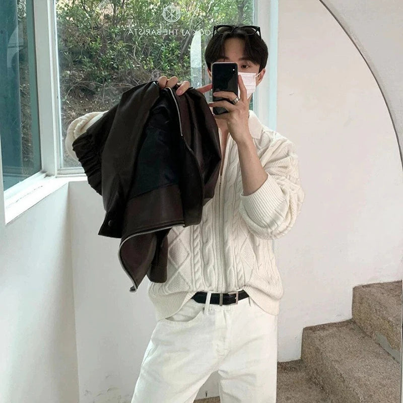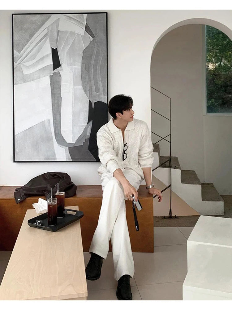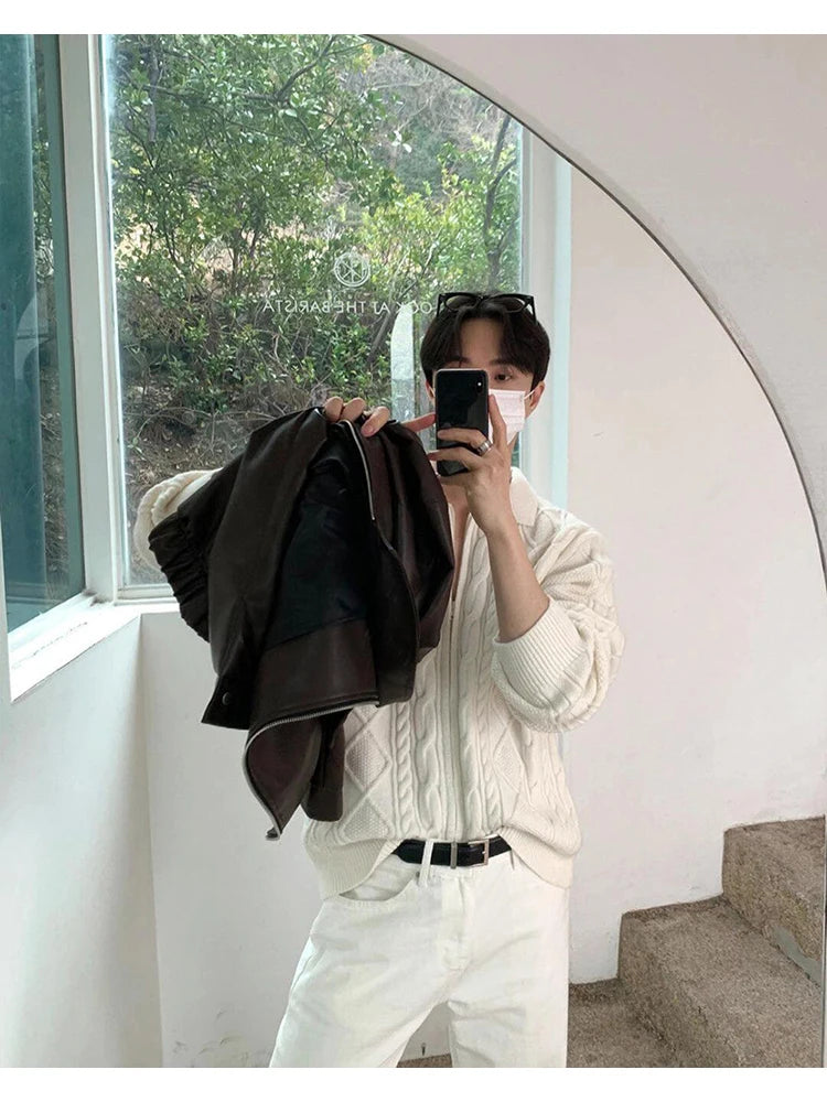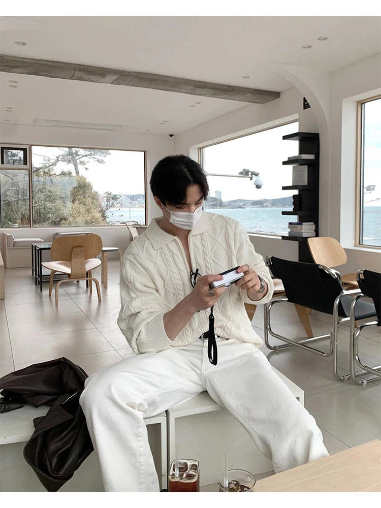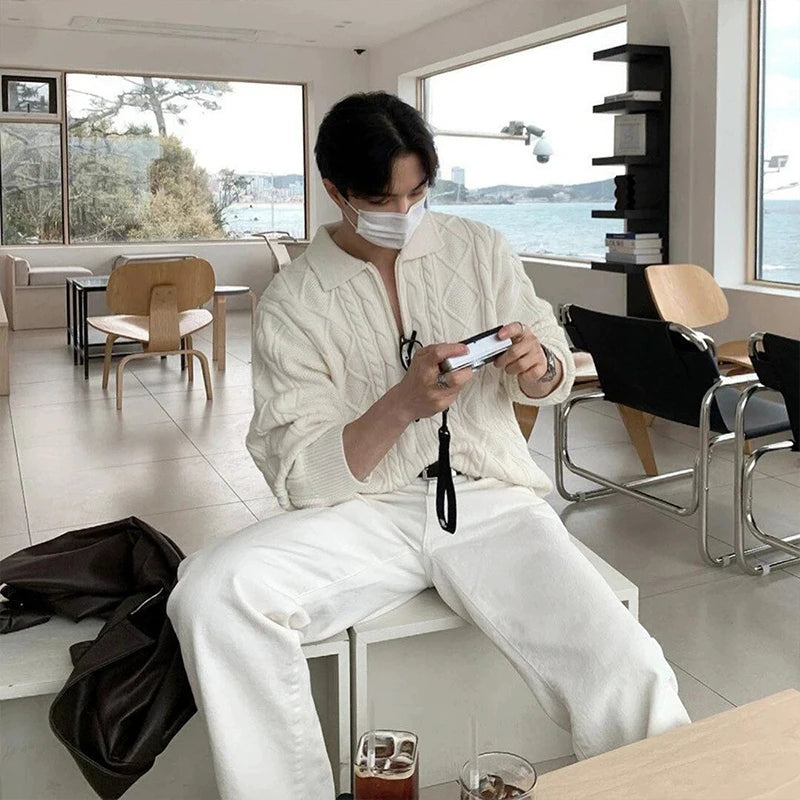 Diamond Graphics Textured Twist Zipper Men Cardigan Light Luxury Lapel Long Sleeve Sweater Coats Premium Quality Knitted Jackets