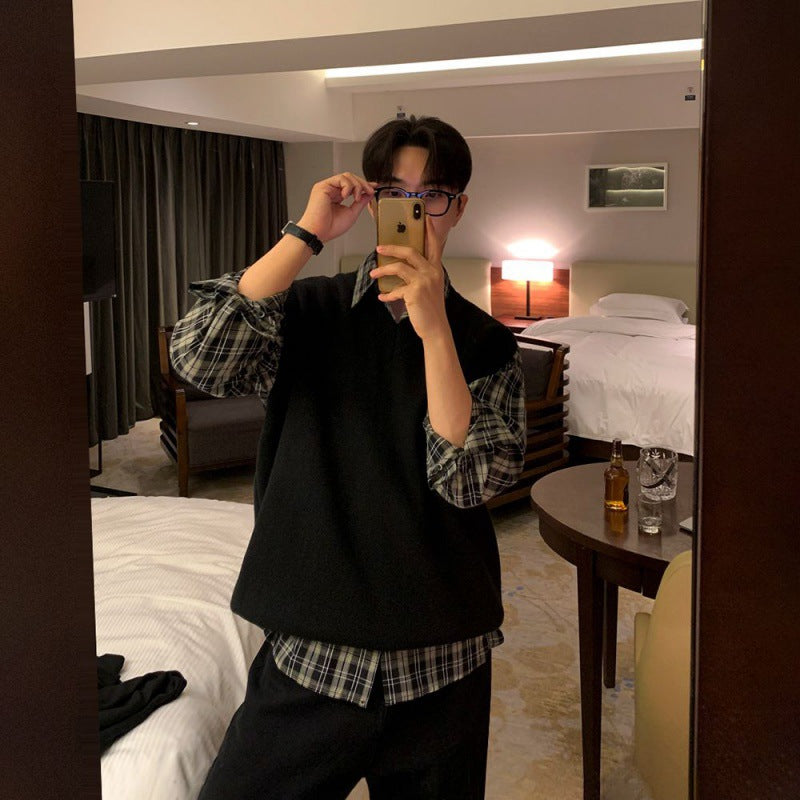 Gotmes-shop mens fall fashion Lazy Style Plaid Shirt Men's Spring Casual Long-Sleeved Shirt Korean Style Loose Shirt Couple Coat Fashion