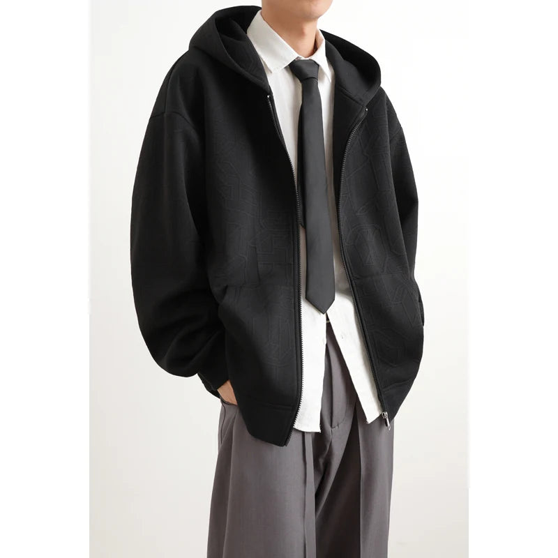 Jacket Mens 2025 Fall New Hooded Jacket Streetwear Trendy Outerwear Innovative Fabric Casual Coat Urban Style Lightweight
