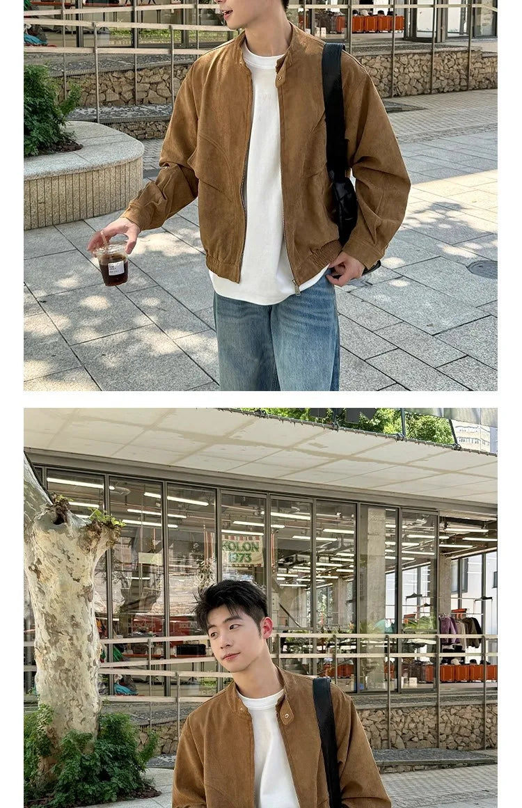 Khaki Cargos Stand Collar Jackets Men's Japanese Retro Streetwear Fashion Solid Color Zipper Long Sleeve Coats Autumn Clothing