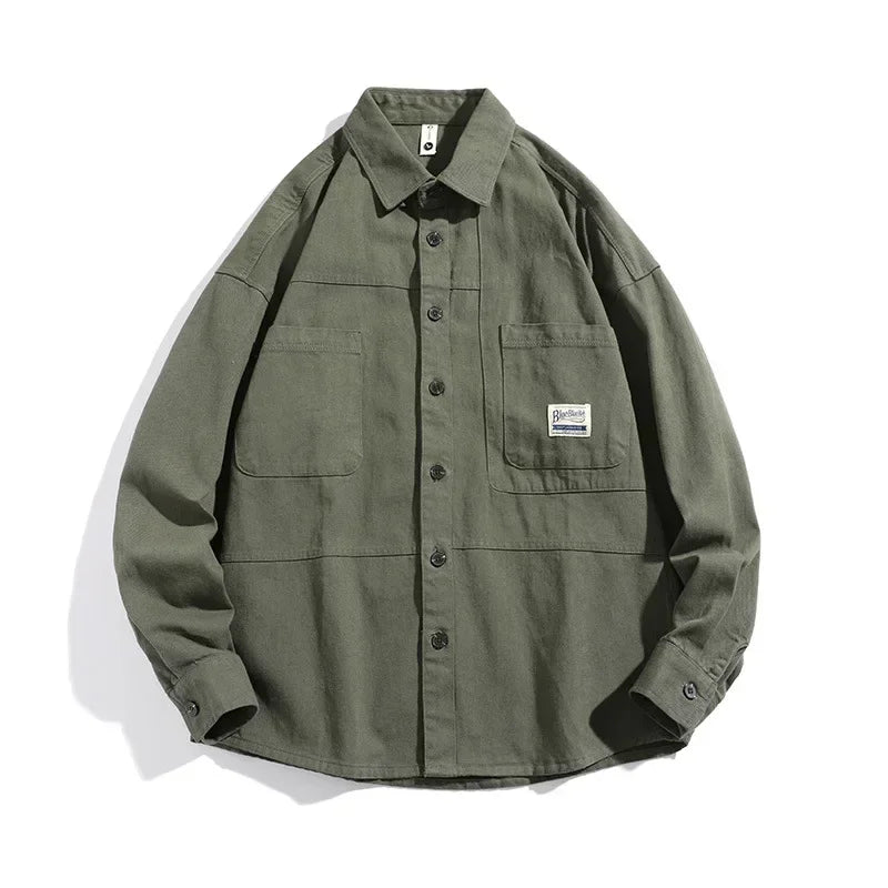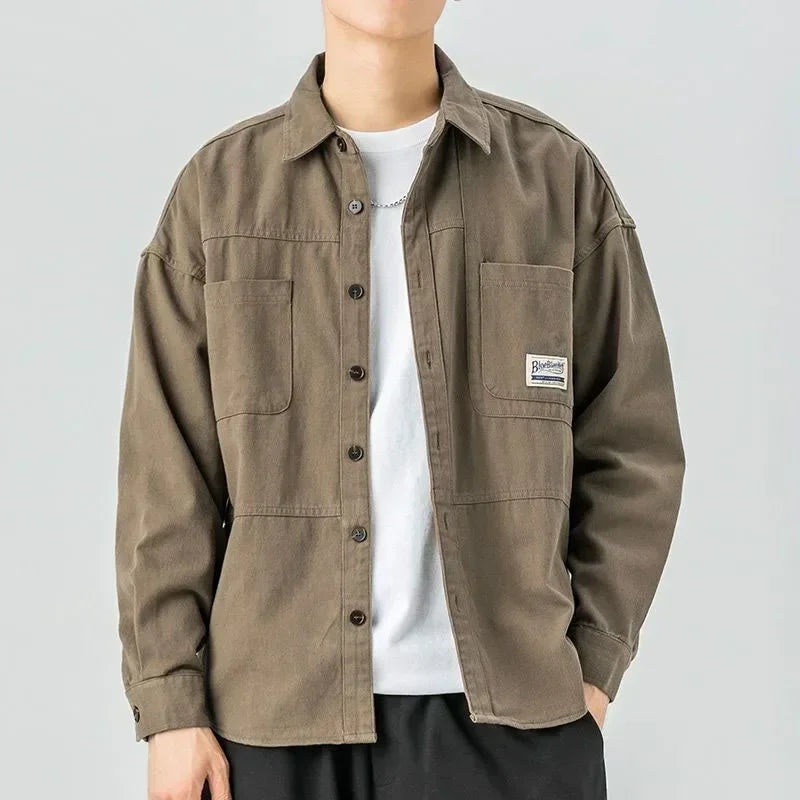 Men Shirts Long Sleeve Jackets Pocket Spring Autumn Cardigan Fashion Streetwear Male Casual Oversize Coat Loose Blouses