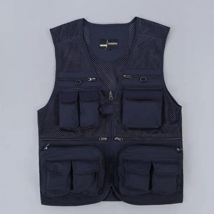 Men's Vest Tactical Outdoor Webbed Gear Coat Summer Fishing Waistcoat Men Tool Multi-Pockets Mesh Work Sleeveless Jacket Male