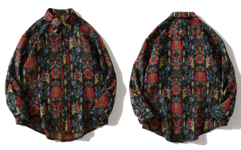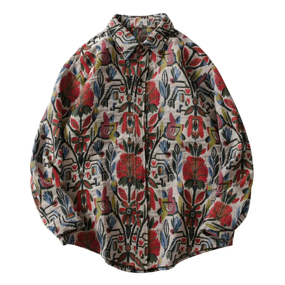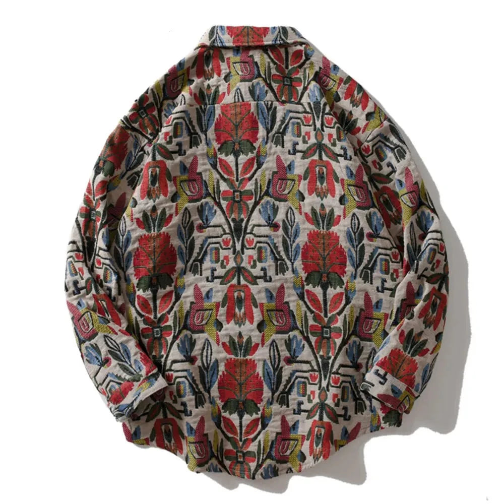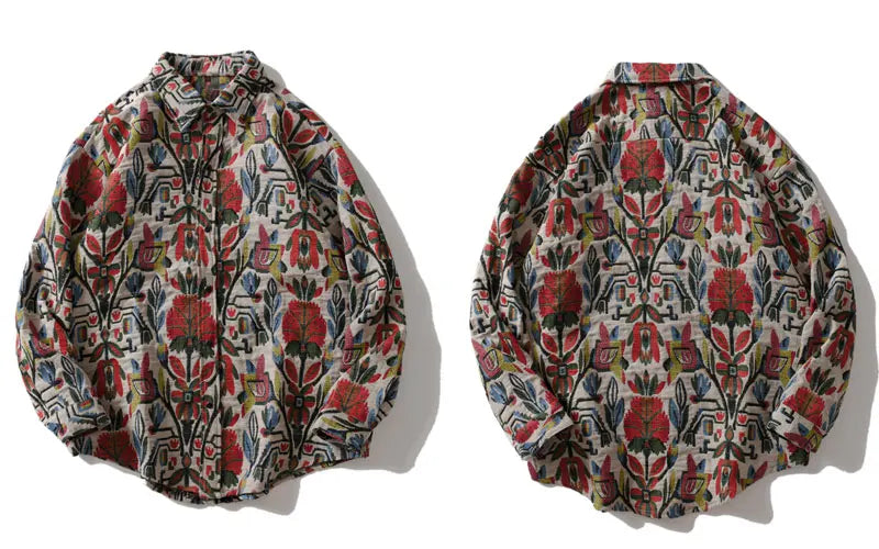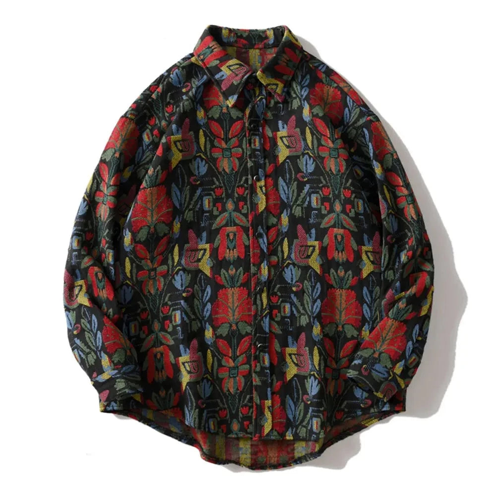 Southwestern Aztec Tribal Indian Button Shirts Streetwear Hip Hop Casual Flowers Patterned Long Sleeve Shirt Coats Tops