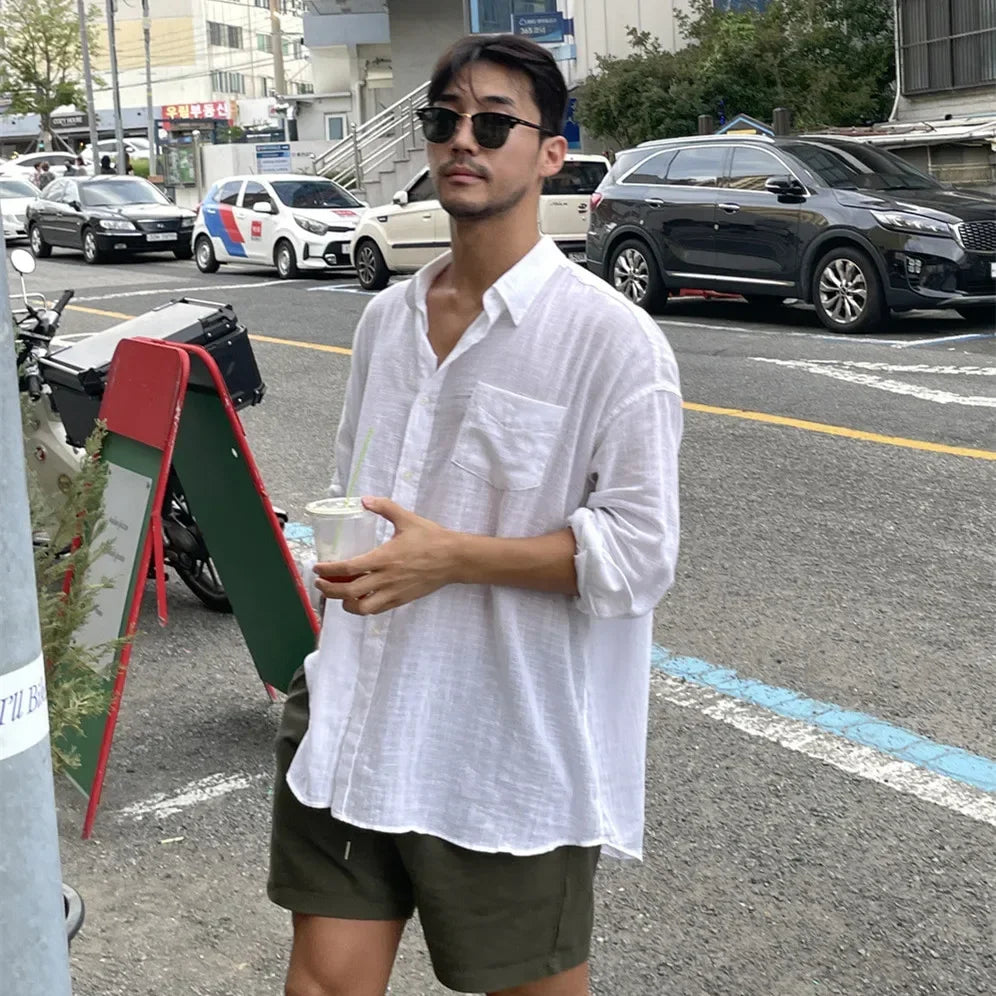 Unisex Oversized Linen Shirt Coat Men's Long Sleeve Casual Loose Fit Fashion Japanese Korean Style Sun Protection Clothing