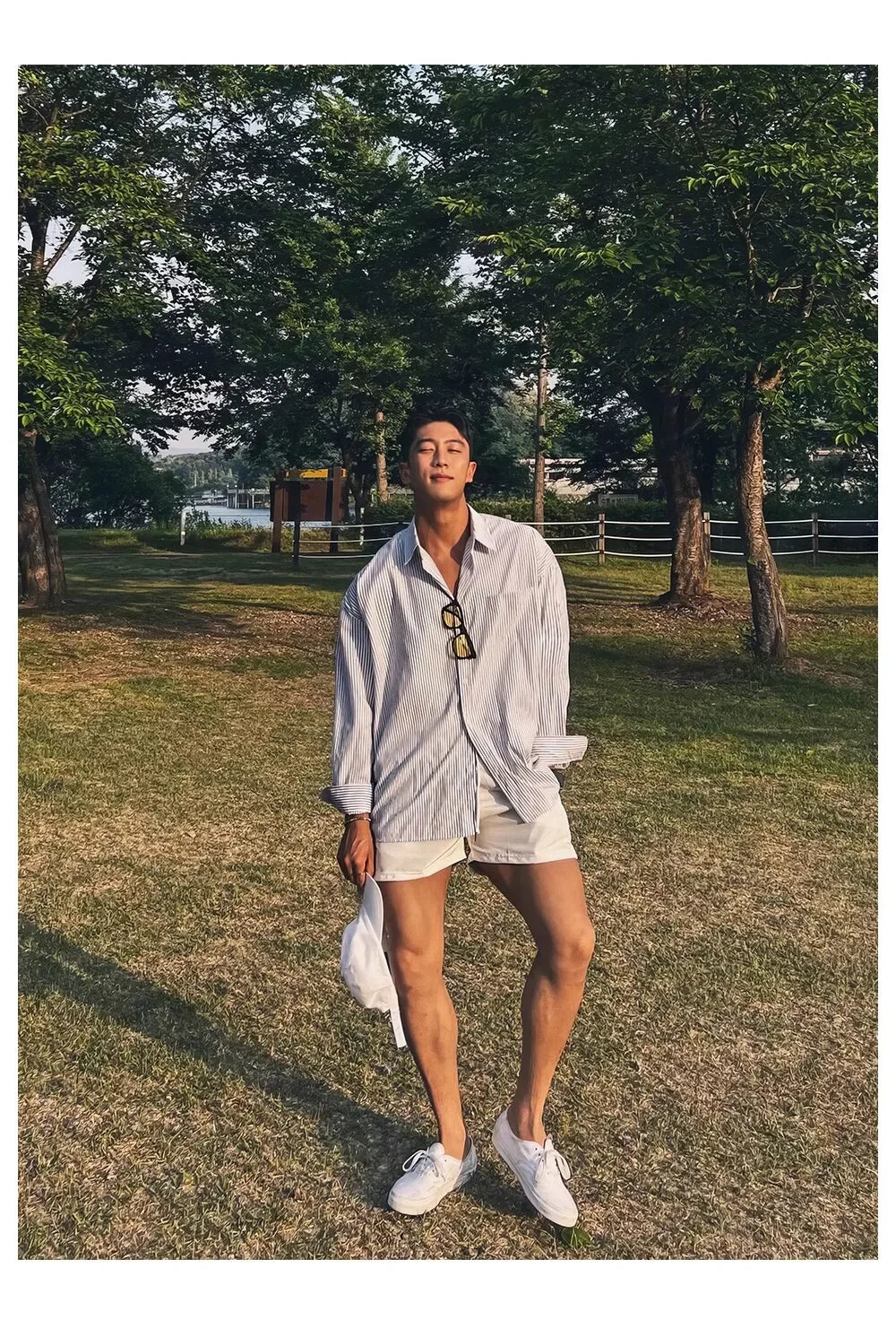 Unisex Oversized Striped Shirt Coat Men's Long Sleeve Casual Loose Fit Fashion Japanese Korean Style Sun Protection Clothing