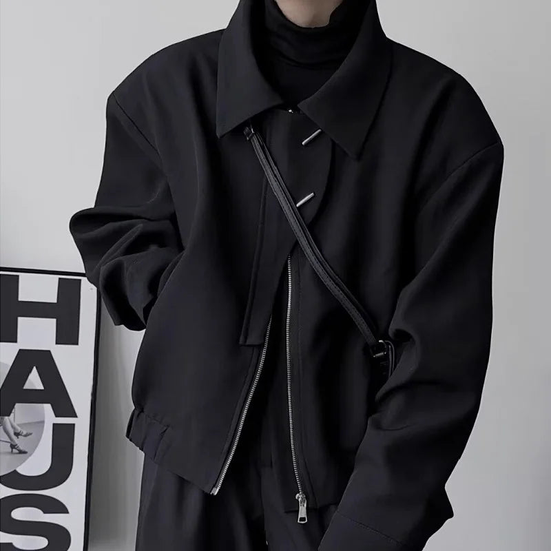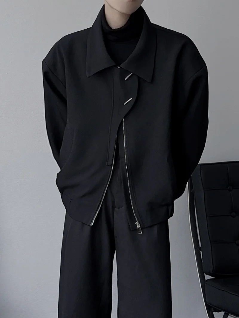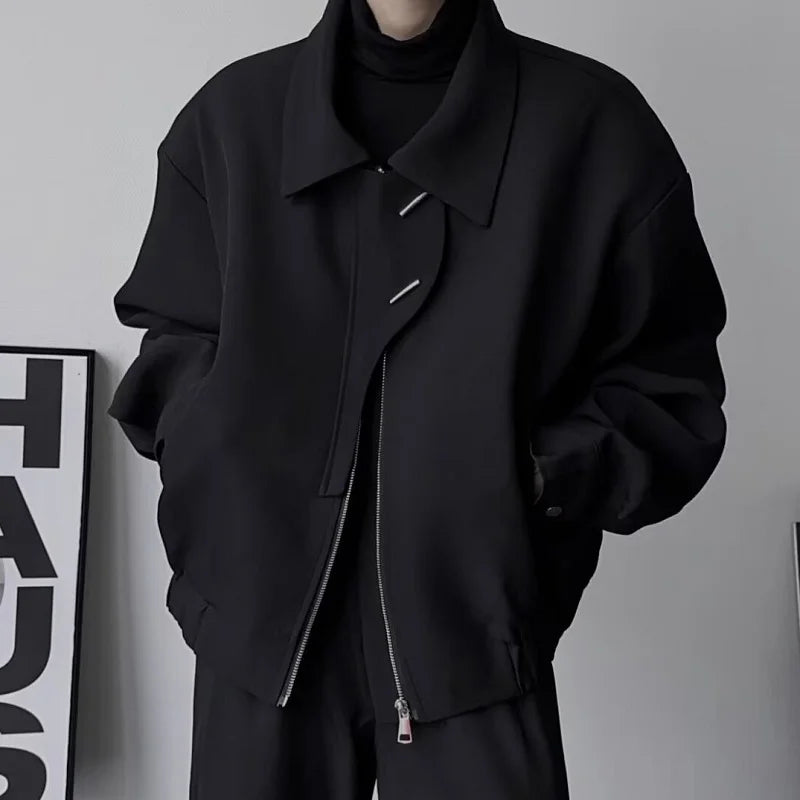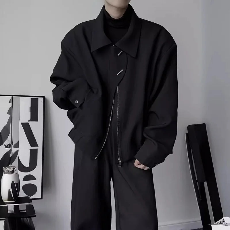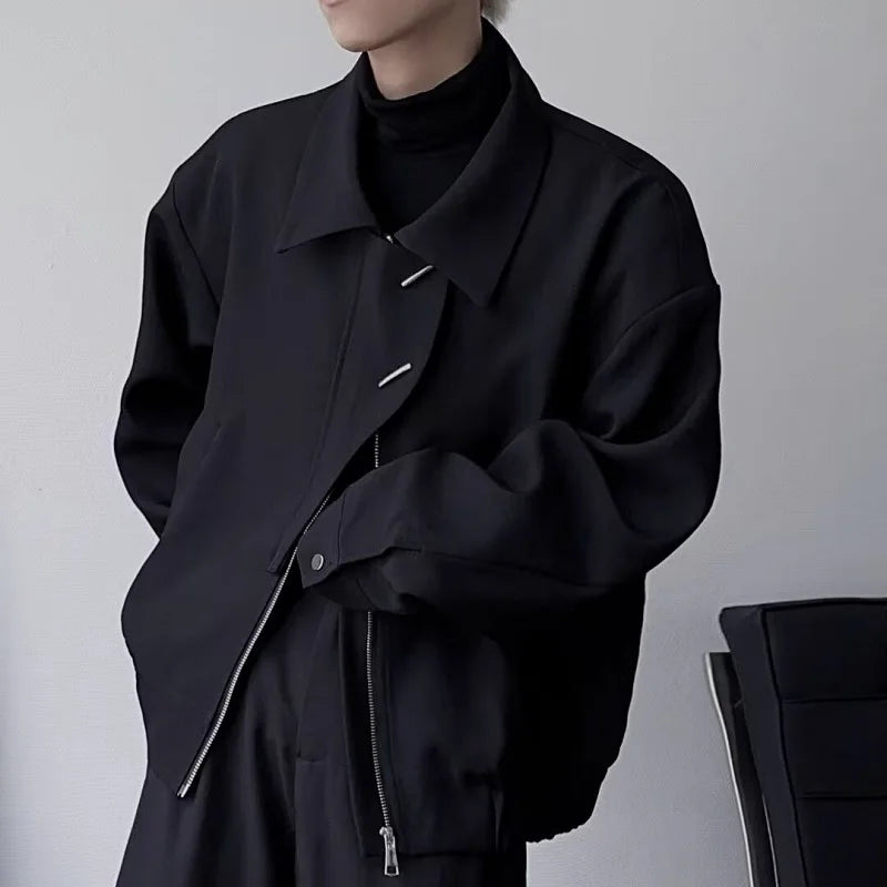 Y2k Dark Design Sense Short Wide Shoulder Flight Jacket Fashion Casual Men Women Simple Lapel Long Sleeve Trend Tops Coat