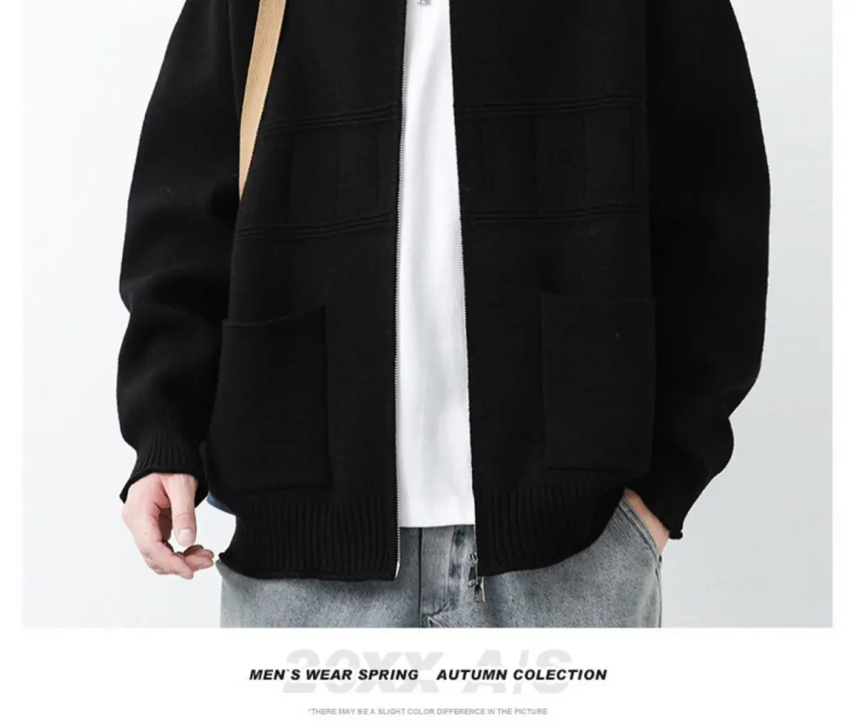 Autumn KPOP Fashion Style Harajuku Slim Fit Knitwear Loose Casual All Match Outerwear Pockets Cardigan Long Sleeve Sweaters