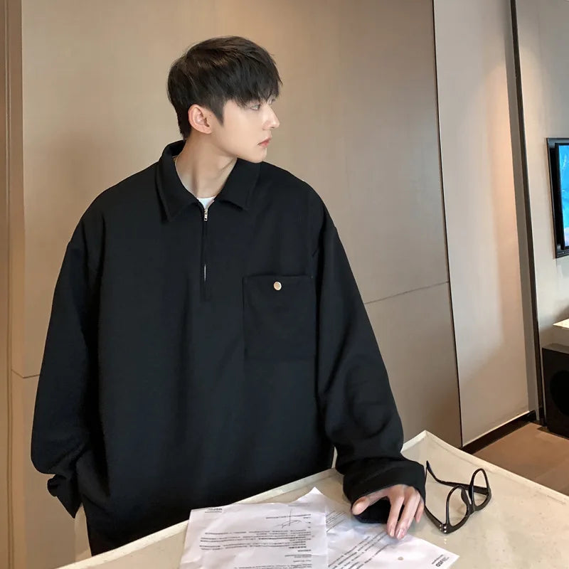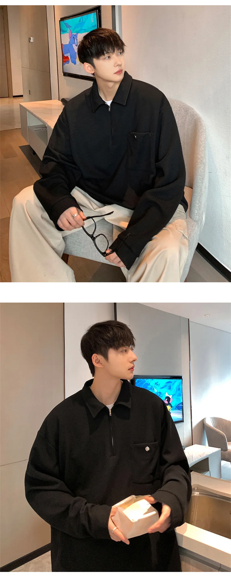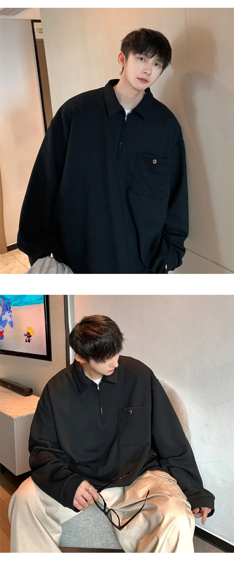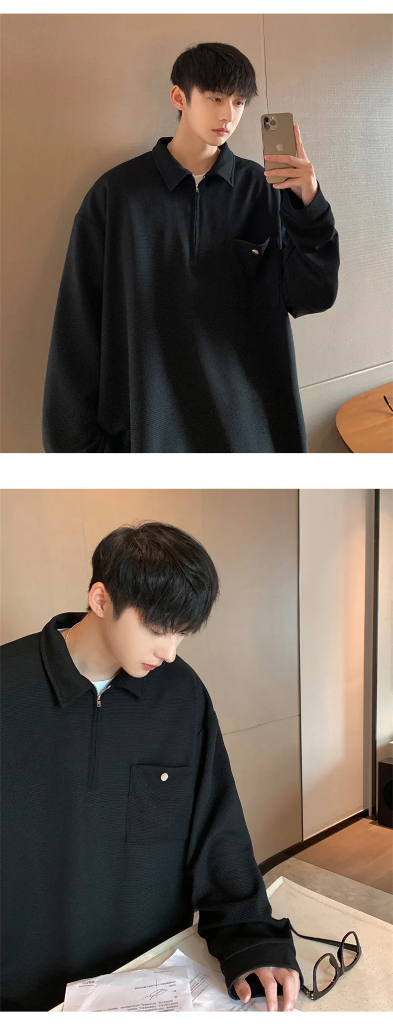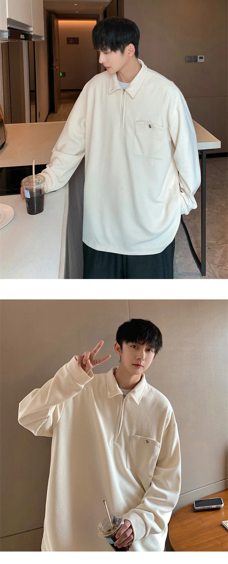 Half Zipper Hoodie Men Early Autumn Harbor Fashion Simple Waffle Long Sleeve Polo Shirt Ins Trend Loose Casual Y2k Hoodie