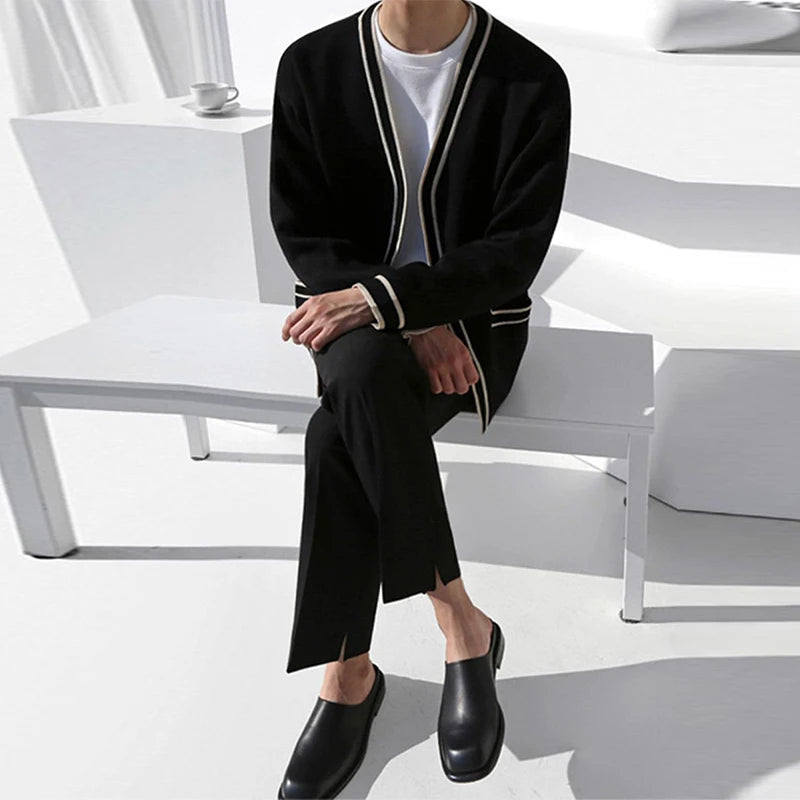 Autumn Clothing Men's Luxury Knitted V Neck Cardigan Sweater Long Sleeve Streetwear Leisure Coat Fashion Korean Knitwear