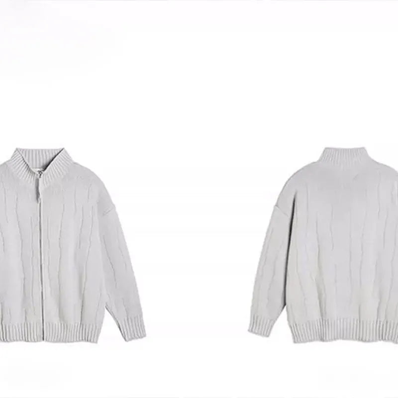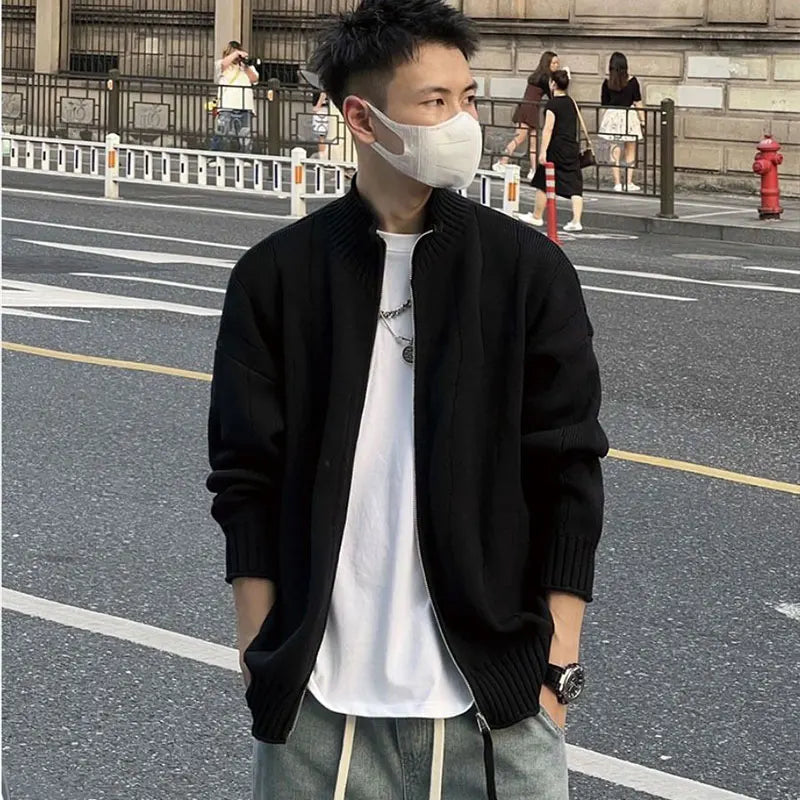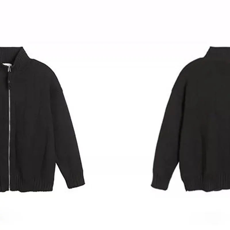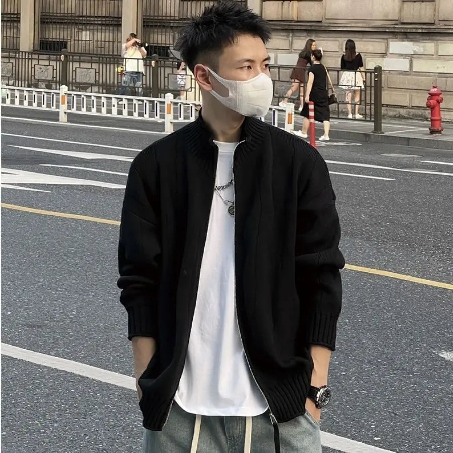 Autumn KPOP Fashion Style Harajuku Slim Fit Outerwear Loose Casual All Match Knitwear Cardigan Solid Zipper Long Sleeve Sweaters