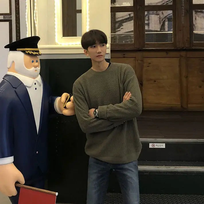 Autumn Mens Sweater Solid Color Loose Casual Bottoming Pullover Round Neck Japanese Warm Knitted Sweater