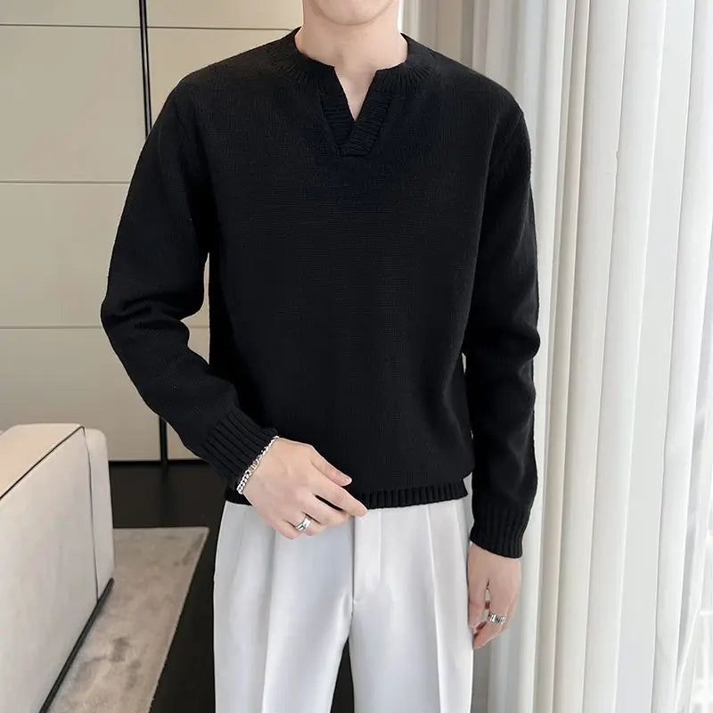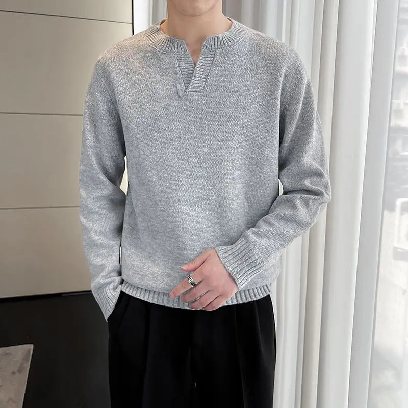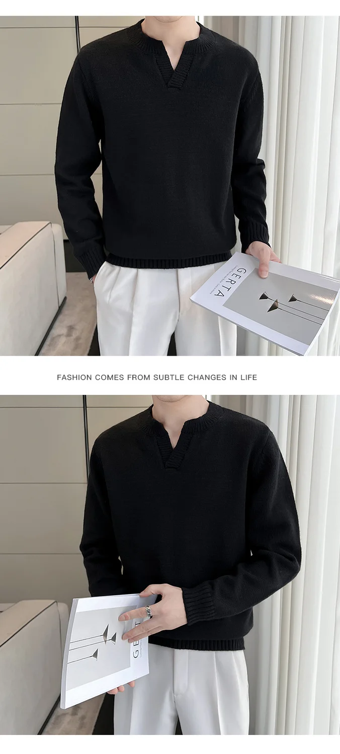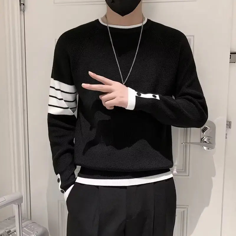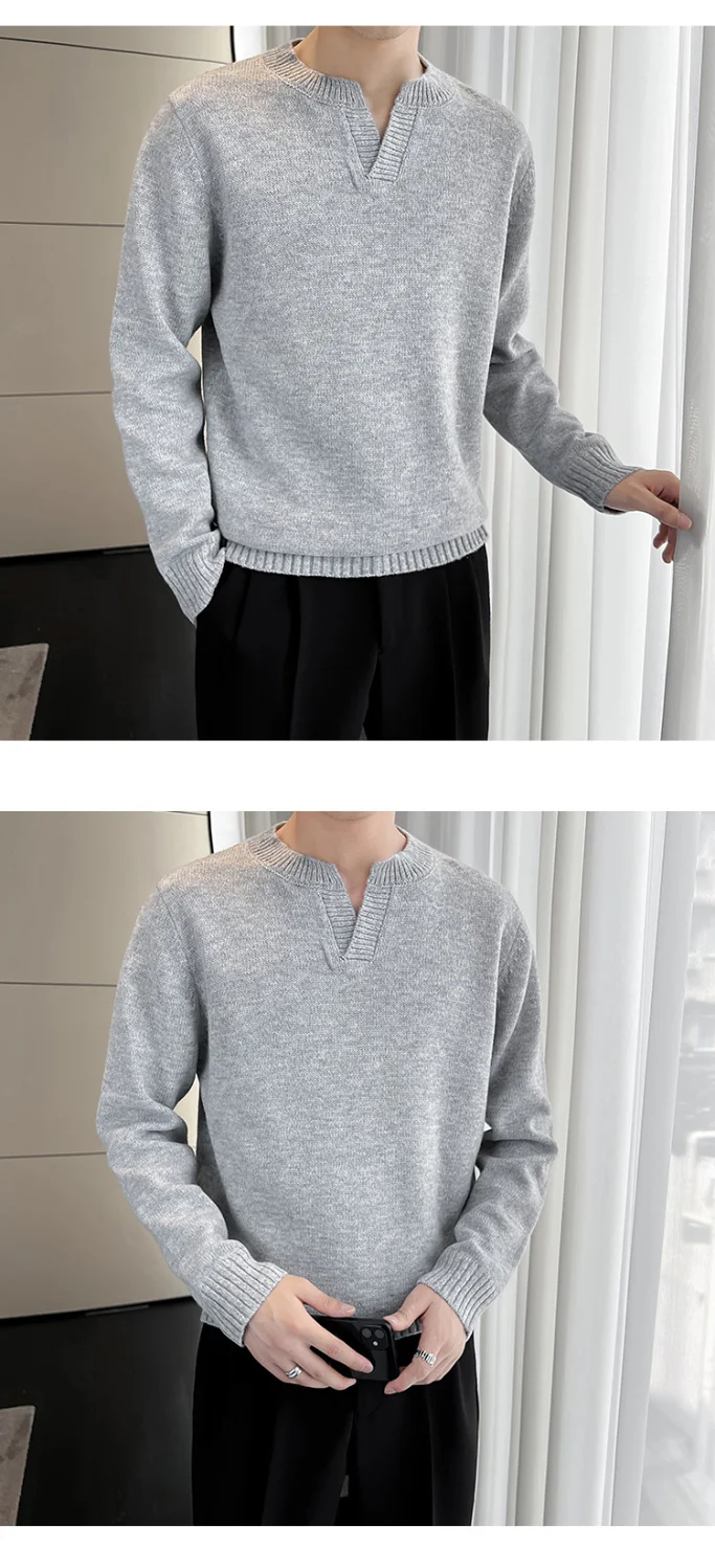 Autumn Winter Fashion Harajuku Knitwear Sweaters Men Casual All Match Undershirt Solid Long Sleeve Knitting Tops Solid Pullover