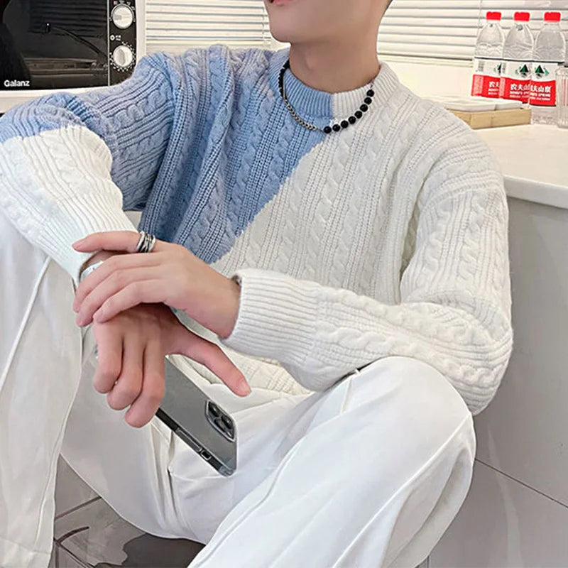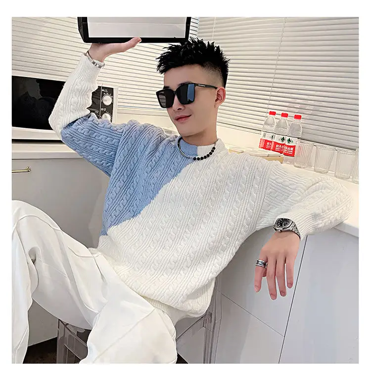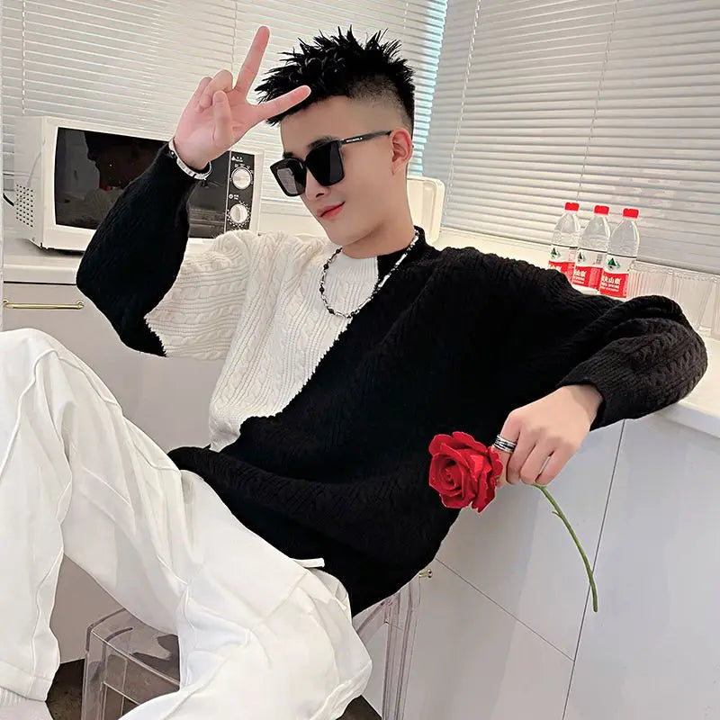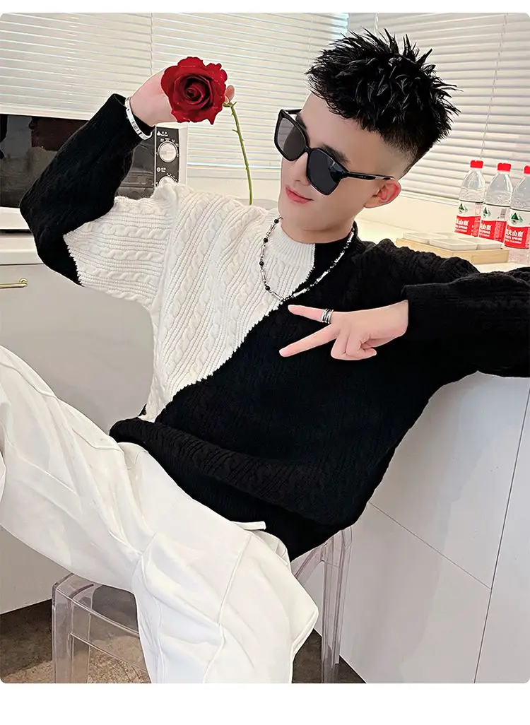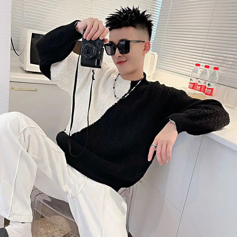 Autumn Winter KPOP Fashion Style Harajuku Slim Fit Tops Loose All Match Casual Knitwear Contrasting Colors Long Sleeve Sweaters
