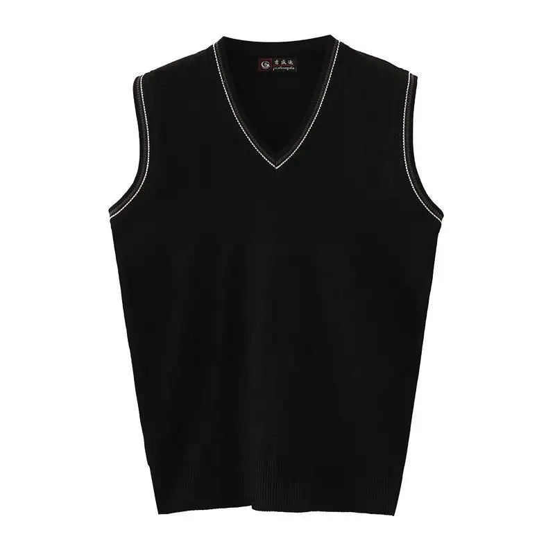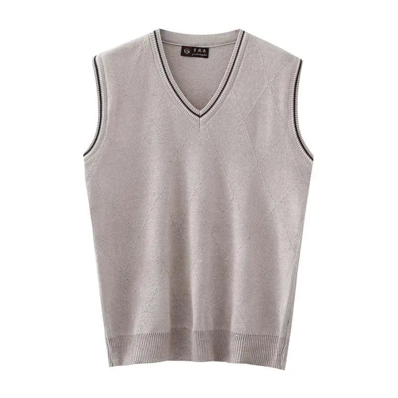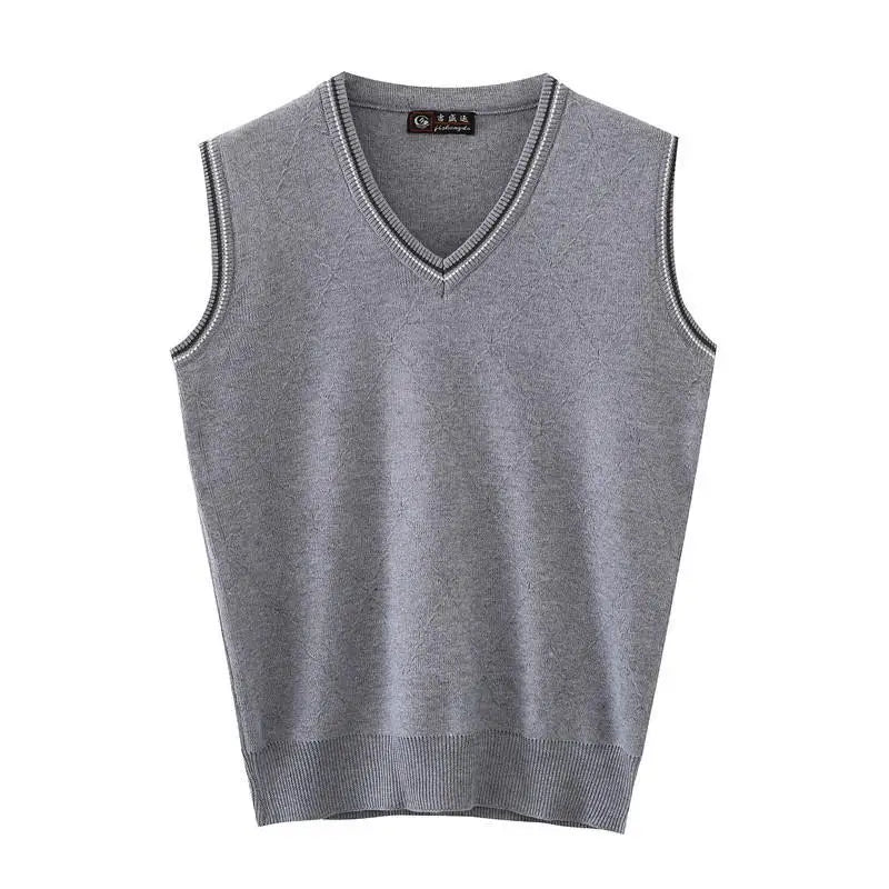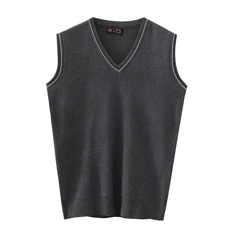 Autumn Winter Middle Aged Men Simple Classic Business Casual Sweater Vest Man V Neck Sleeveless Loose Pullover Knitted Waistcoat