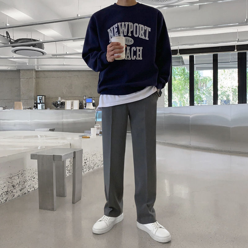 Gotmes-shop 90s fashion men Myq Letter Embroidered Sweater Men's Spring Korean Style Loose Trendy All-Match Cotton Pullover round Neck Long Sleeve Top