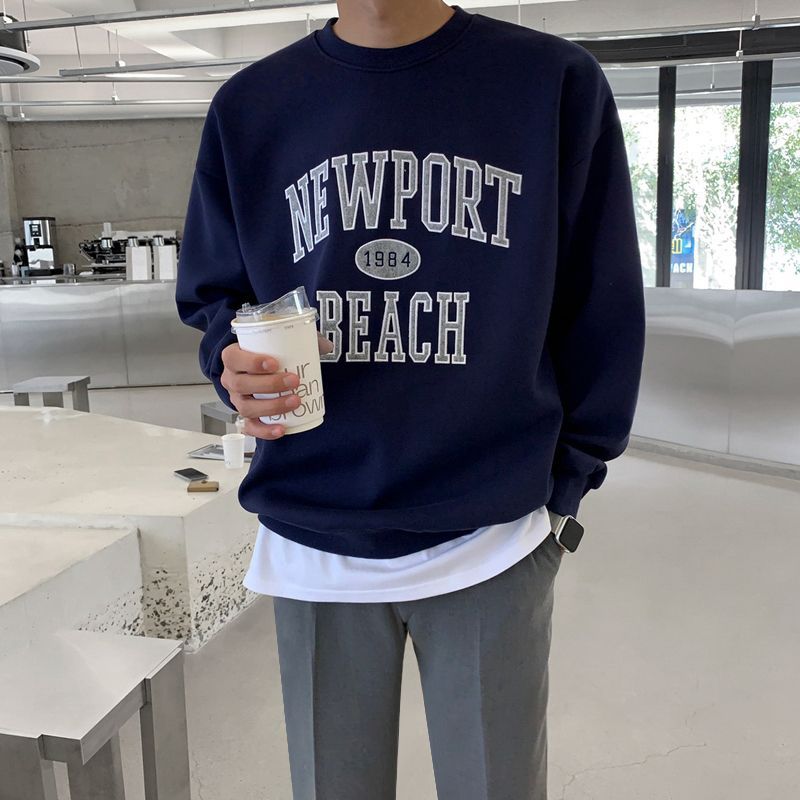 90s fashion men Myq Letter Embroidered Sweater Men's Spring Korean Style Loose Trendy All-Match Cotton Pullover round Neck Long Sleeve Top