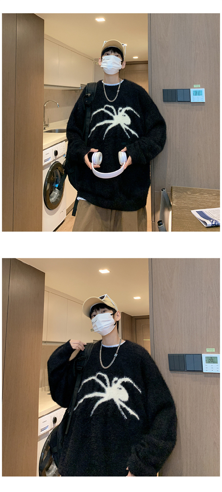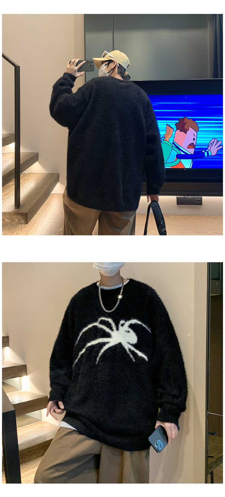 Harajuku High Street Mohair Spider Sweater Men Women Fashion Casual Loose Senior Sense Niche Design Couple Mink Cashmere Sweater