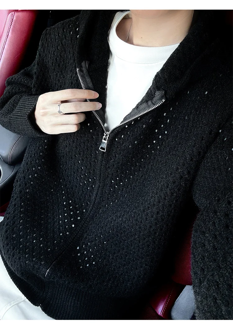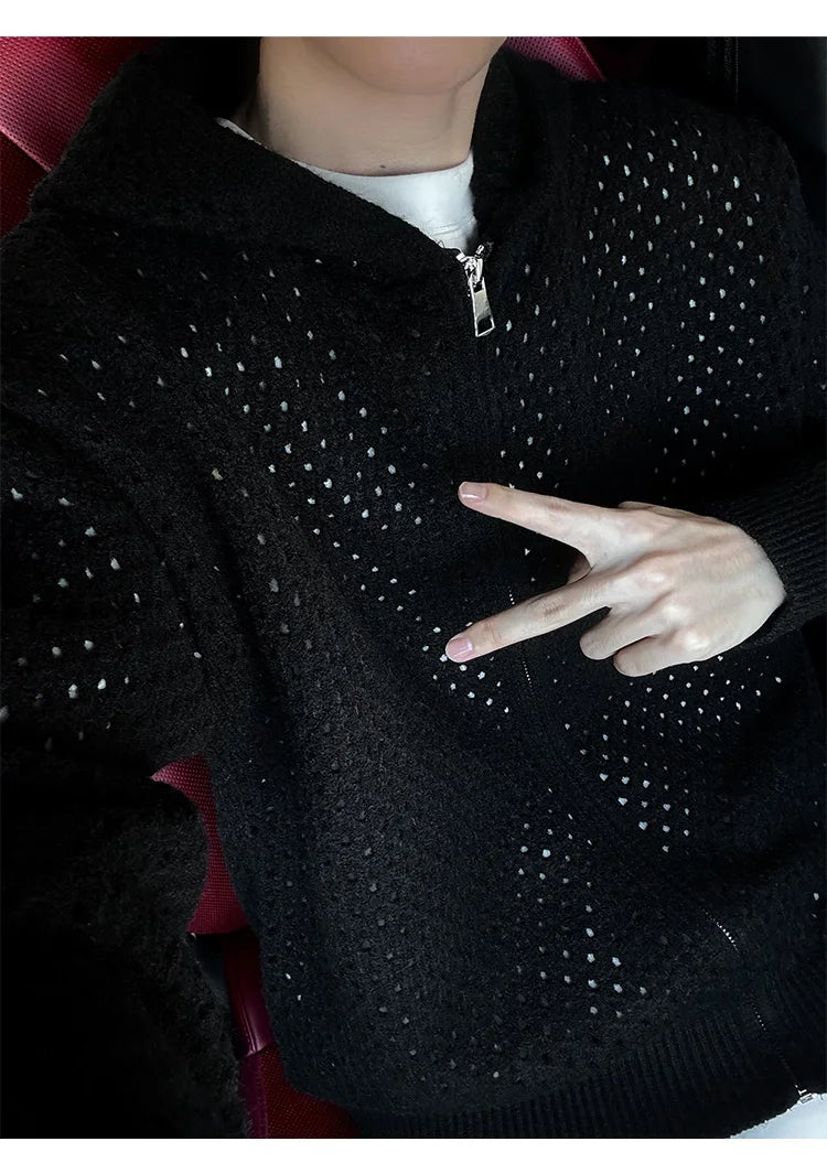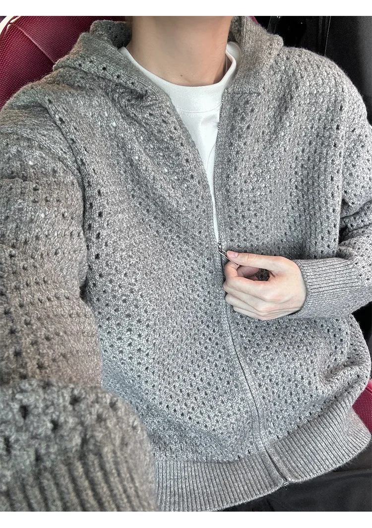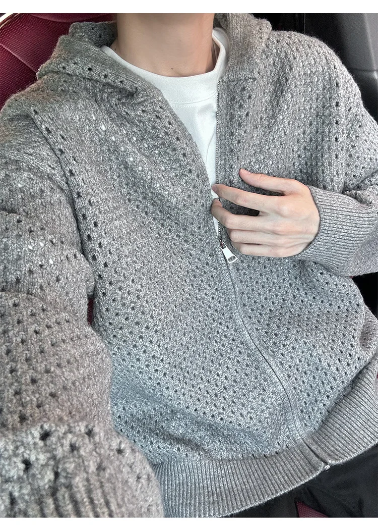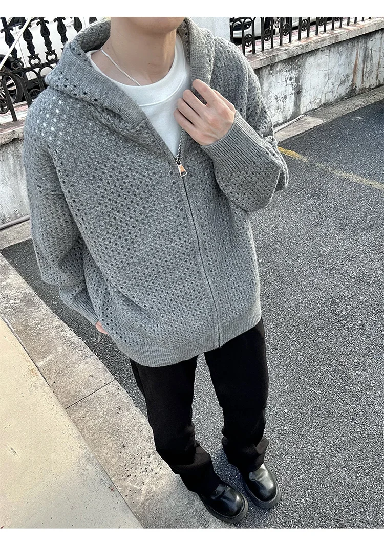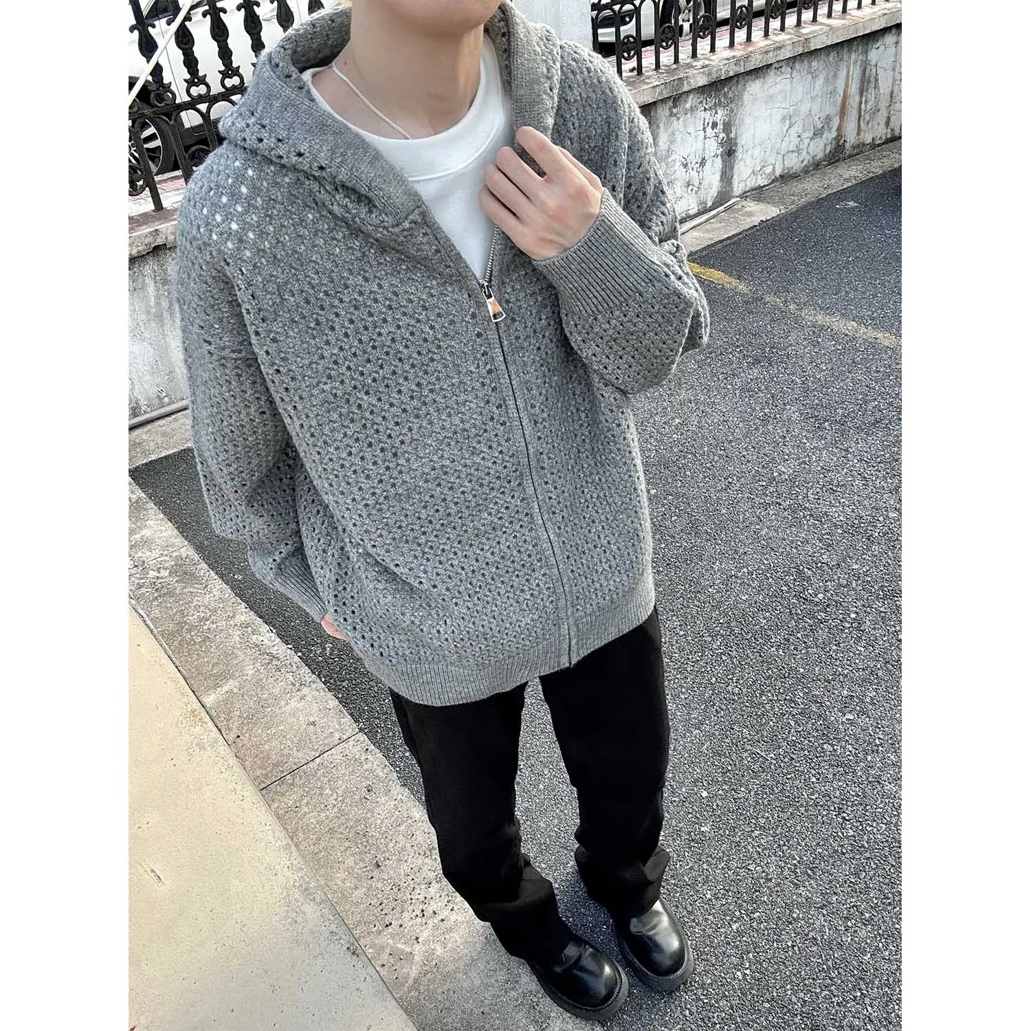 Hollow Out Knit Sweater Men Women Casual Loose Fishing Net Long Sleeve Male Tops 2024 Autumn Streetwear Hooded Pullovers