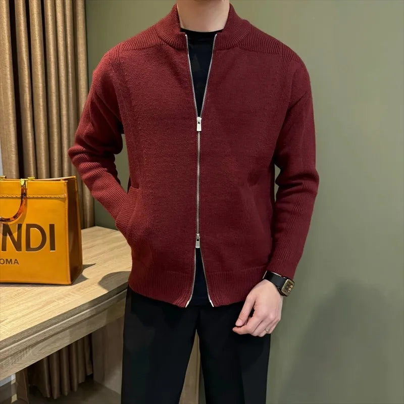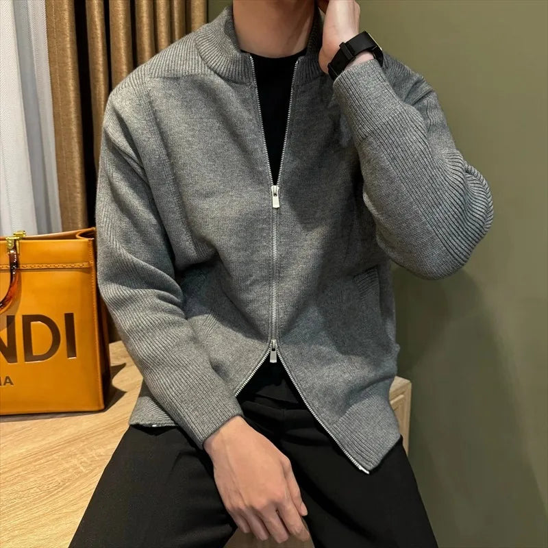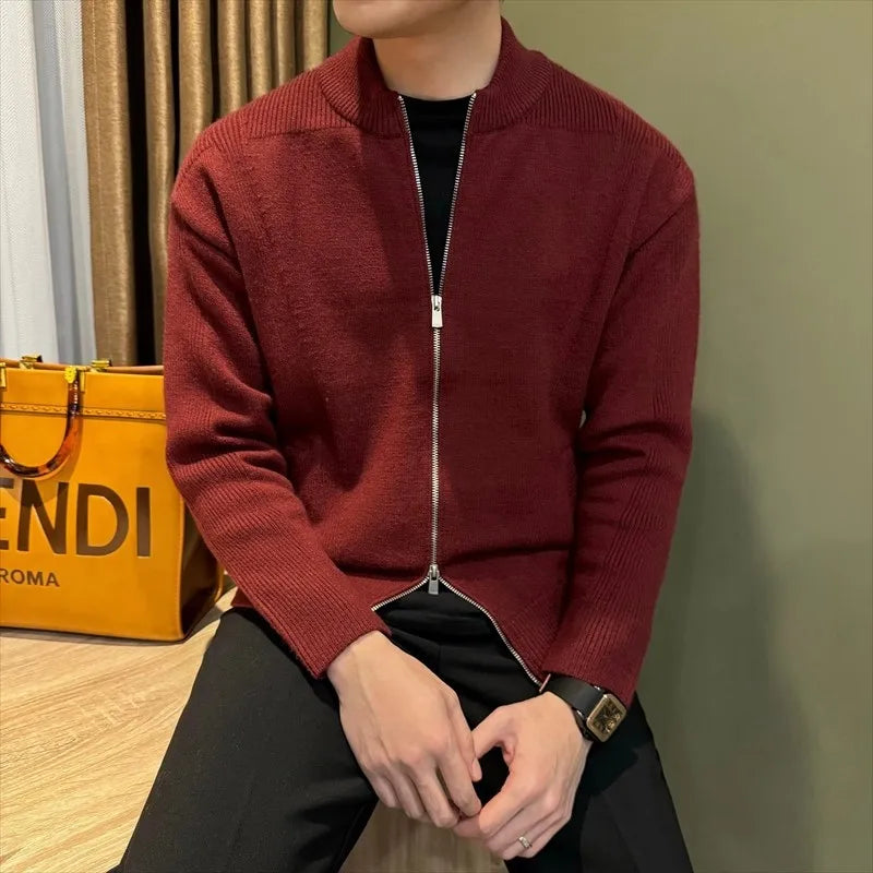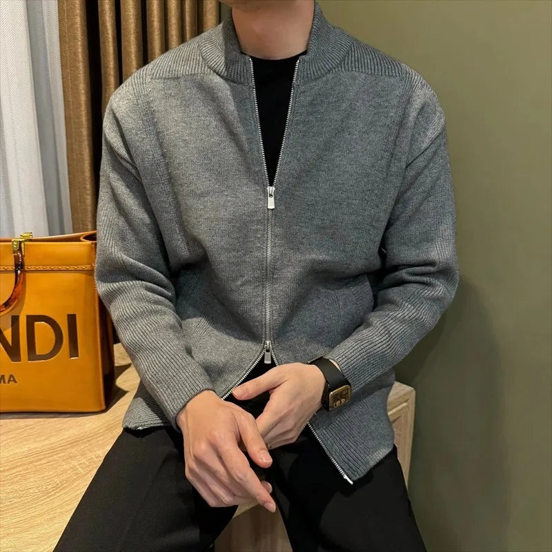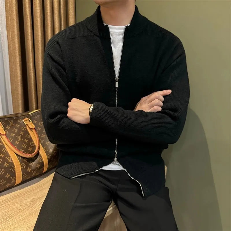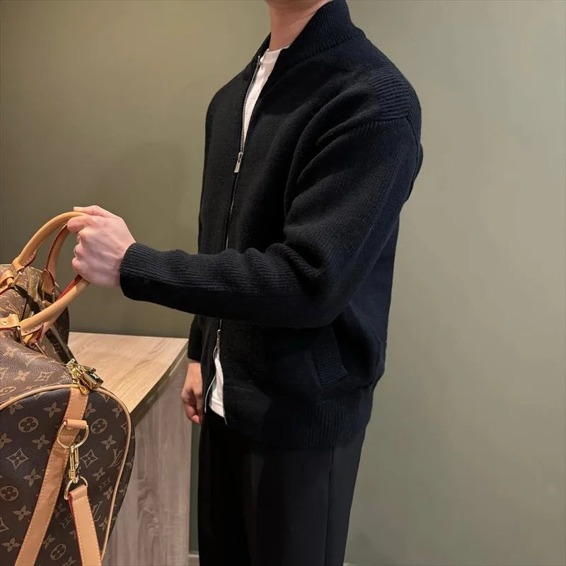Japanese Stand Collar Men Cardigan Jacket Light Luxury Trendy Knitted Zip-up Long Sleeve Sweater Coat Premium Quality Knitwear
