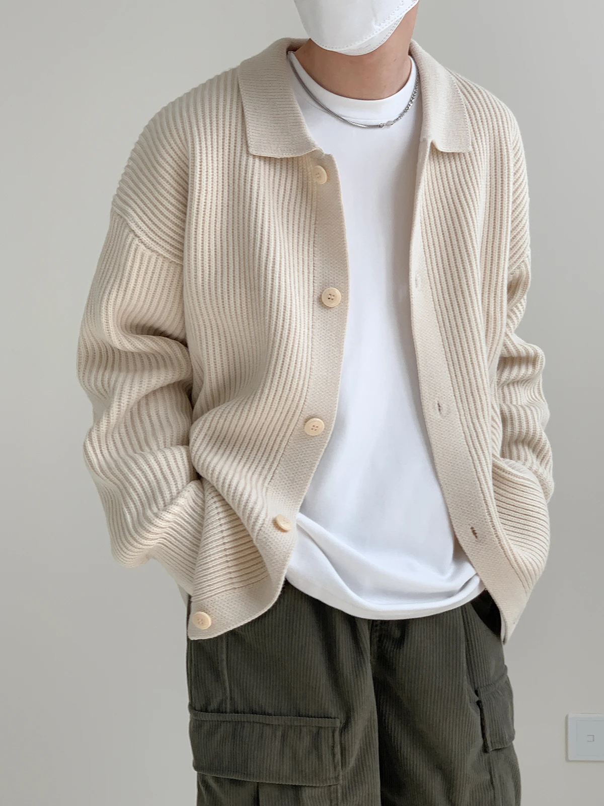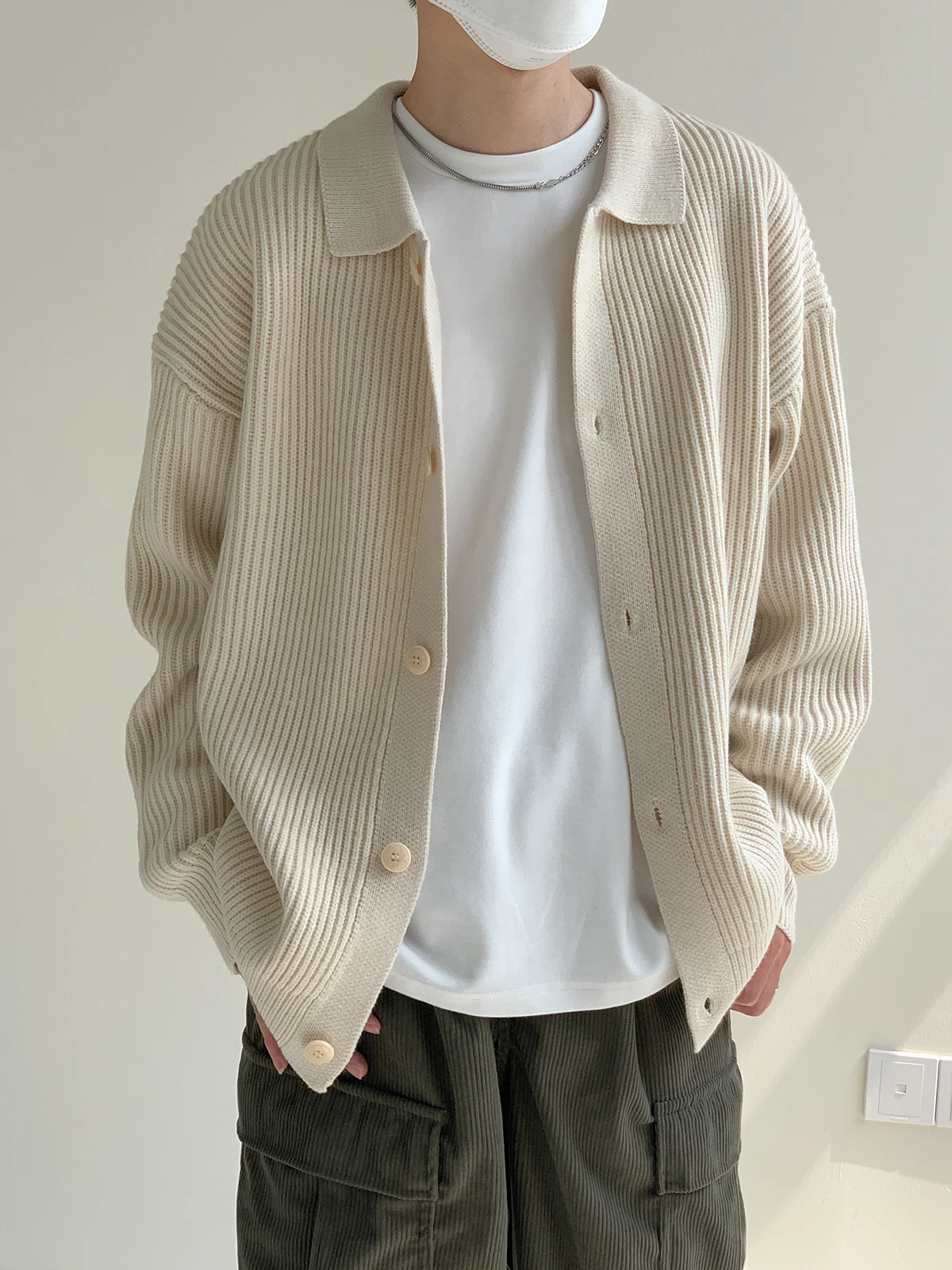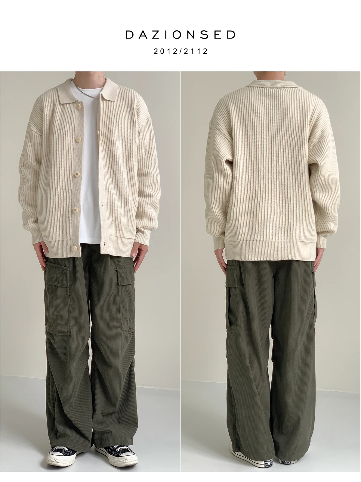 Knitted Cardigan Men Simple Lazy Style All-match Warm Lapel Sweaters Casual Design Ulzzang Handsome Soft Outwear High Street Ins