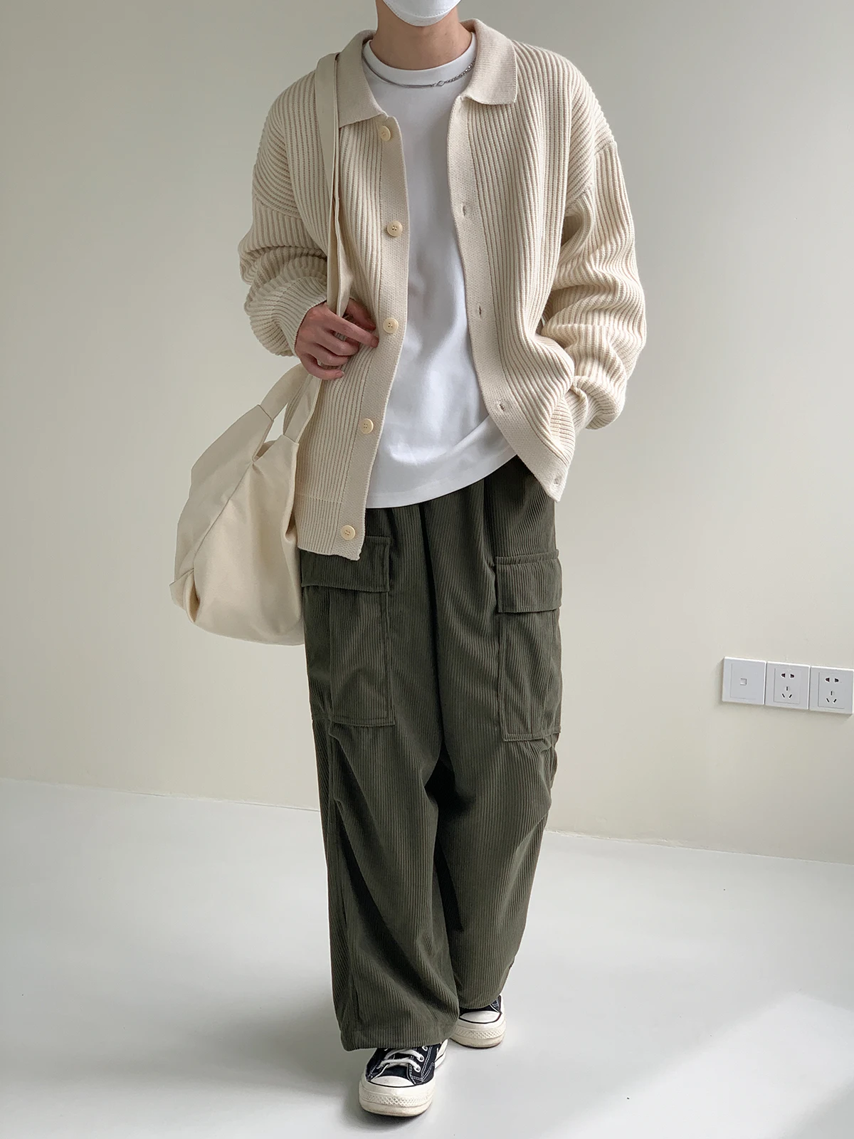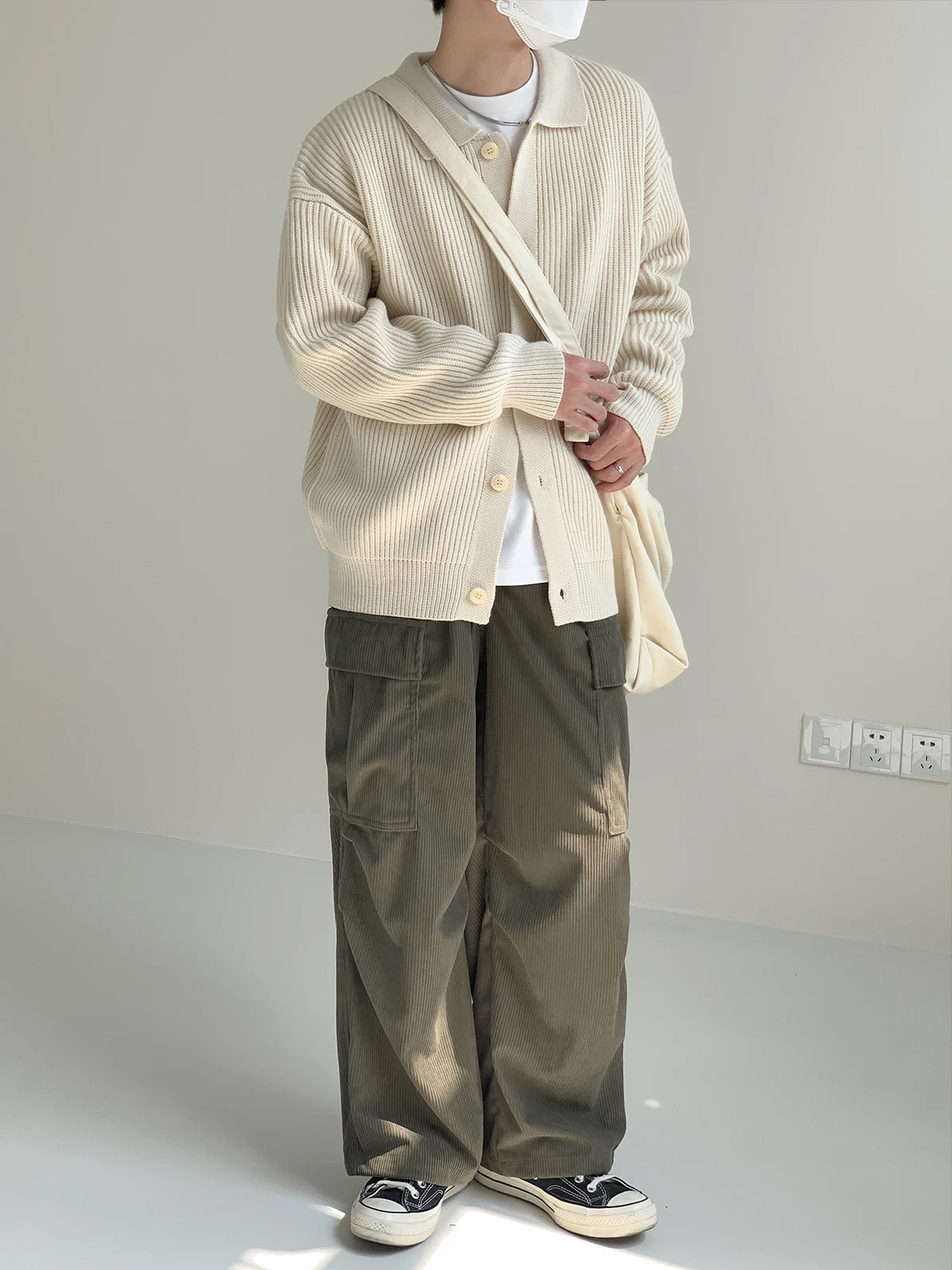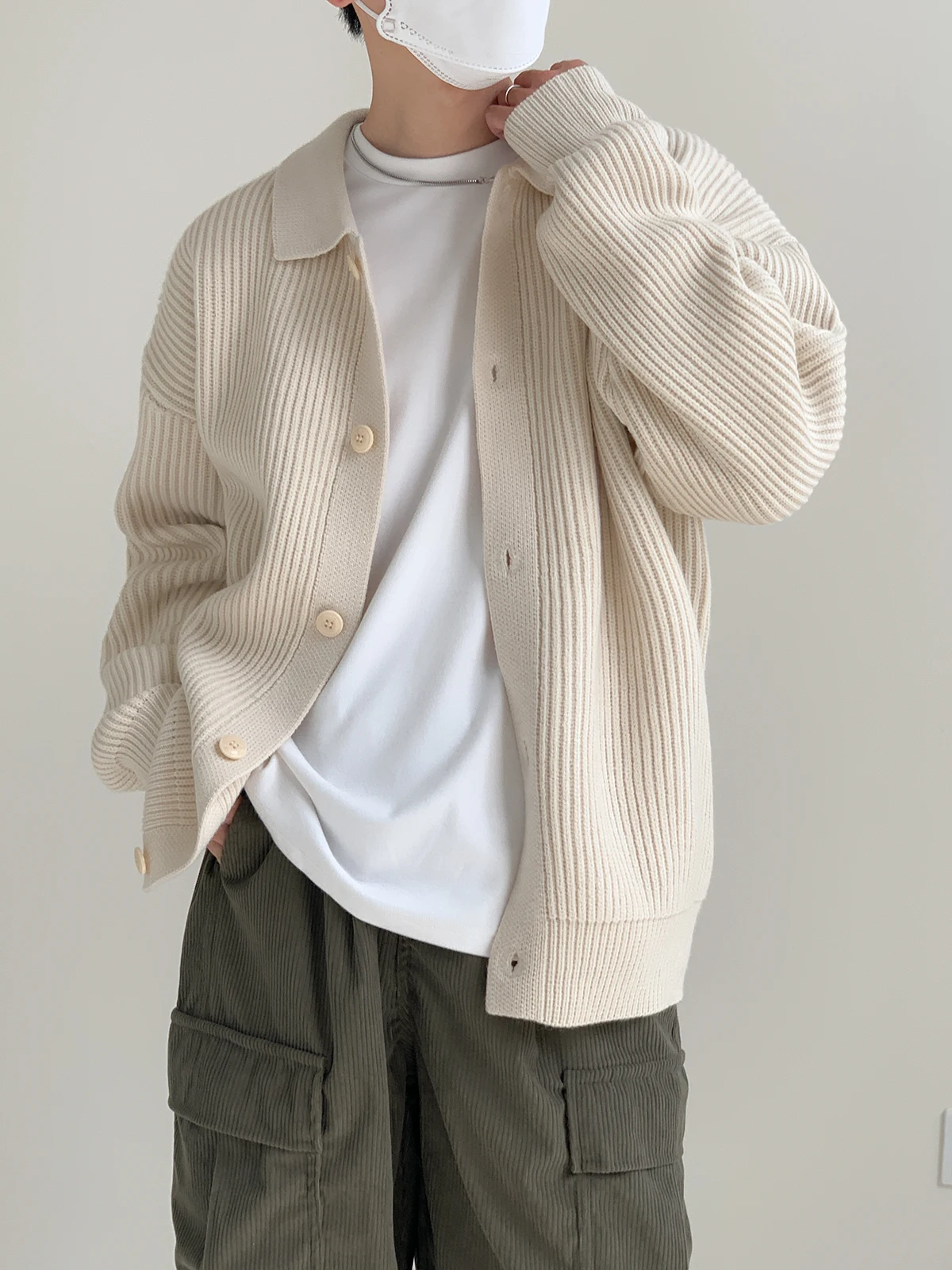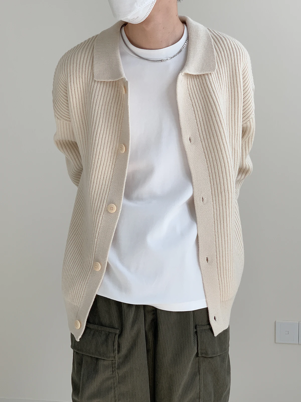Knitted Cardigan Men Simple Lazy Style All-match Warm Lapel Sweaters Casual Design Ulzzang Handsome Soft Outwear High Street Ins