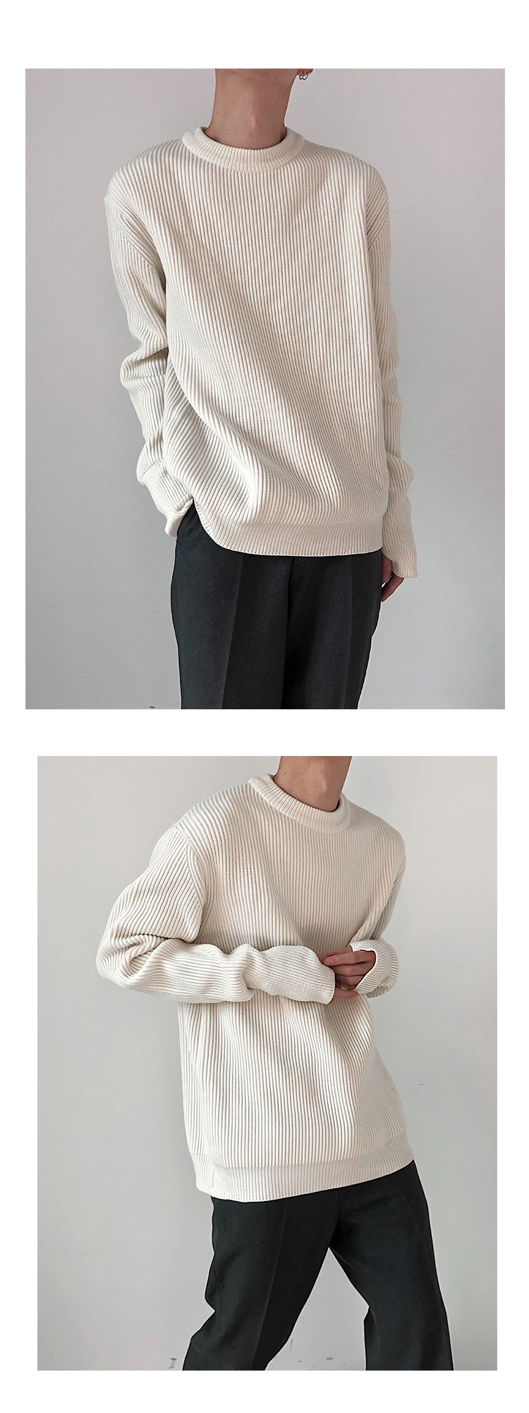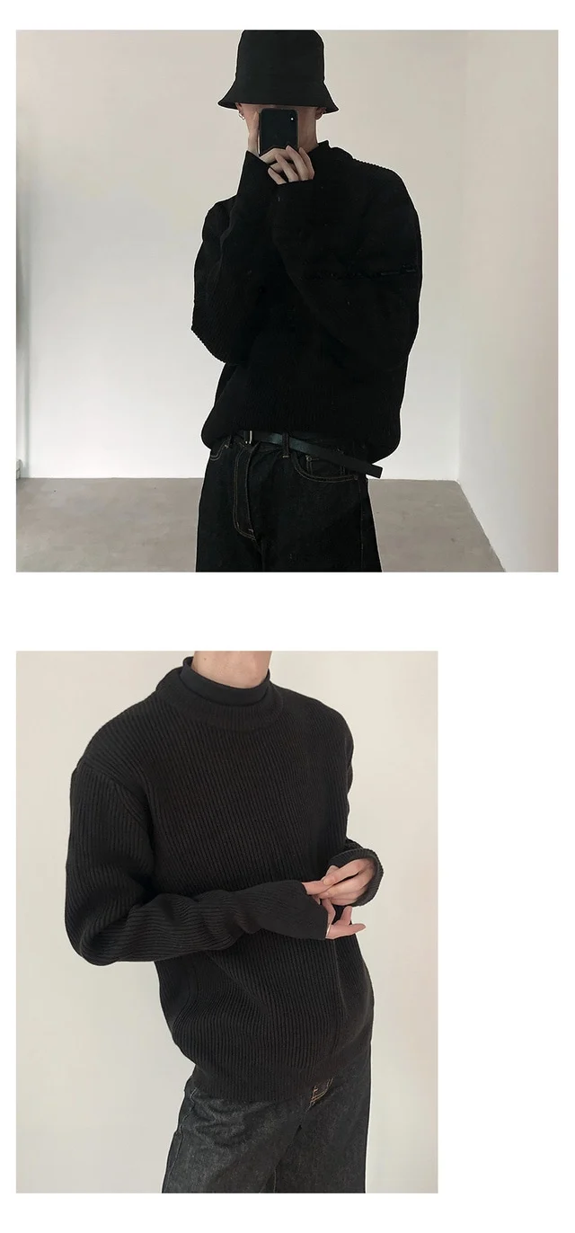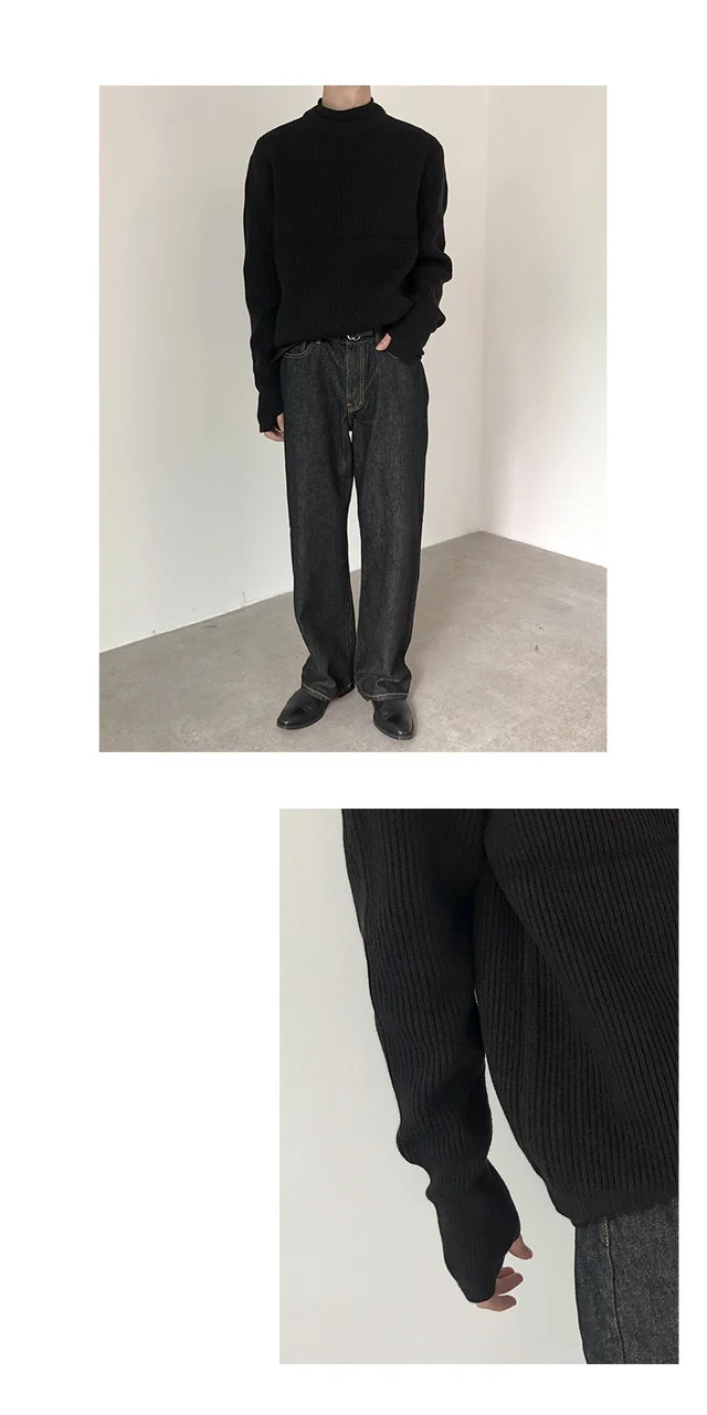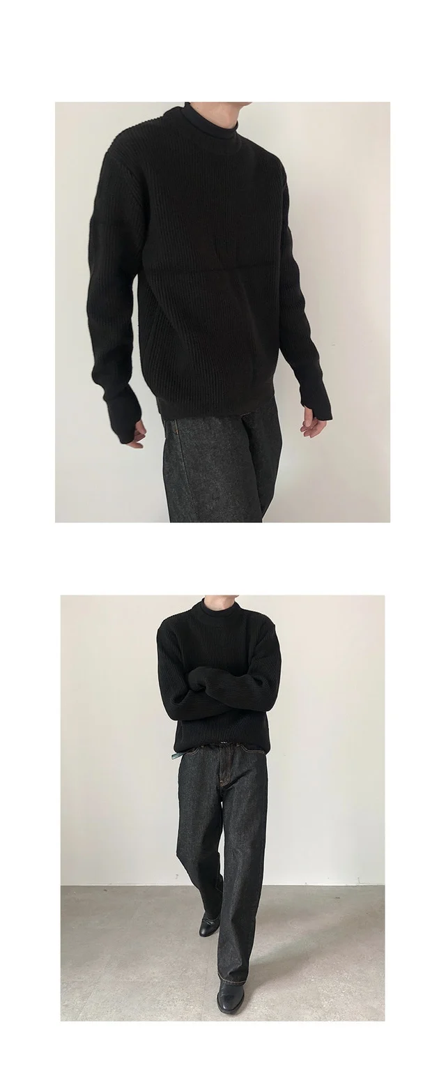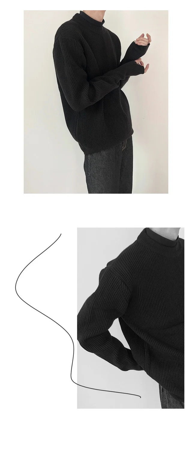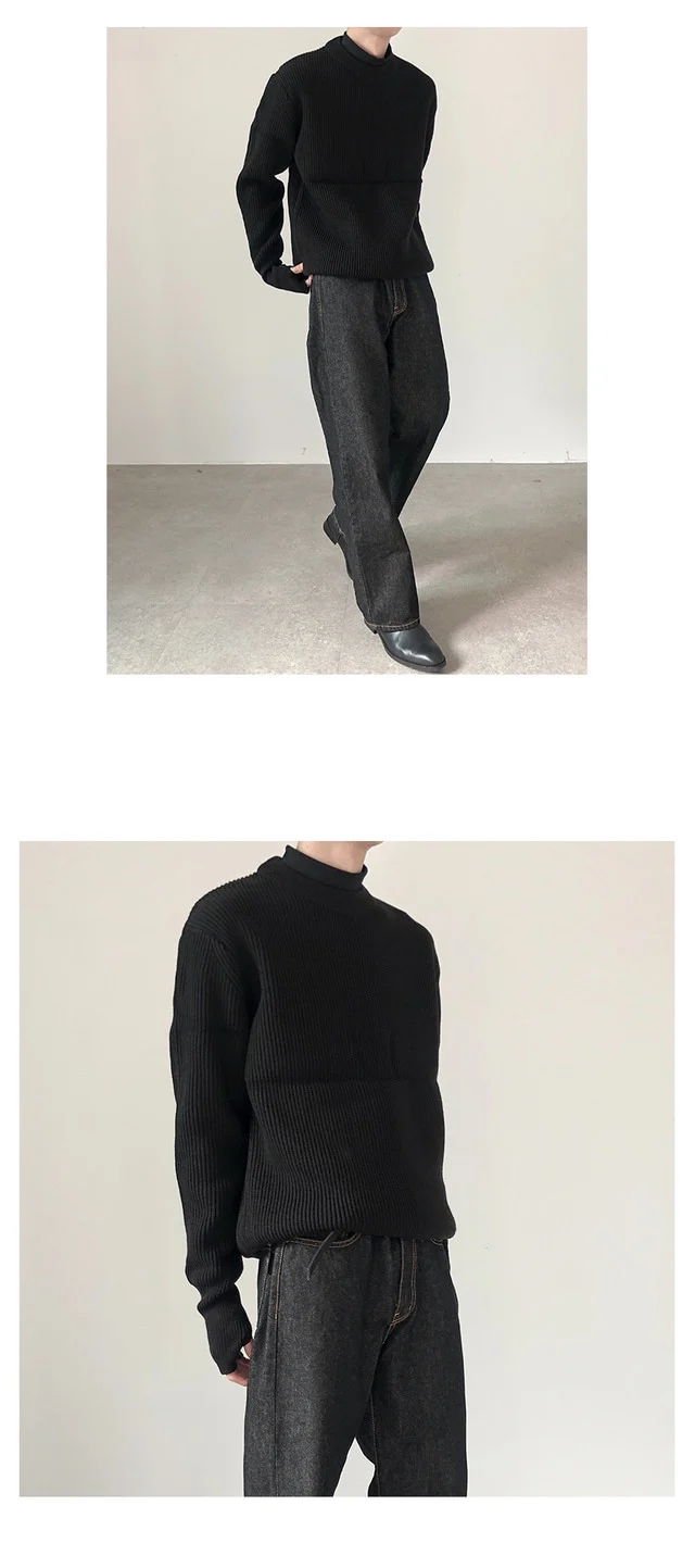Knitted Sweaters Men Autumn Pure Color Basic Comfortable Simple Daily Harajuku Streetwear Teens Round Neck Pullovers Versatile