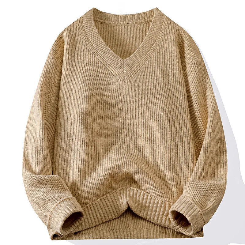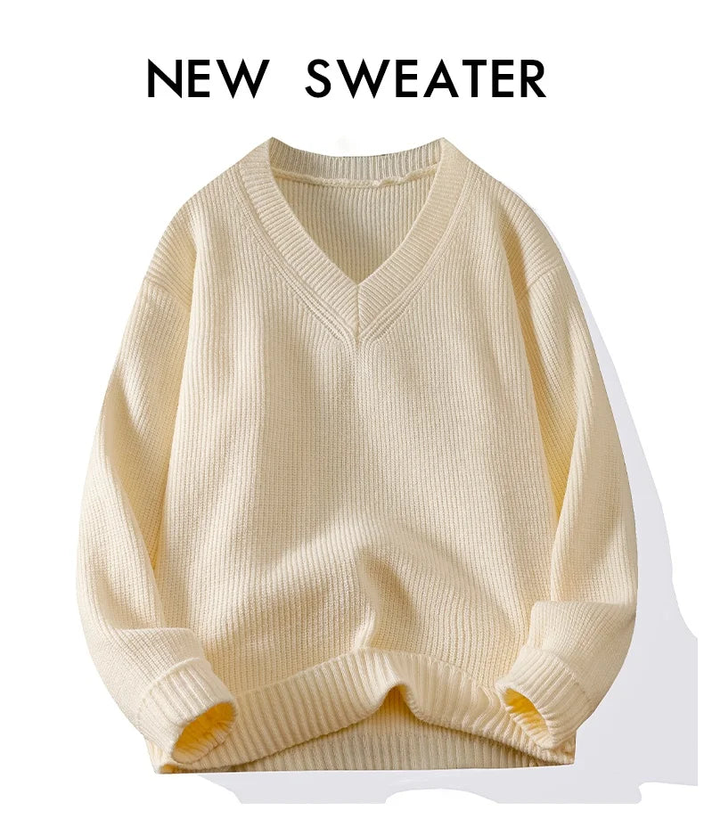 Knitted V-Neck Sweater Ribbed Neckline Not Easy To Deform Thick Warm Fashion Trend Crisp Shape Tall Thin Quality Fabric Skin