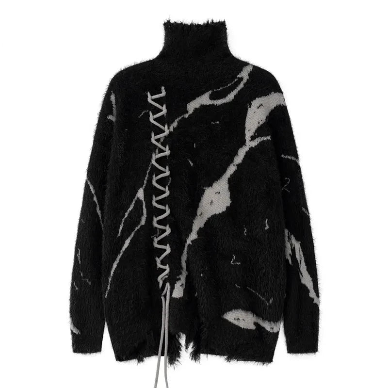 Knitwear Sweater Black Turtleneck Winter Oversize Pullover Fashion Punk Gothic Streetwear High Street Men's And Women's