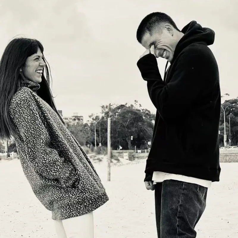 Leopard Print Plus Velvet Hooded Sweater American Retro 90s Lined With Plush Winter Warm Zipper Shirt Oversized Unisex Clothing