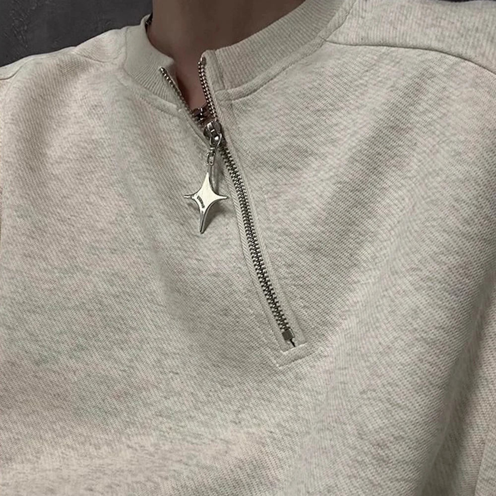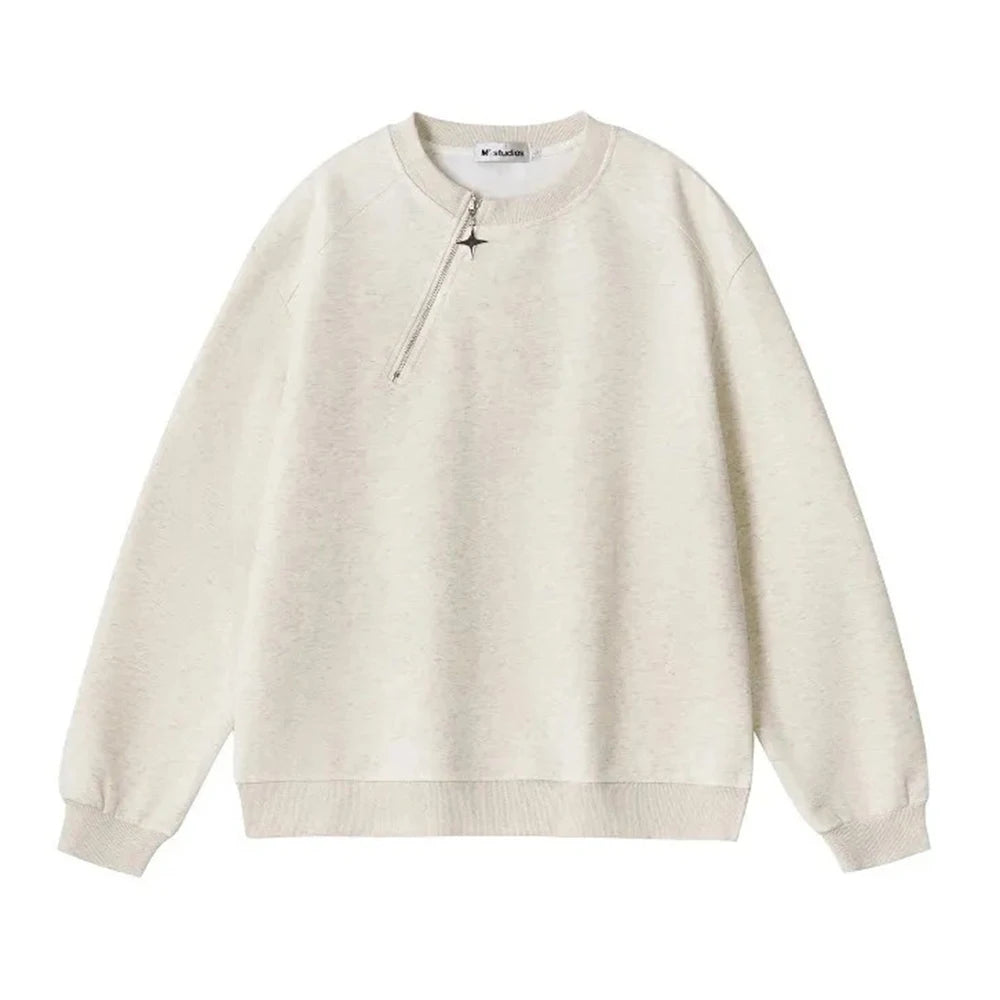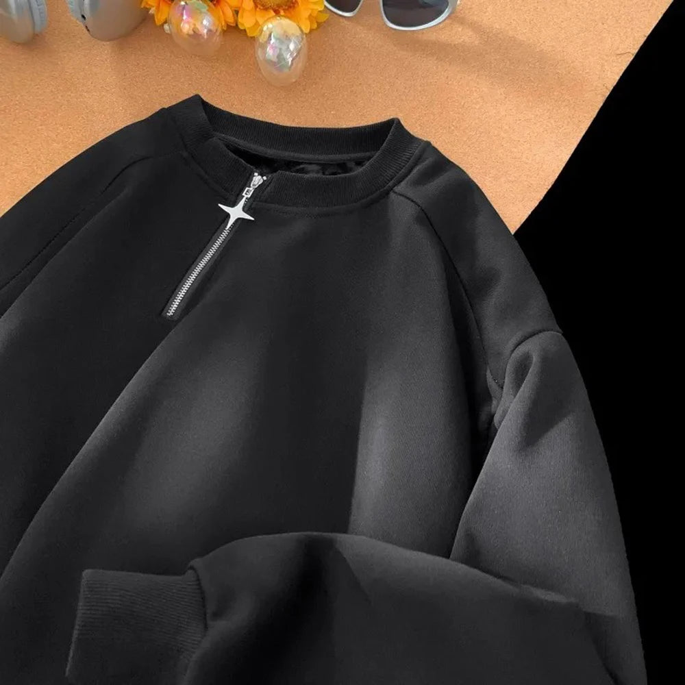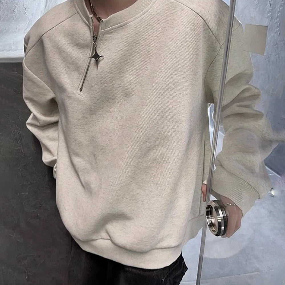 Men Sweatshirt Side Zip Casual Tshirt Autumn Streetwear Fashion Trend Youth All-Match Daily Long-Sleeved Top Male Men'S Clothing