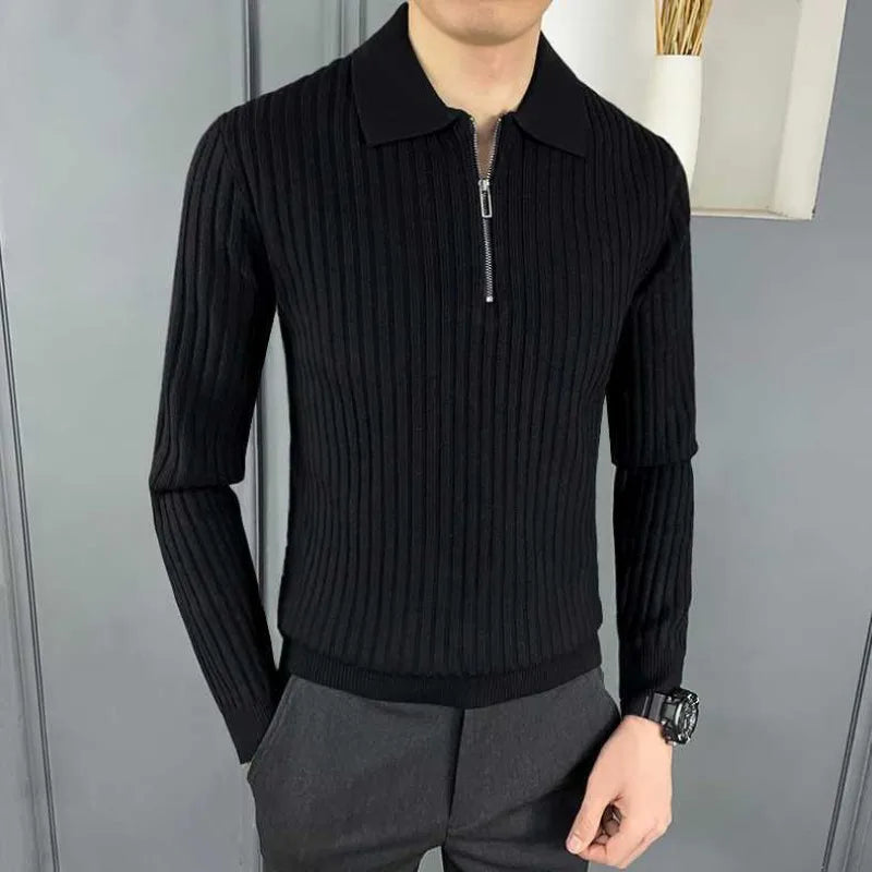 Men's Autumn Winter Fashion Casual Solid Color Pullover POLO Neck Half Zip Versatile Long Sleeve Slim Fit Sweater Knitted Tops