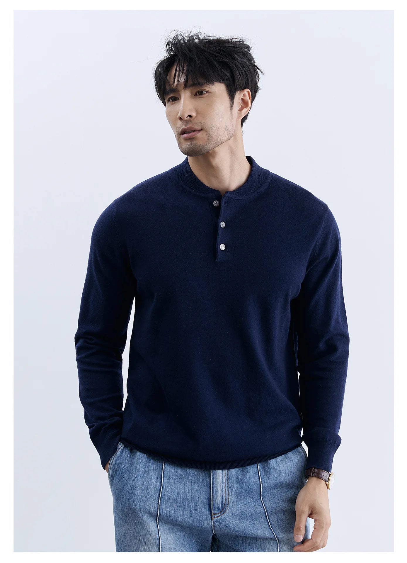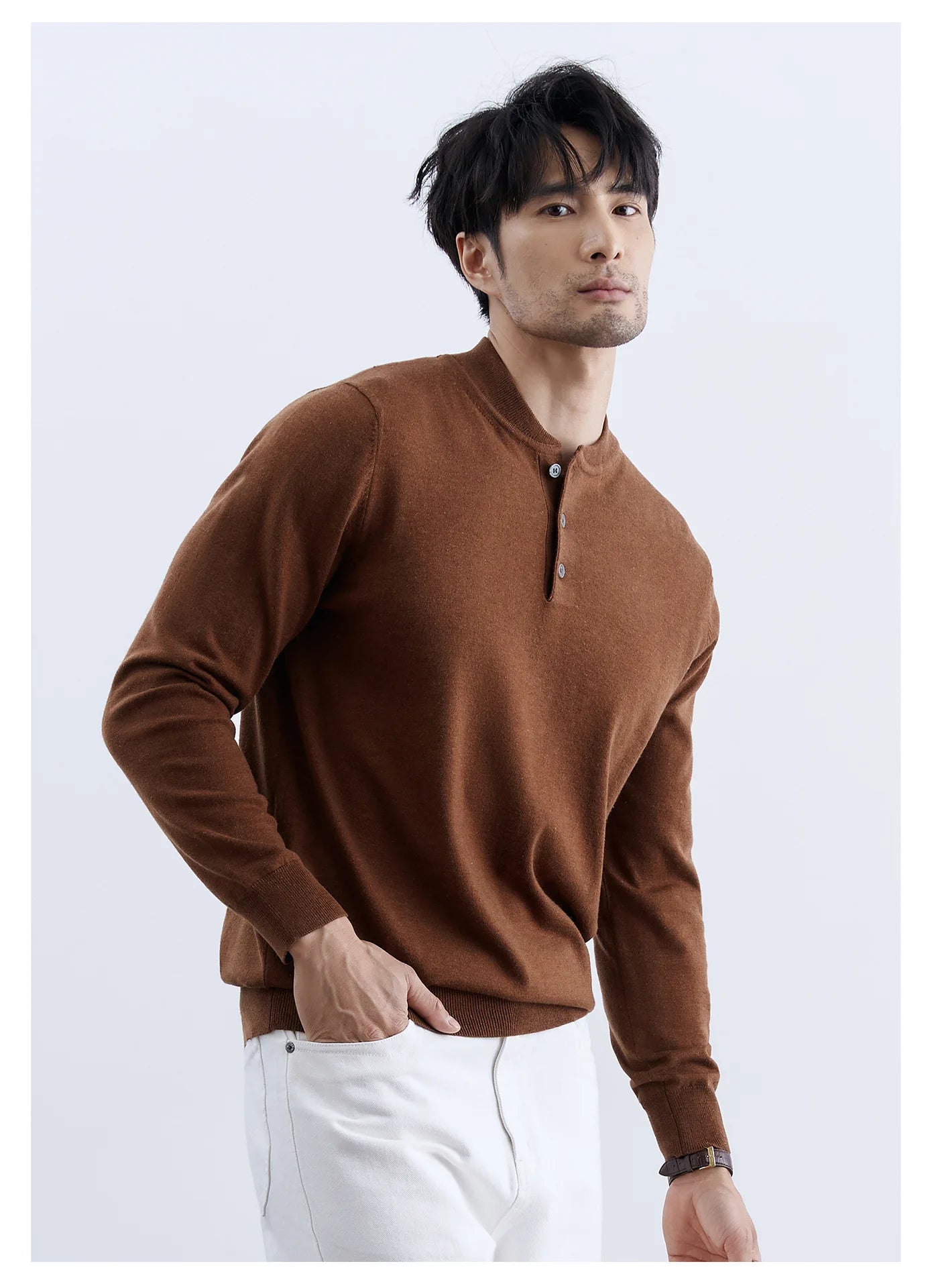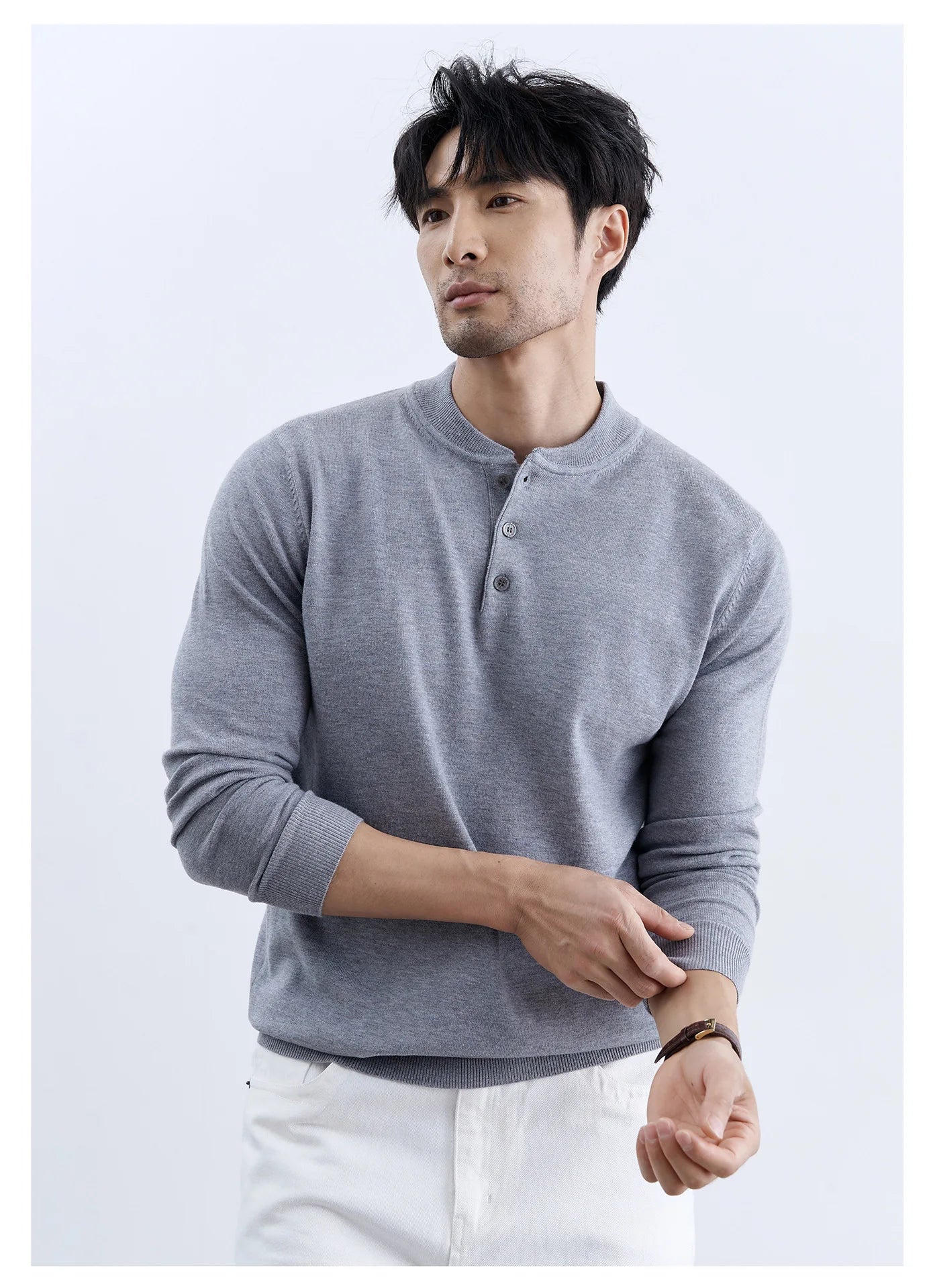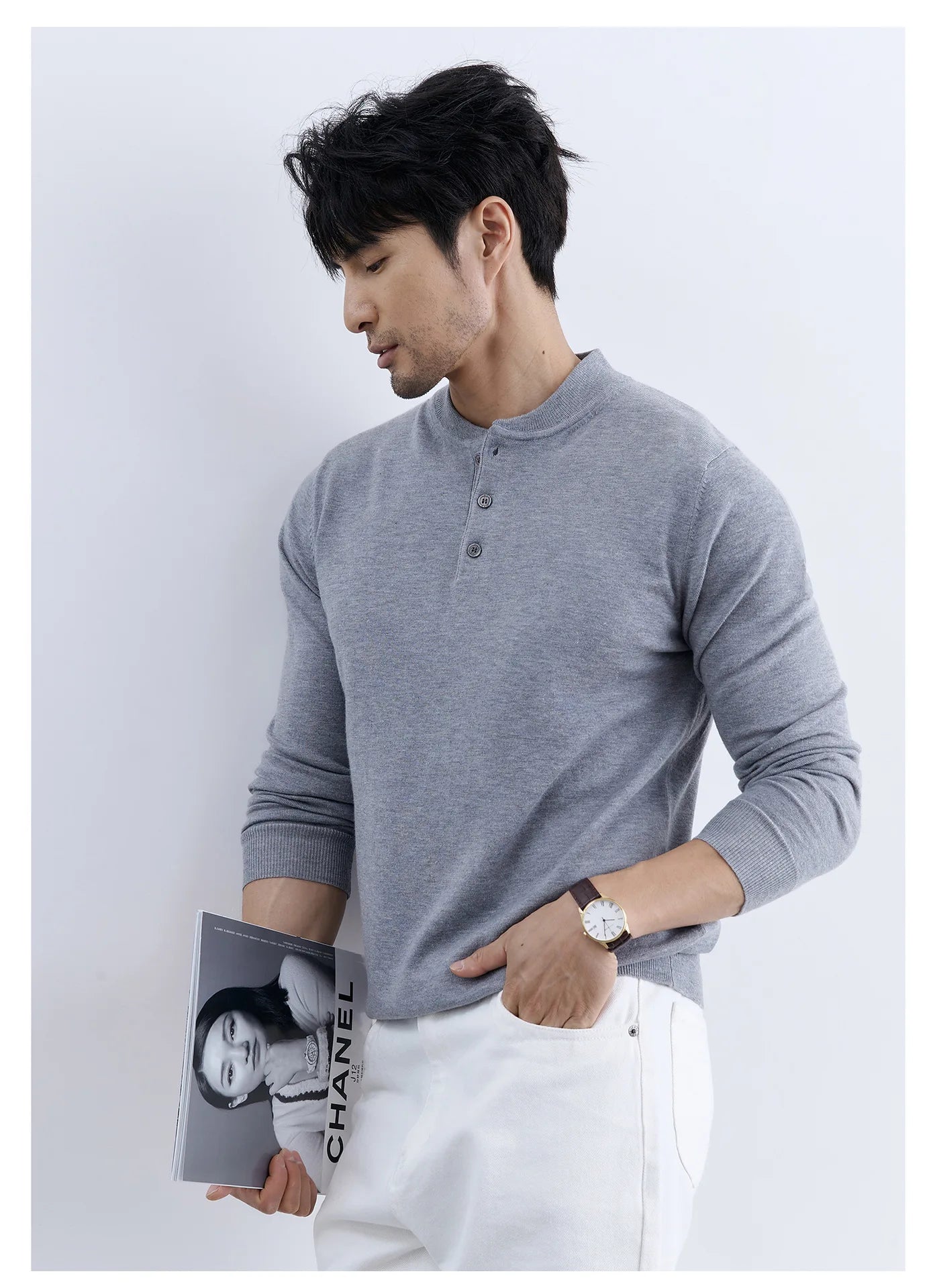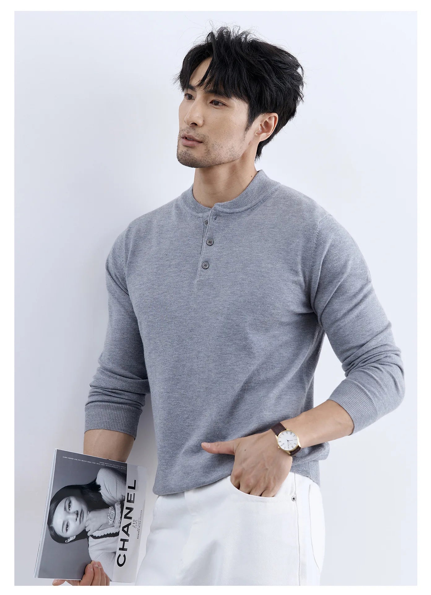 New Fashion Men Henry Sweater Light Luxury Knitted Solid Color Long Sleeve Pullover Premium Quality Skin-friendly Knitwear M-3XL
