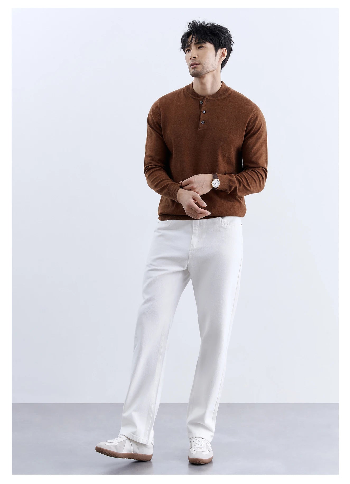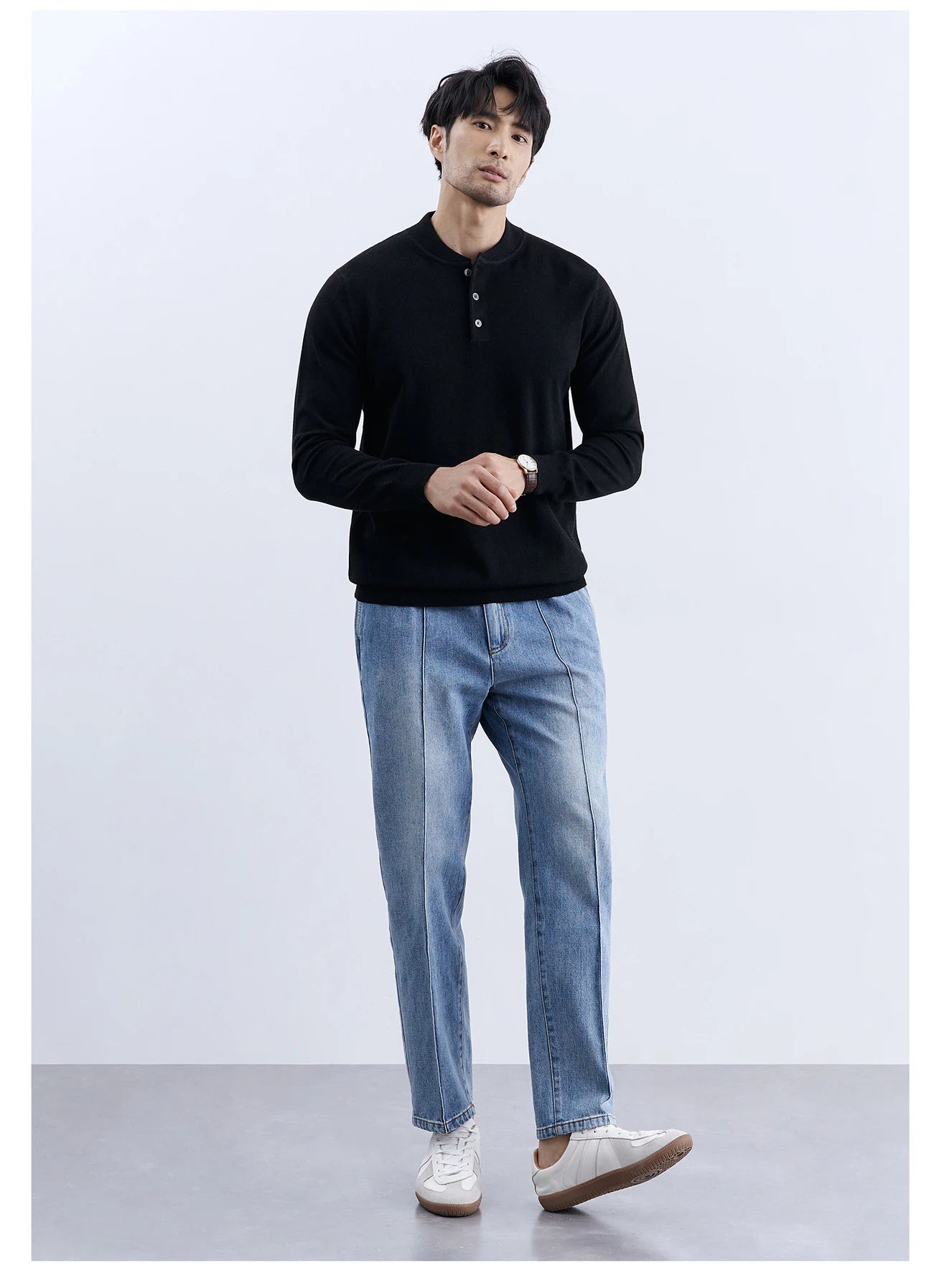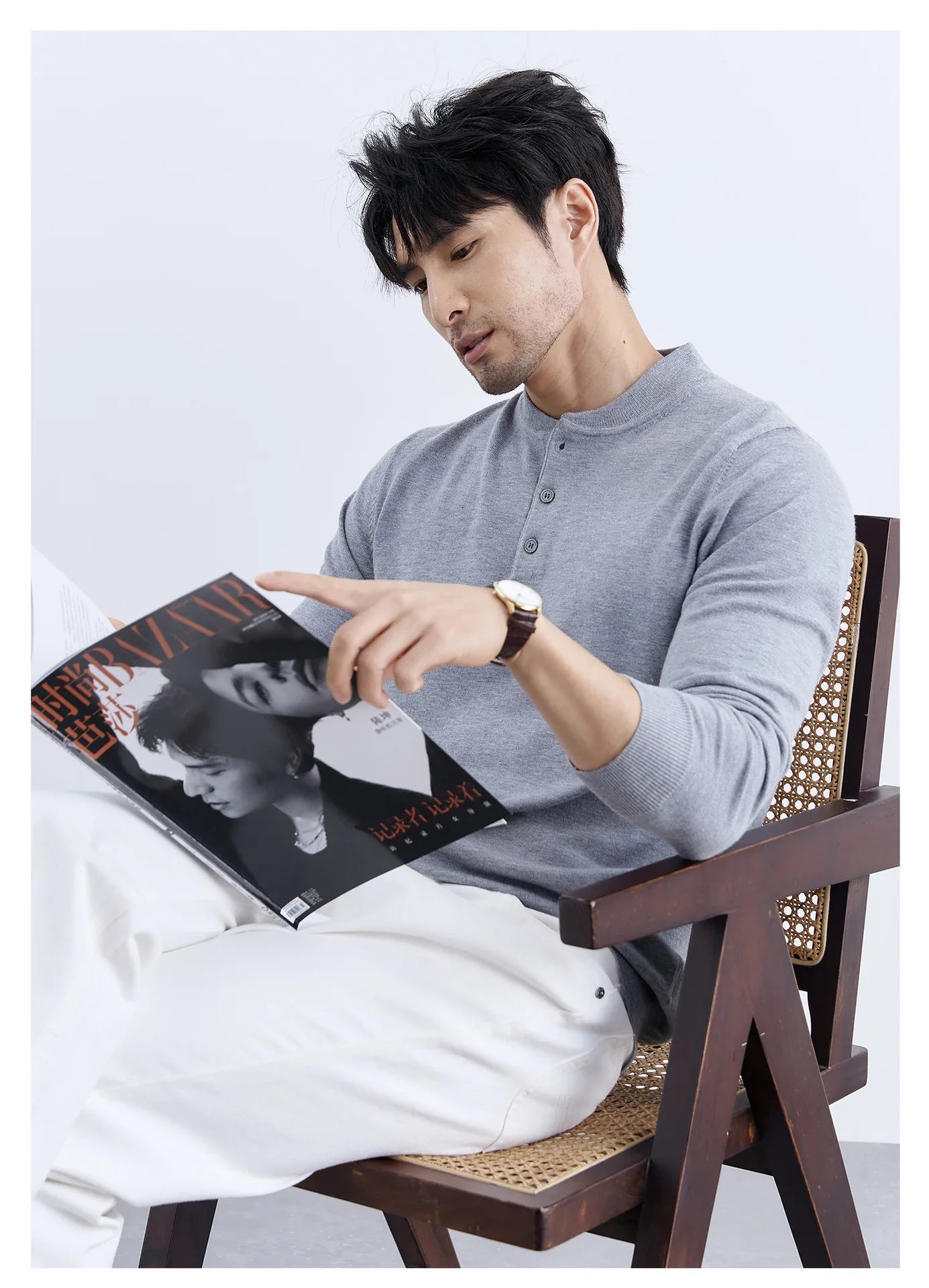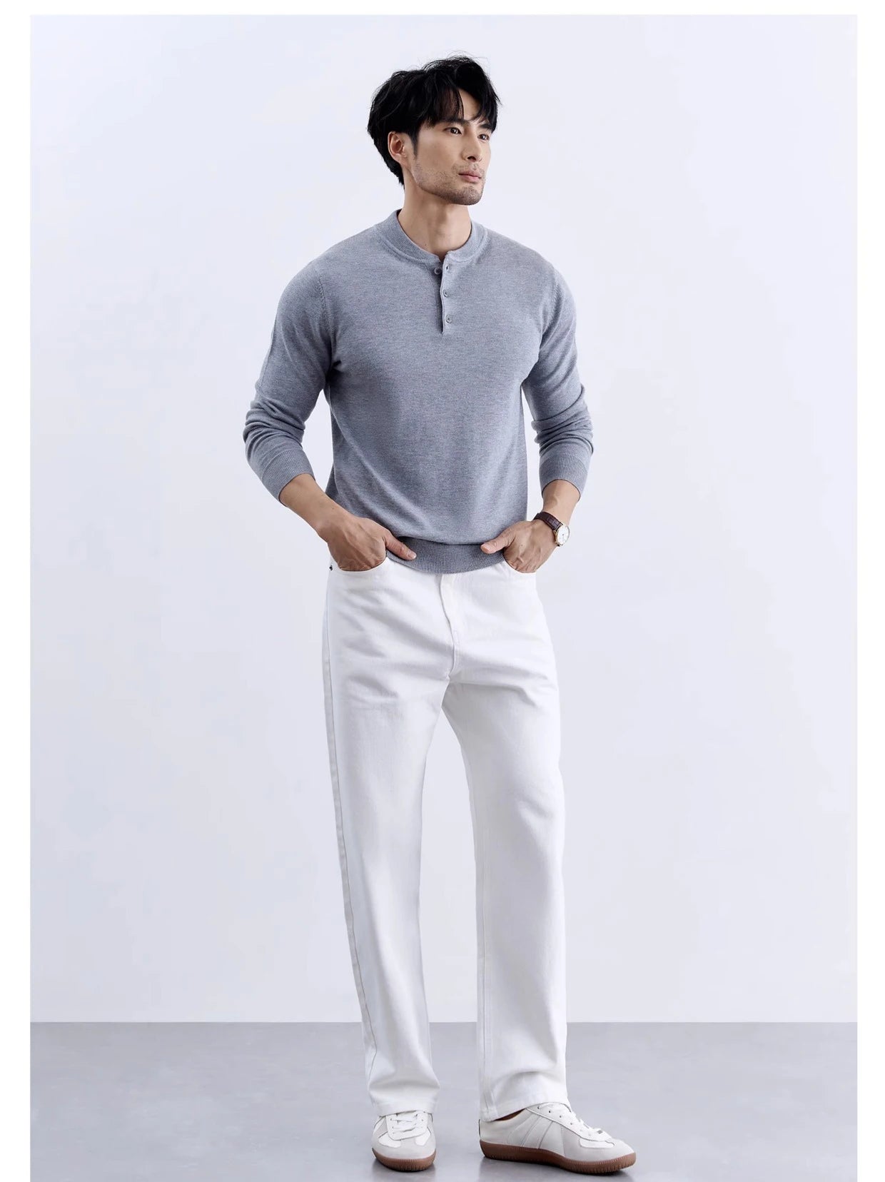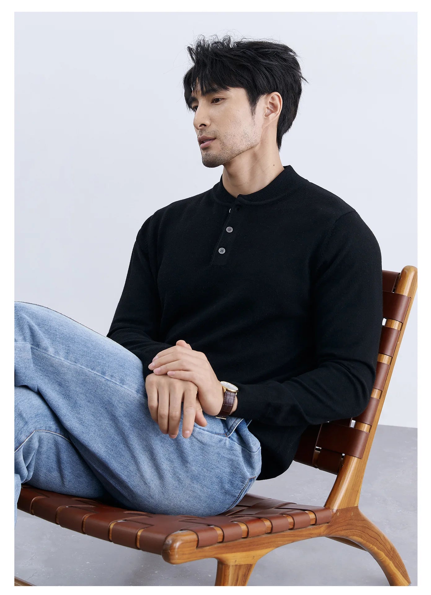 New Fashion Men Henry Sweater Light Luxury Knitted Solid Color Long Sleeve Pullover Premium Quality Skin-friendly Knitwear M-3XL