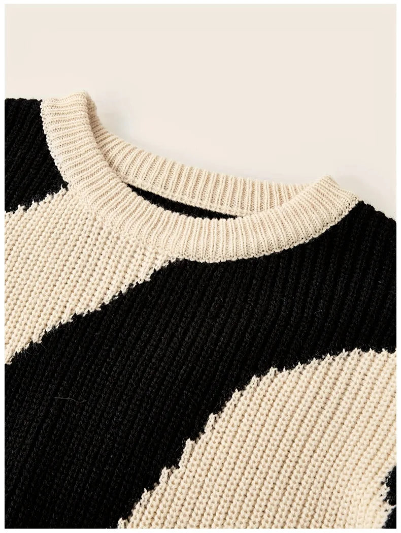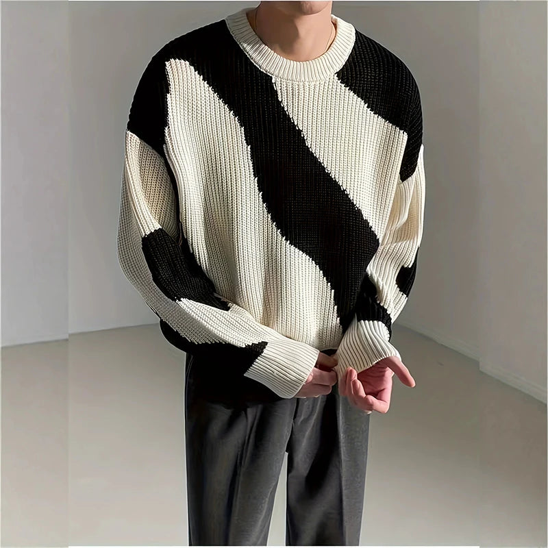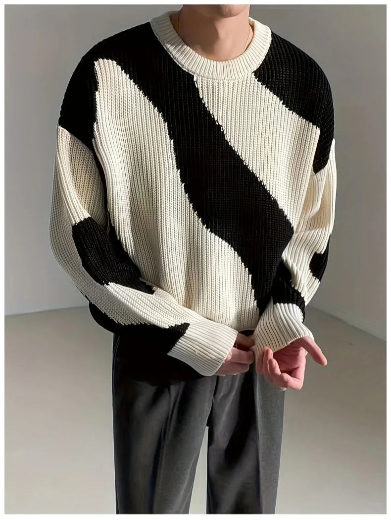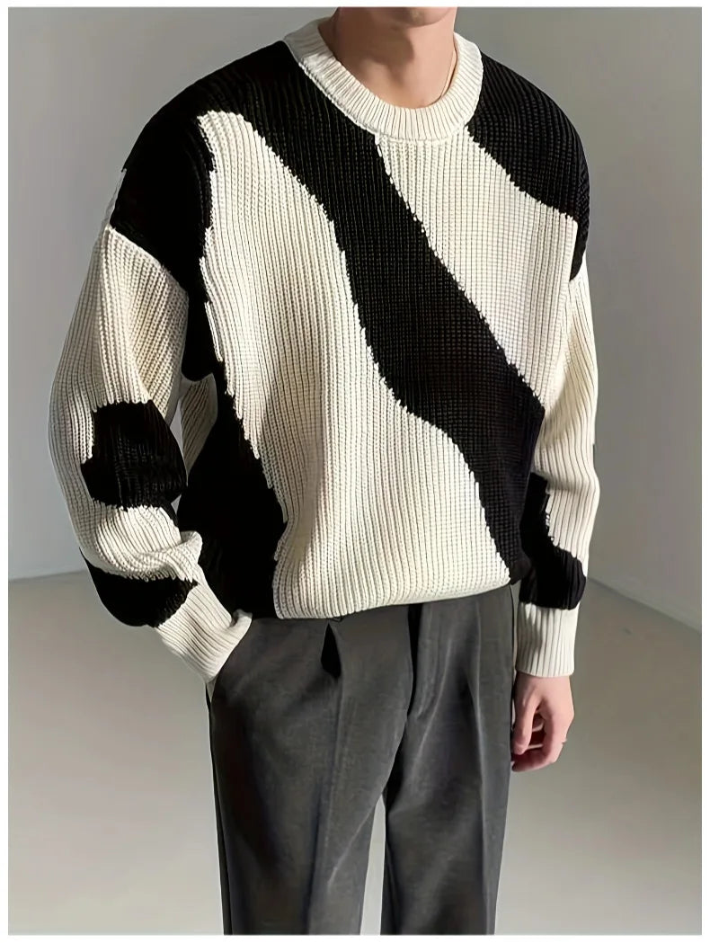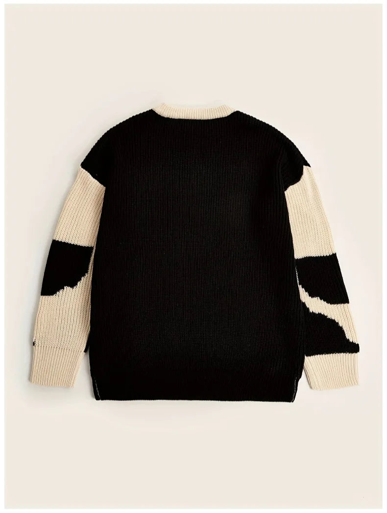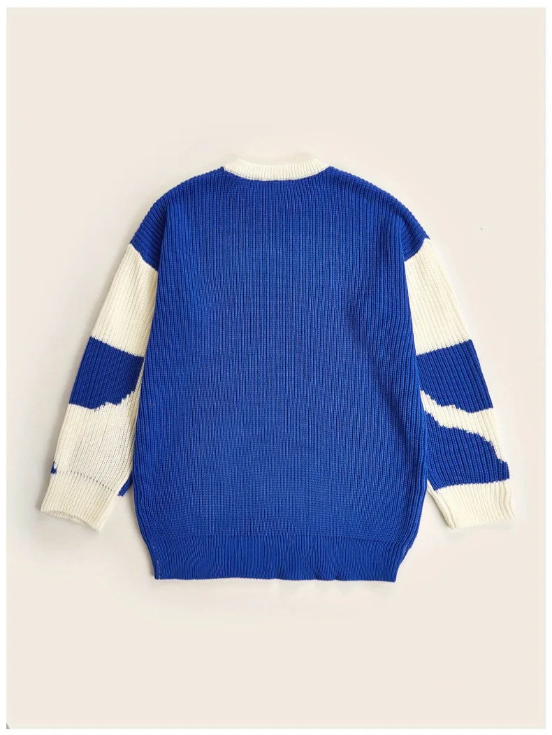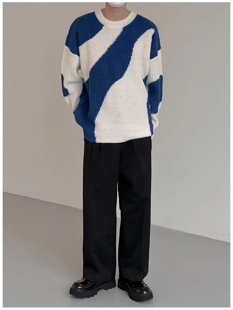New Japanese Trendy Men Sweater High Street Patchwork Knitted O Neck Long Sleeve Pullover Casual Loose Premium Quality Knitwear