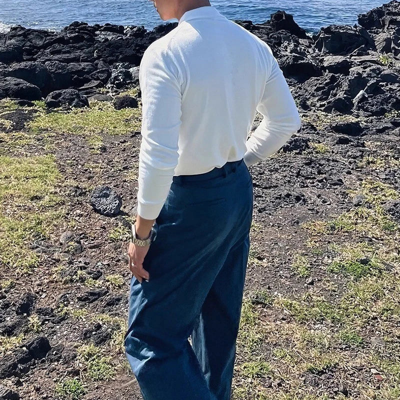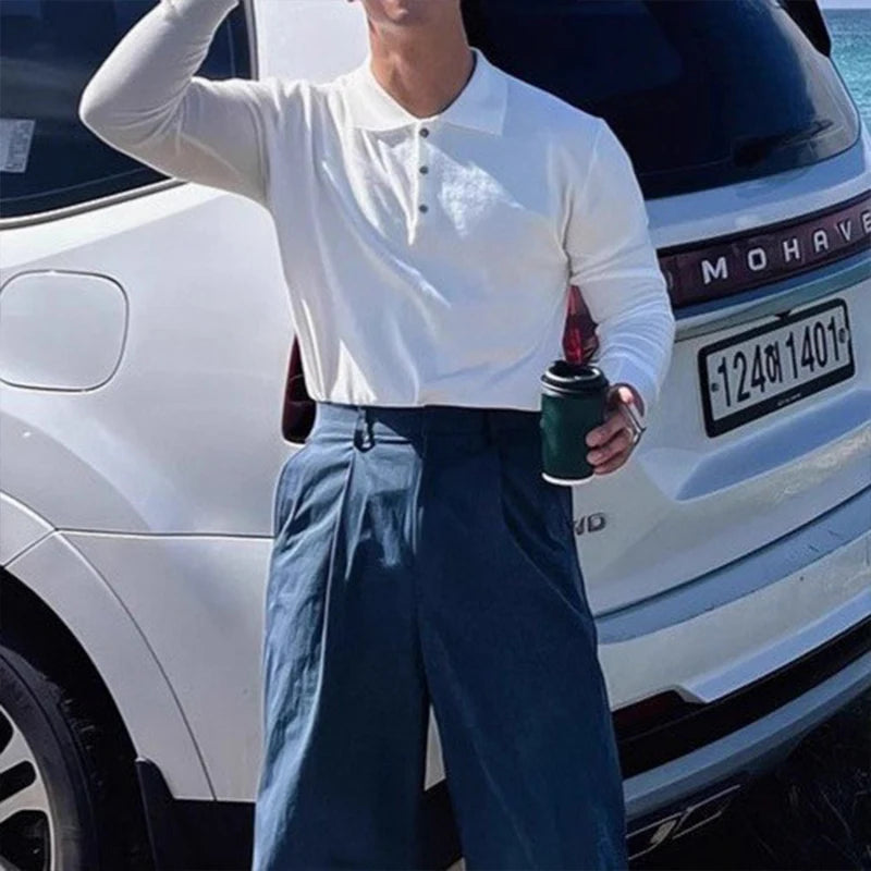 New Korean Fashion Men Polo Sweater Light Luxury Knitted Solid Color Long Sleeve Pullover Premium Quality Skin-friendly Knitwear
