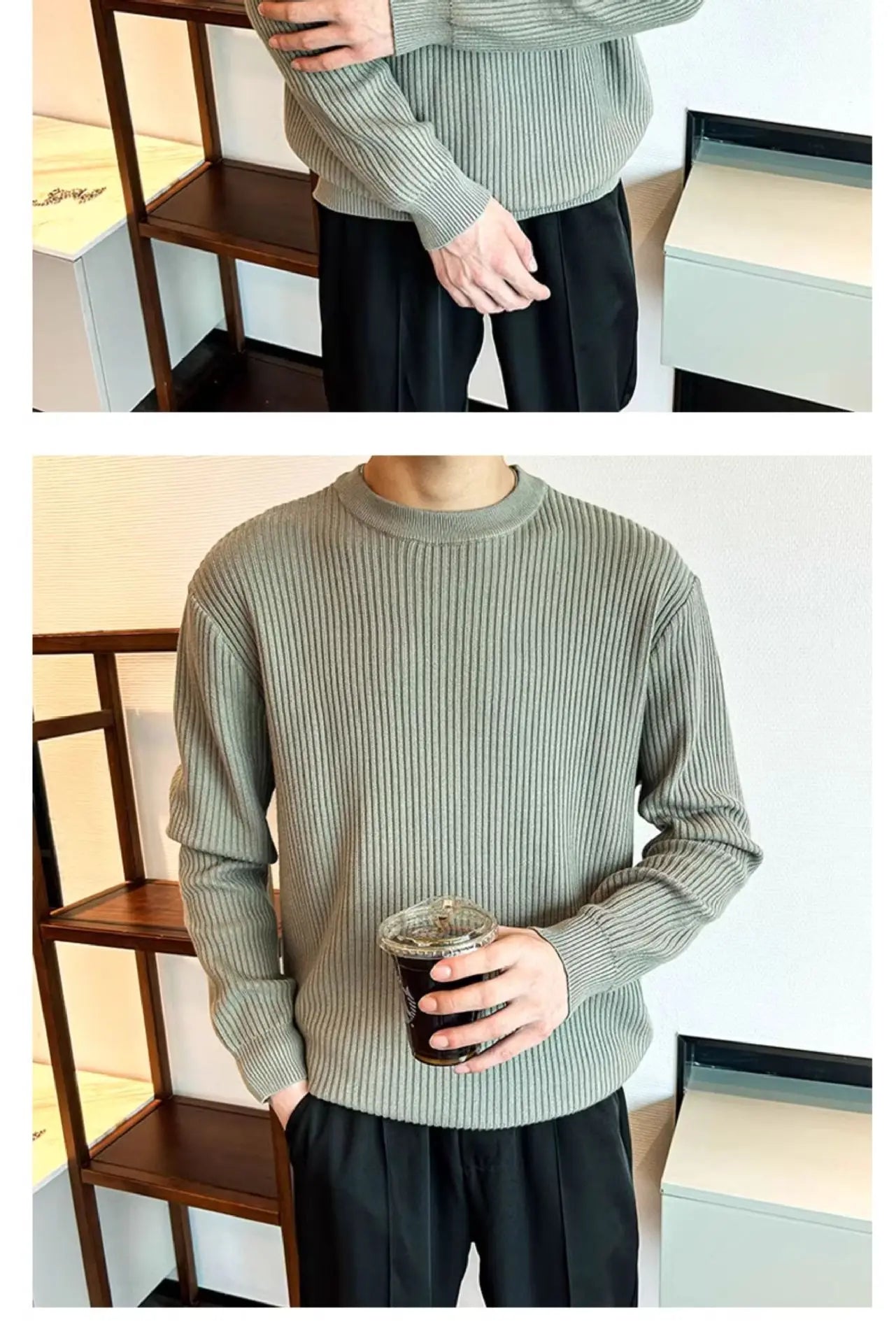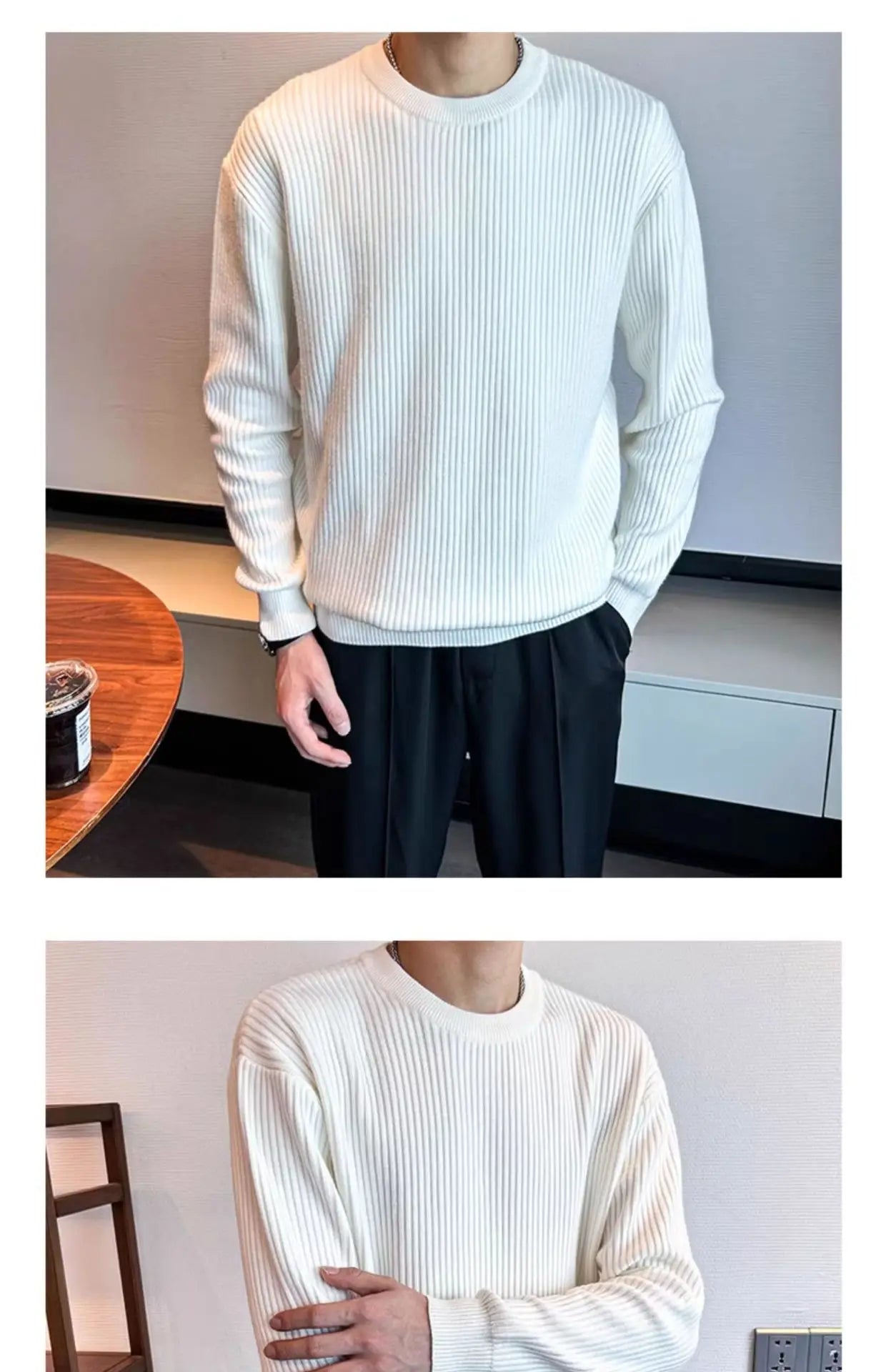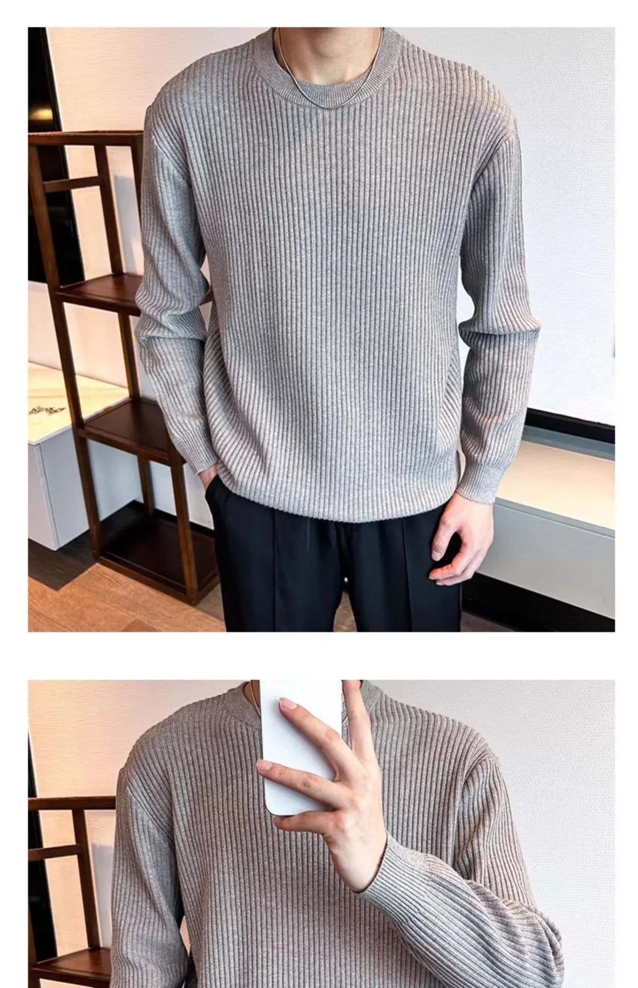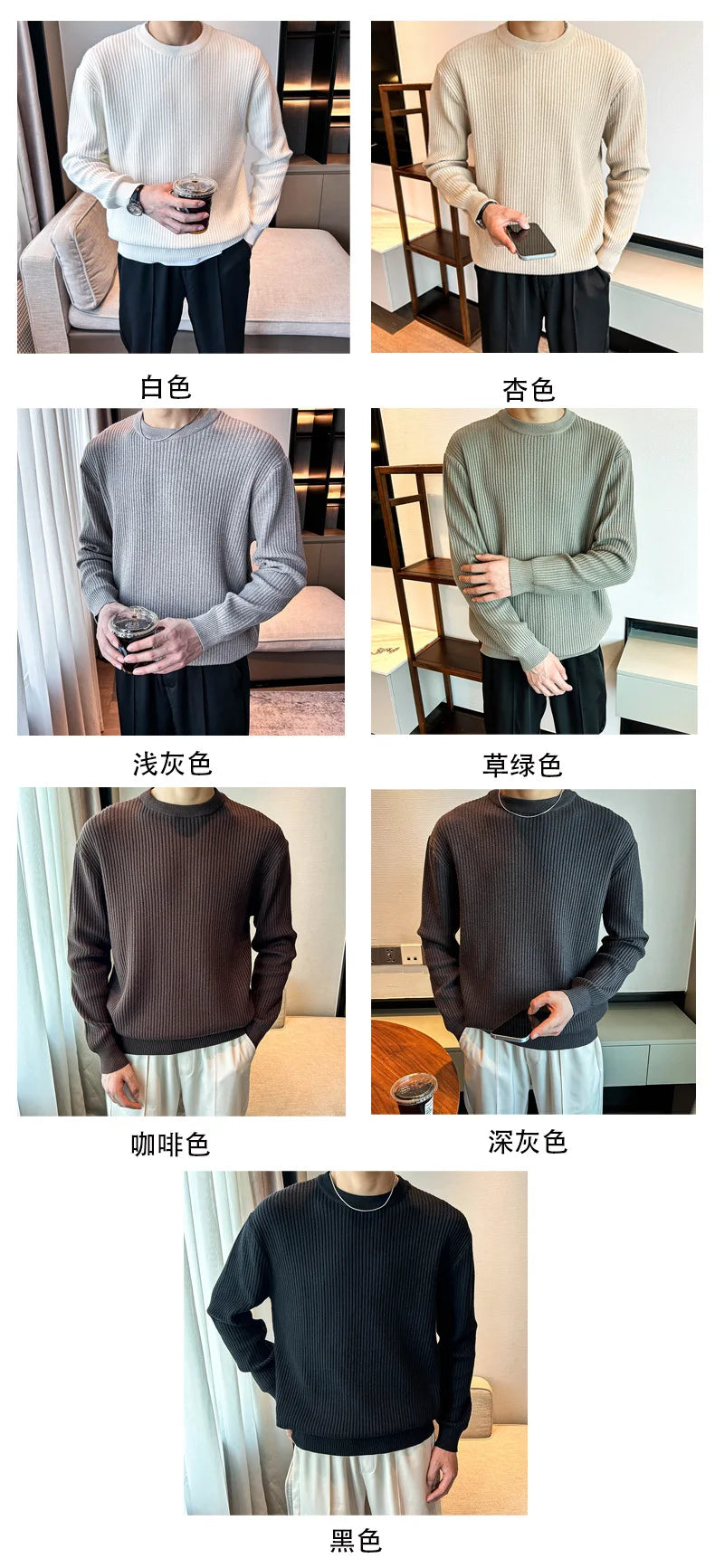 New Korean Retro Men Basic Sweater Luxury Knitted Solid Color O Neck Long Sleeve Pullover Casual Slim Premium Quality Knitwear