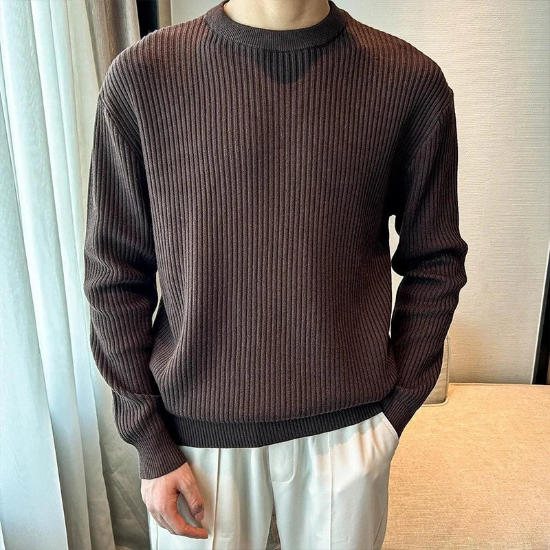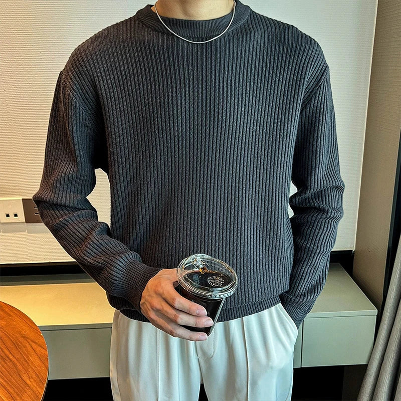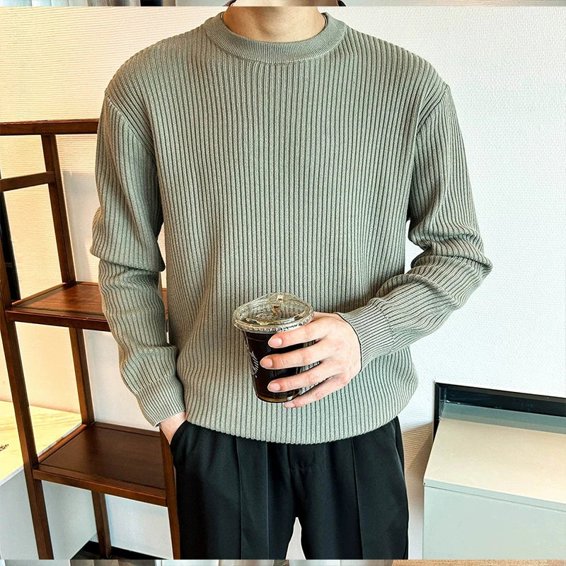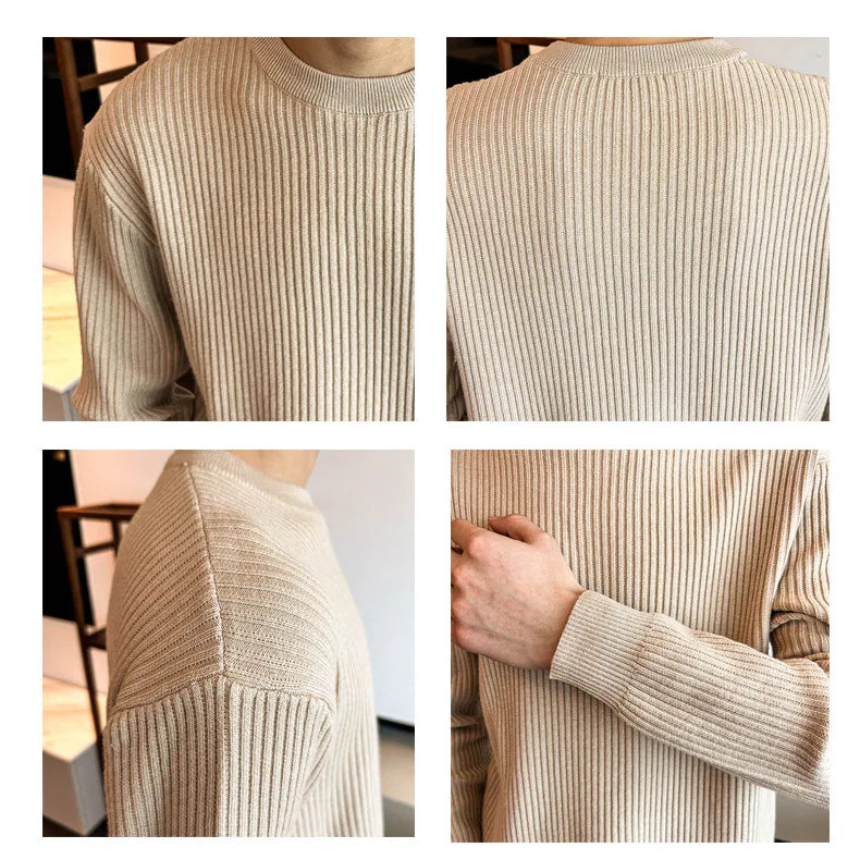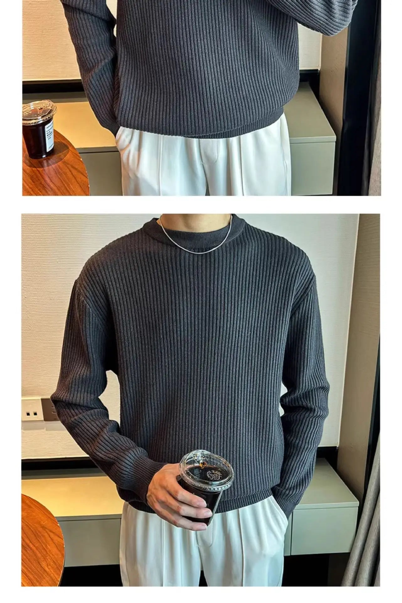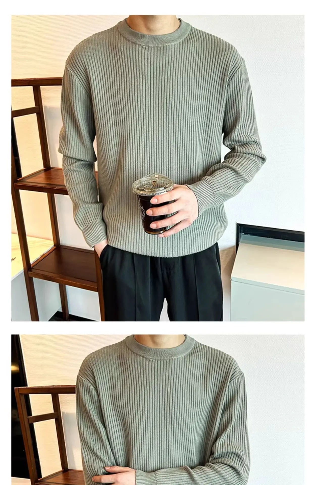 New Korean Retro Men Basic Sweater Luxury Knitted Solid Color O Neck Long Sleeve Pullover Casual Slim Premium Quality Knitwear