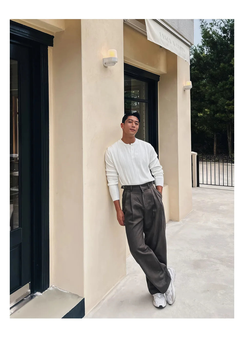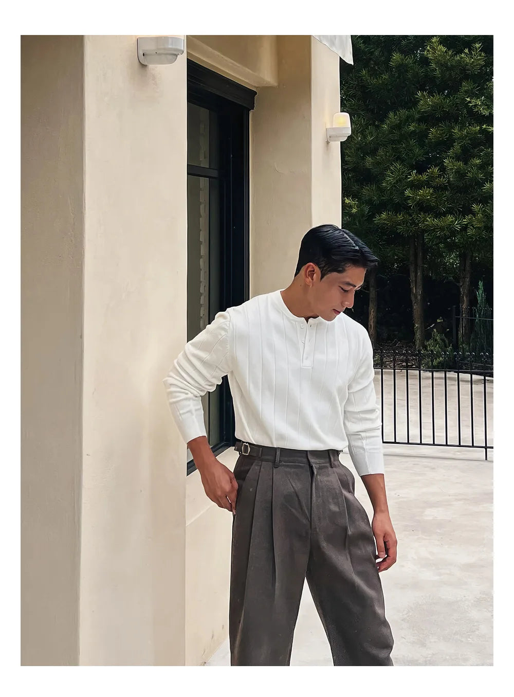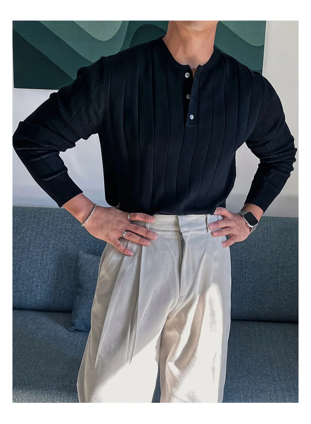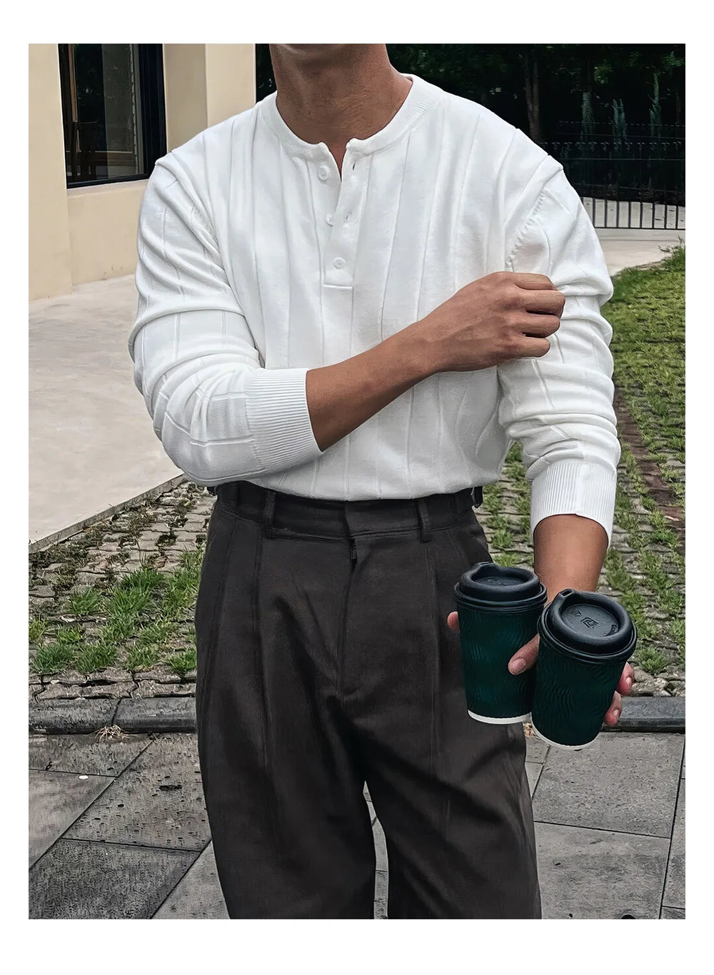 New Korean Trendy Men Henry Sweater Light Luxury Knitted Solid Color Long Sleeve Pullover Premium Quality Skin-friendly Knitwear