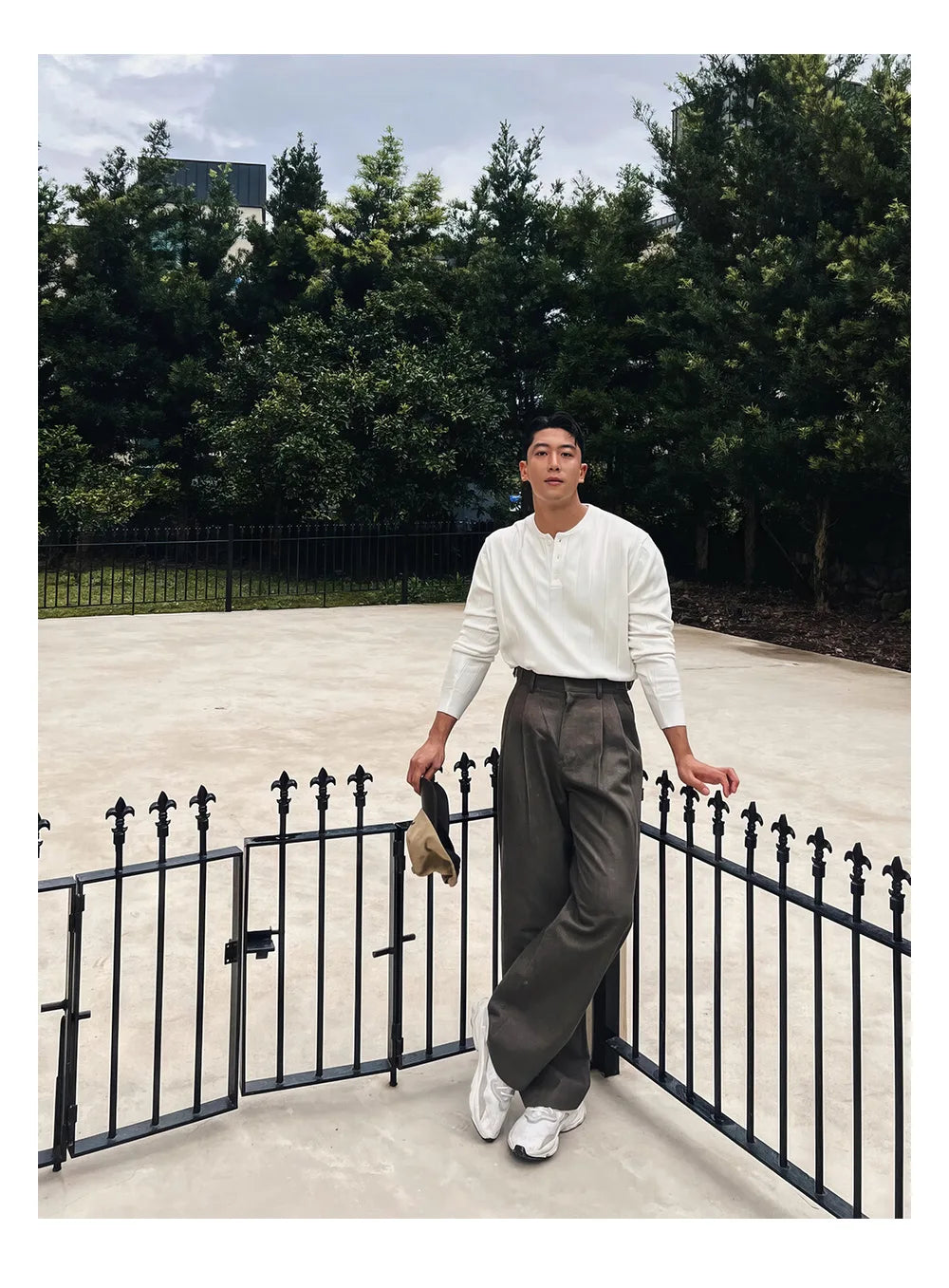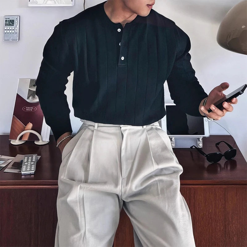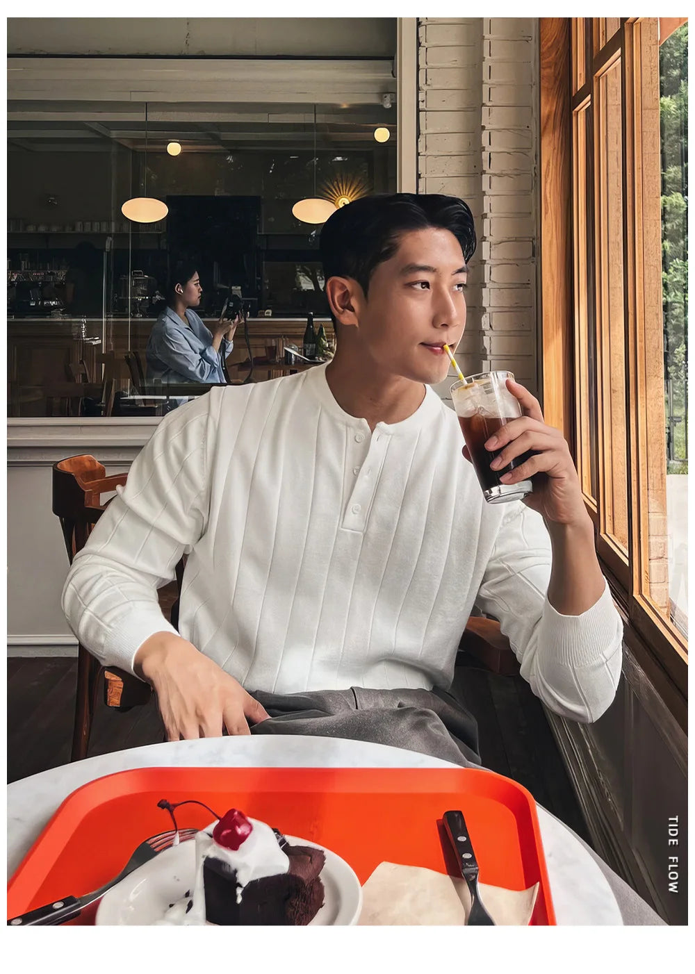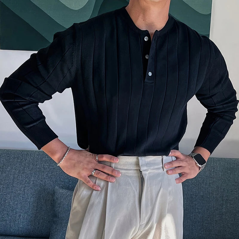 New Korean Trendy Men Henry Sweater Light Luxury Knitted Solid Color Long Sleeve Pullover Premium Quality Skin-friendly Knitwear